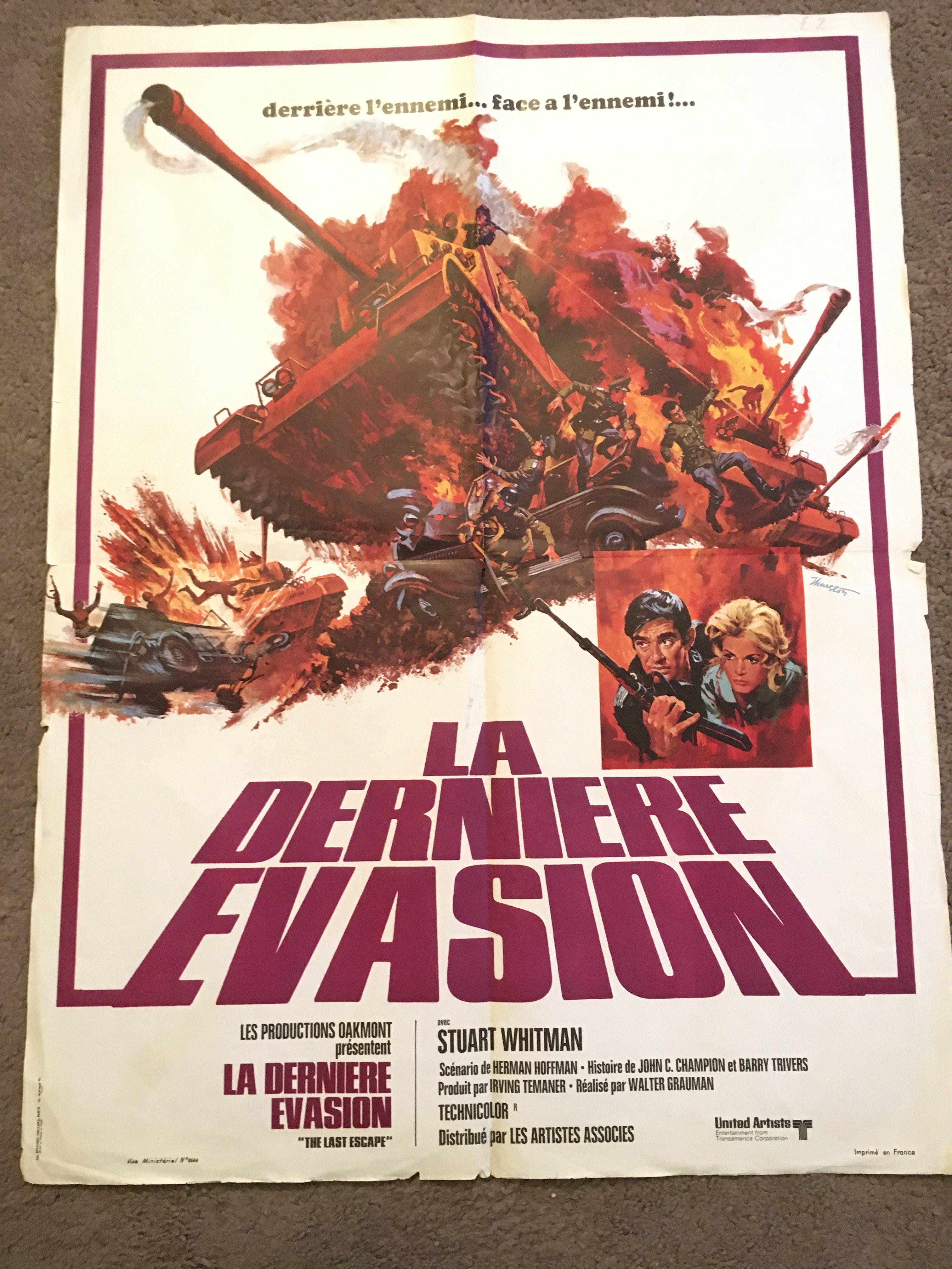 Six French one sheet film posters comprising 'The Last Escape', 'Tarzan's Deadly Silence', 'The Amazons', 'High Wind In Jamaica', '1001 Erotic Nights' and 'Hannibal Brooks', all folded with small tears.