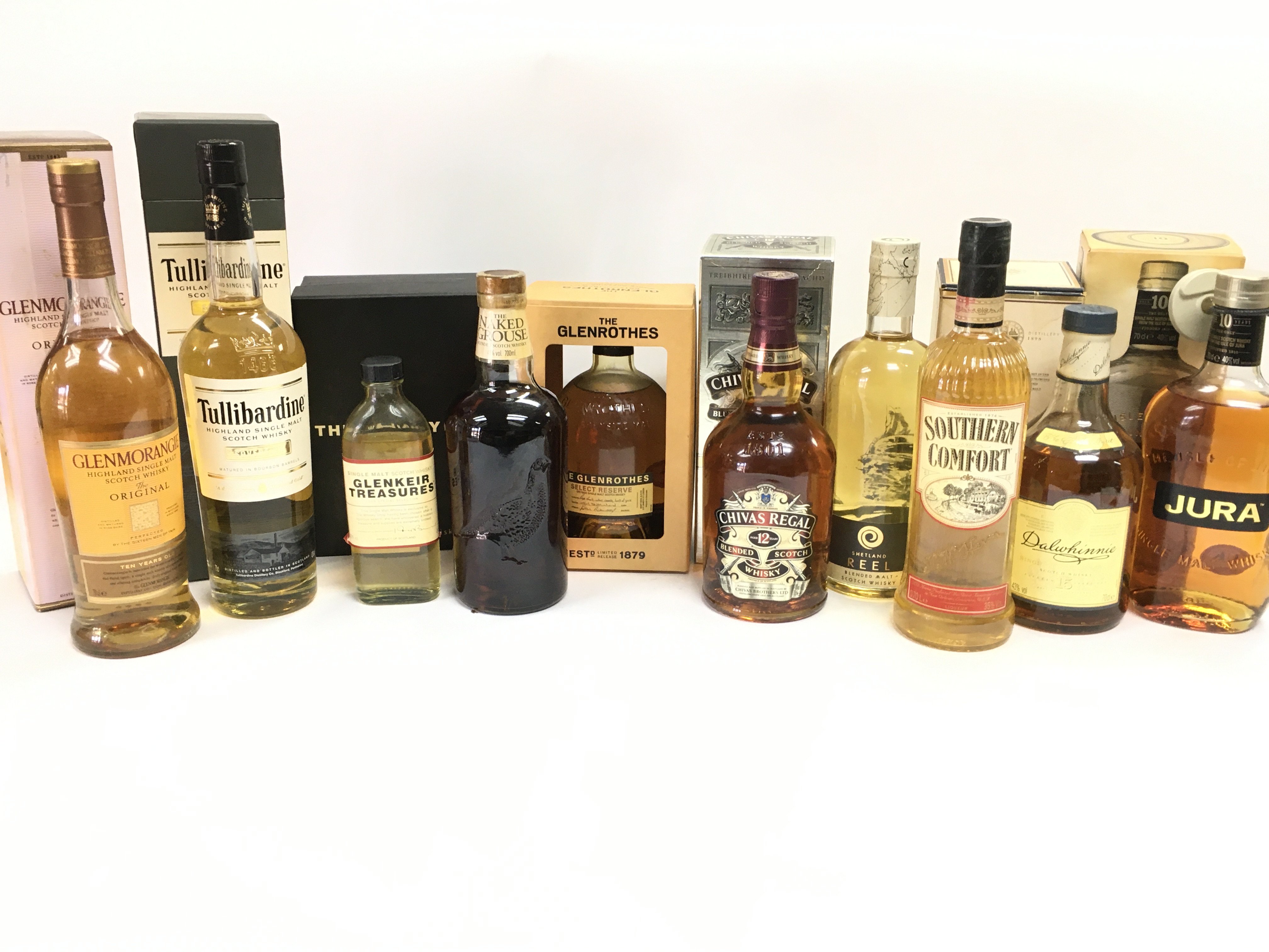 A Collection of whiskeys including Chivas Regal, Dalwhinnie, Tullibardine, The Glenrothes, Glenmorangie, The Naked Grouse etc. this lot cannot be posted