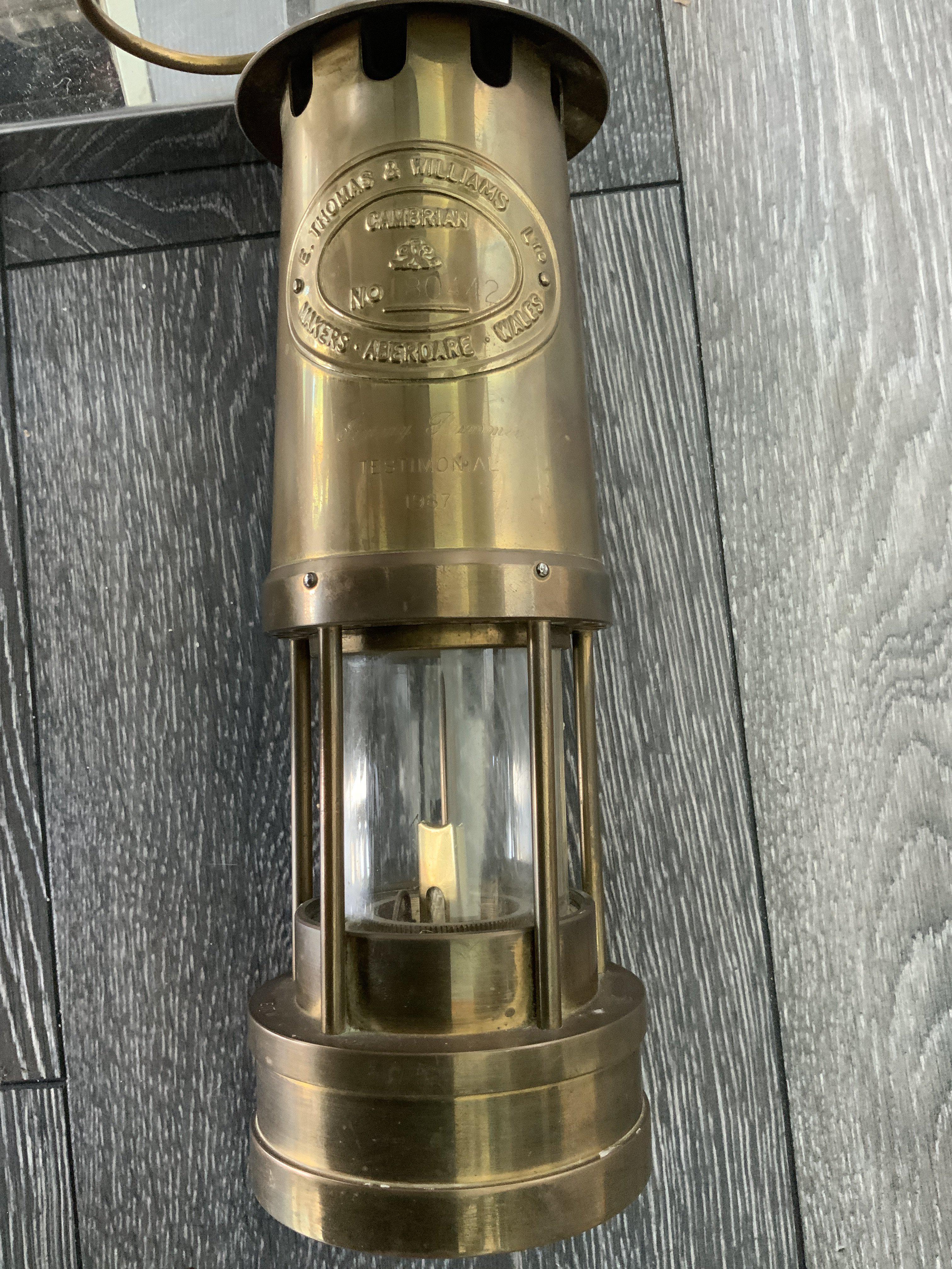 Jimmy Rimmer Manchester United Testimonial Gift: 1987 Swansea v Manchester United Testimonial played on 24 2 1987. Measuring 10 inches high this heavy metal lantern made by Thomas + Williams Ltd has the words Jimmy Rimmer Testimonial 1987 engraved. Rimmer played for both these teams plus Arsenal Aston Villa and Luton.