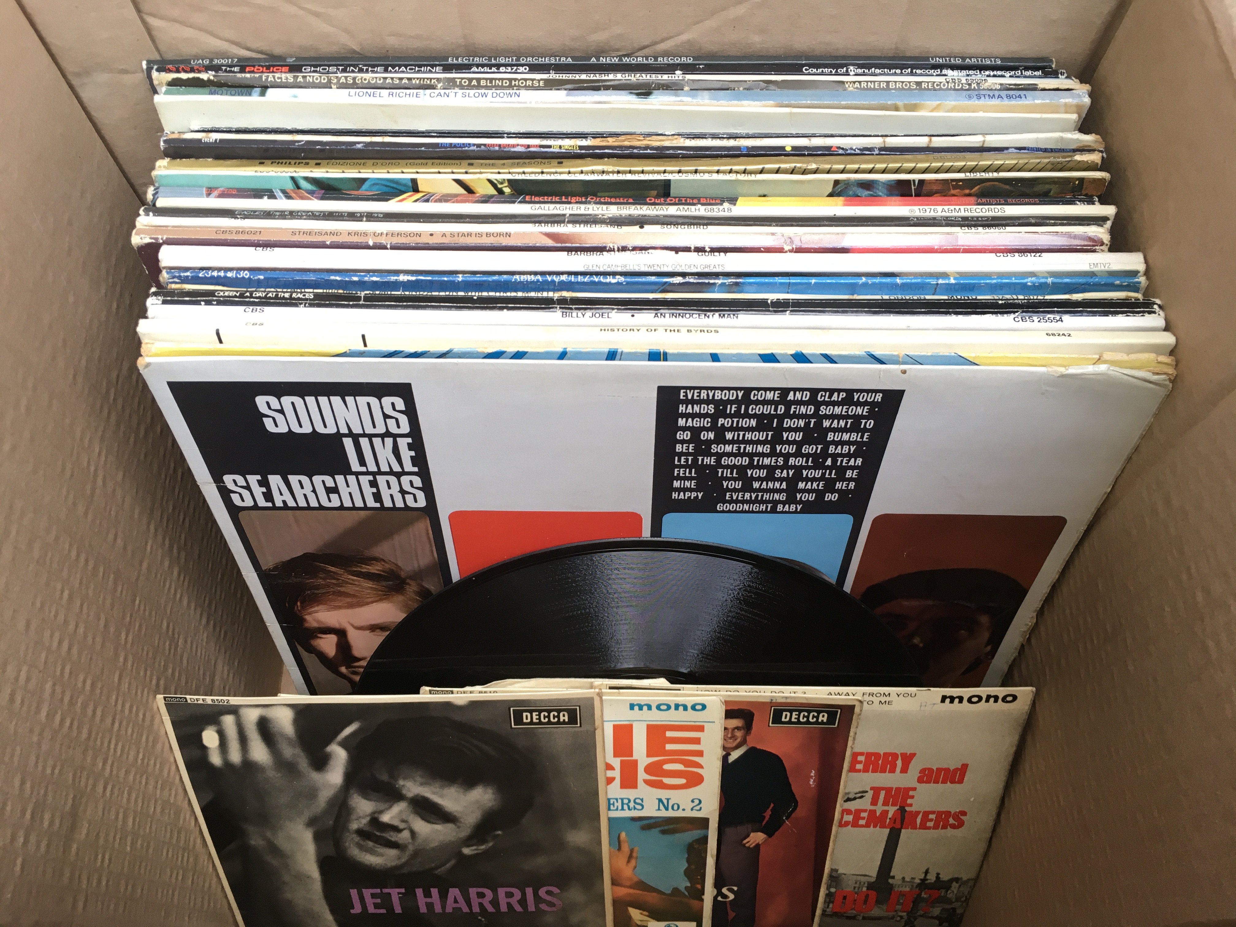 A collection of LPs, EPs and 7" singles by various artists including The Byrds, Queen, Jet Harris and others.