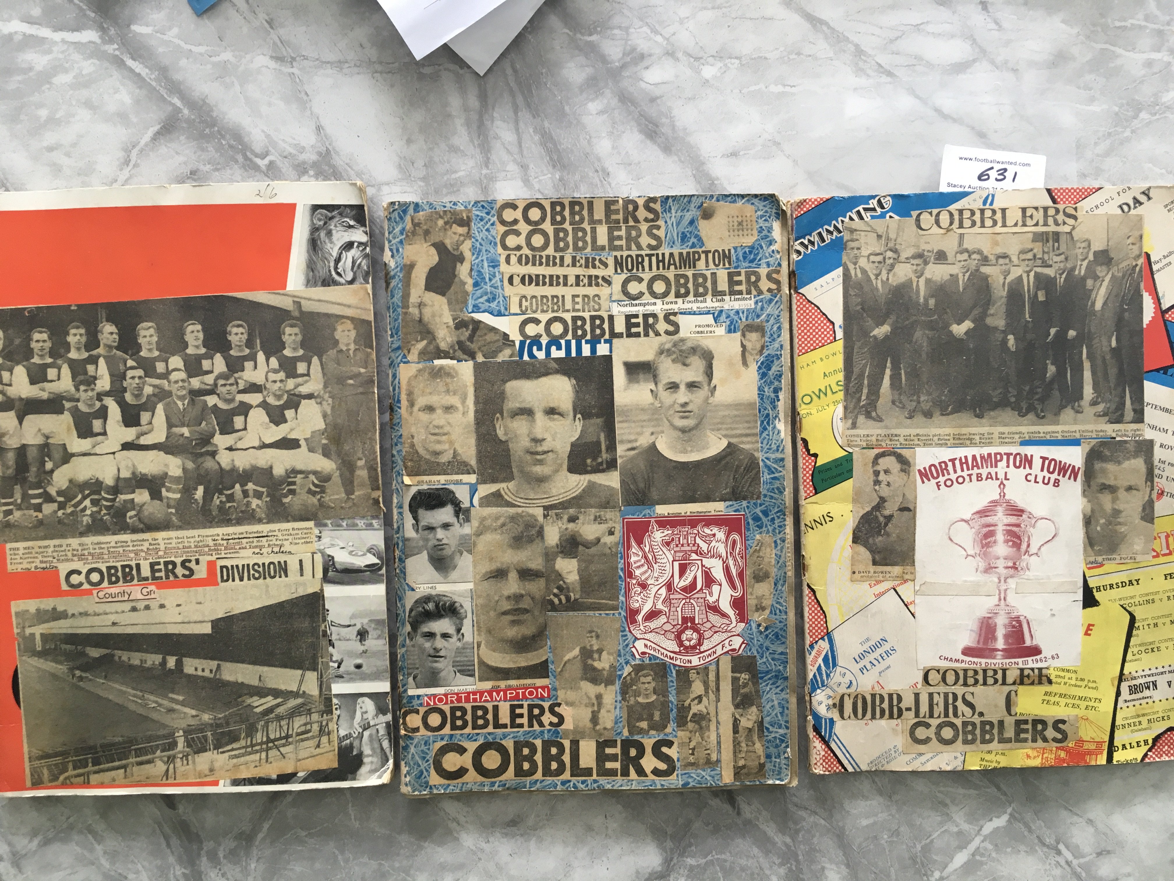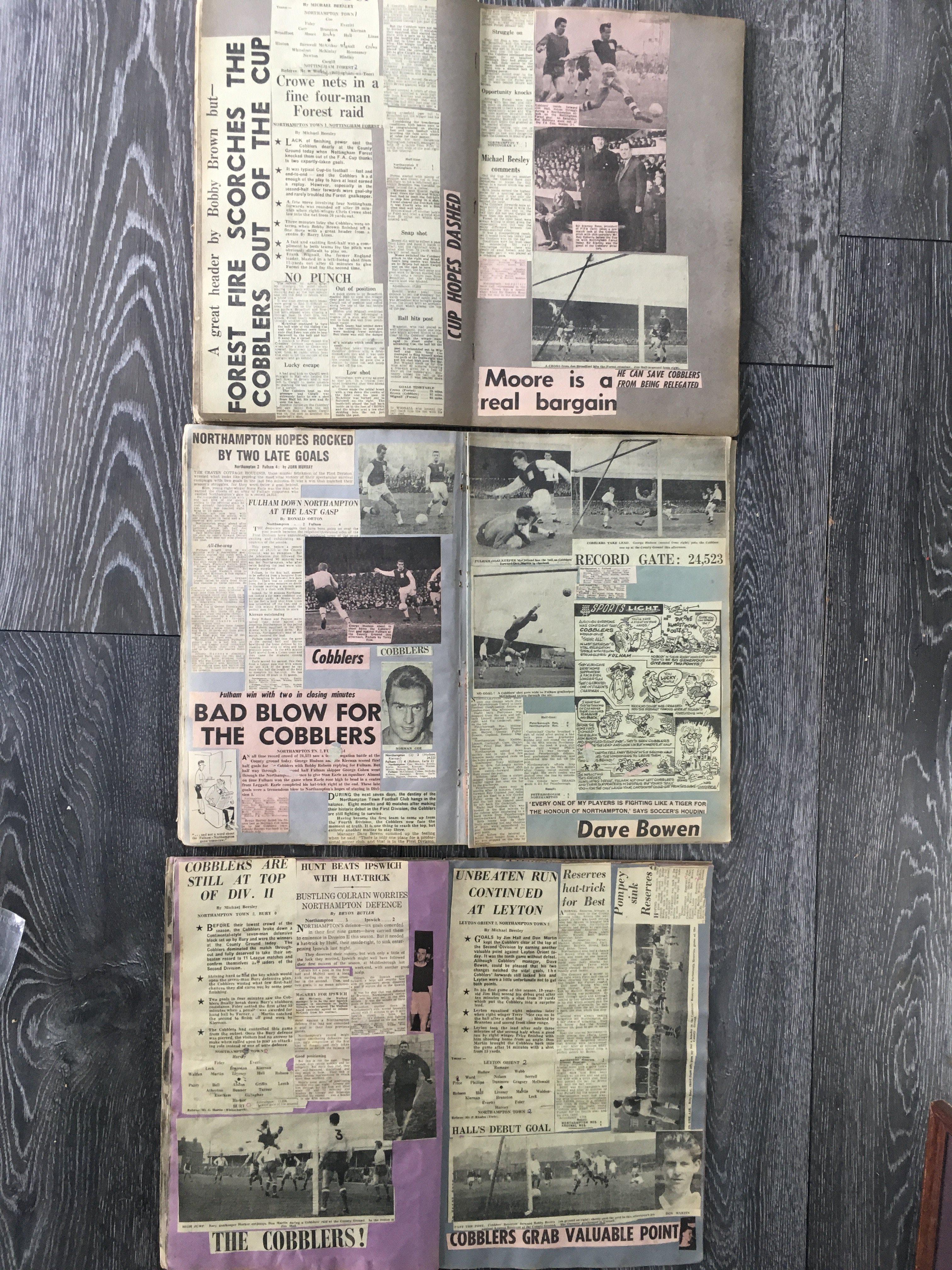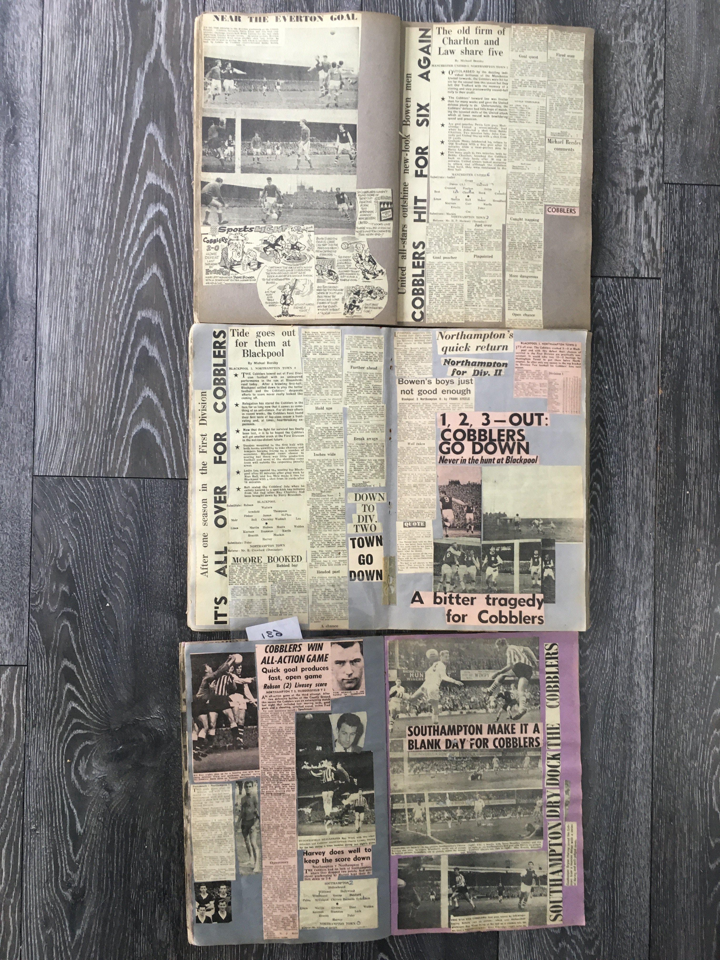 Northampton Town 1960s Football Scrapbooks: 3 large scrapbooks put together in the most exciting period in their history. Many cuttings and reports from the run up to and including the famous 65/66 season. (3)