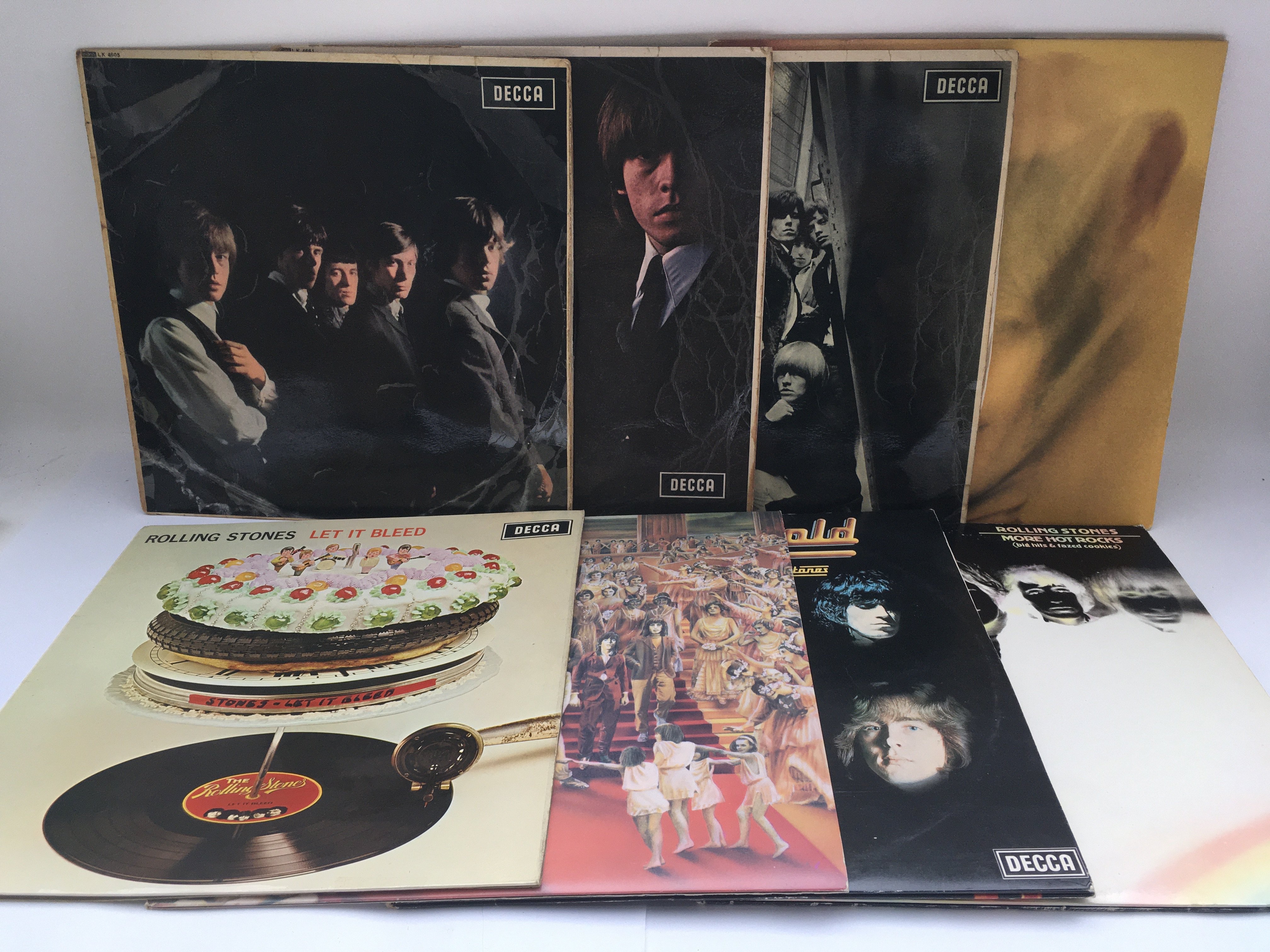 Eight Rolling Stones LPs comprising early UK pressings of the self titled debut, 'Let It Bleed', 'Out Of Our Heads' and others.