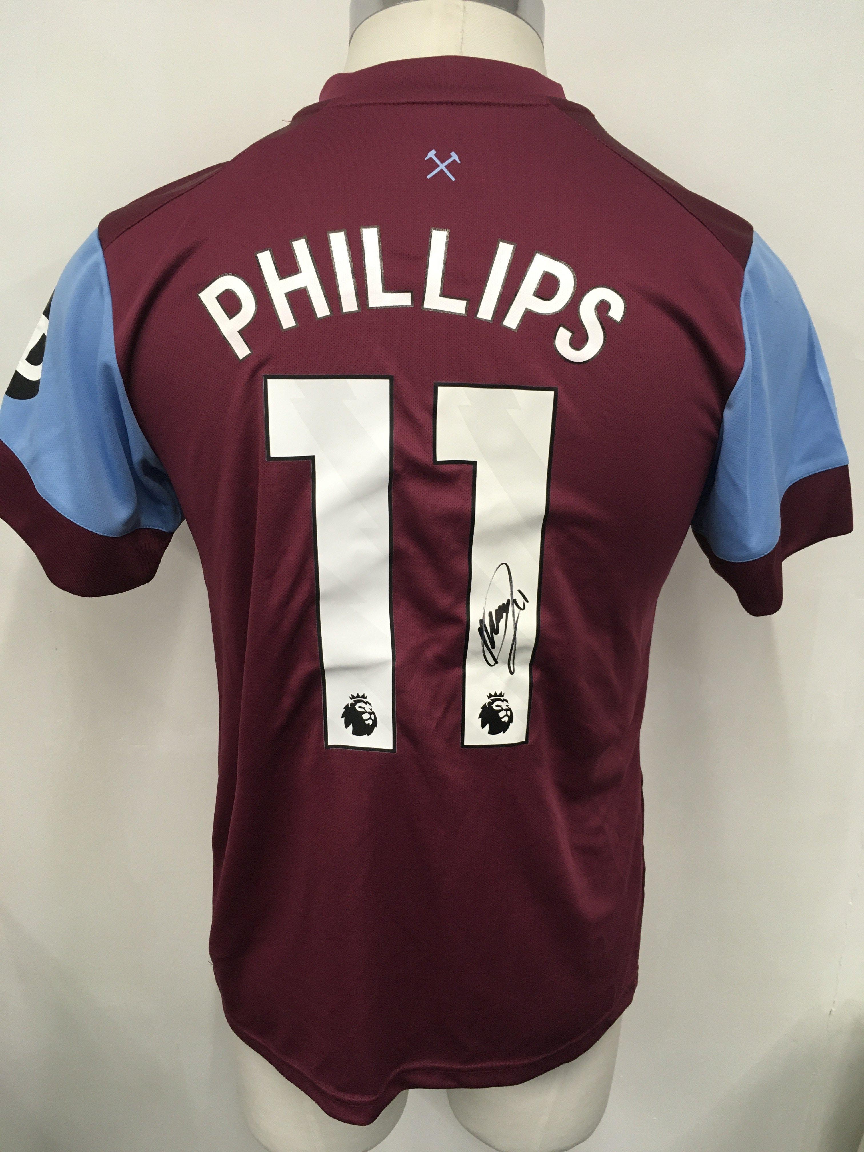 Kelvin Phillips Signed 2023 - 2024 West Ham Football Shirt: Medium home shirt with name and number signed to rear by Phillips.