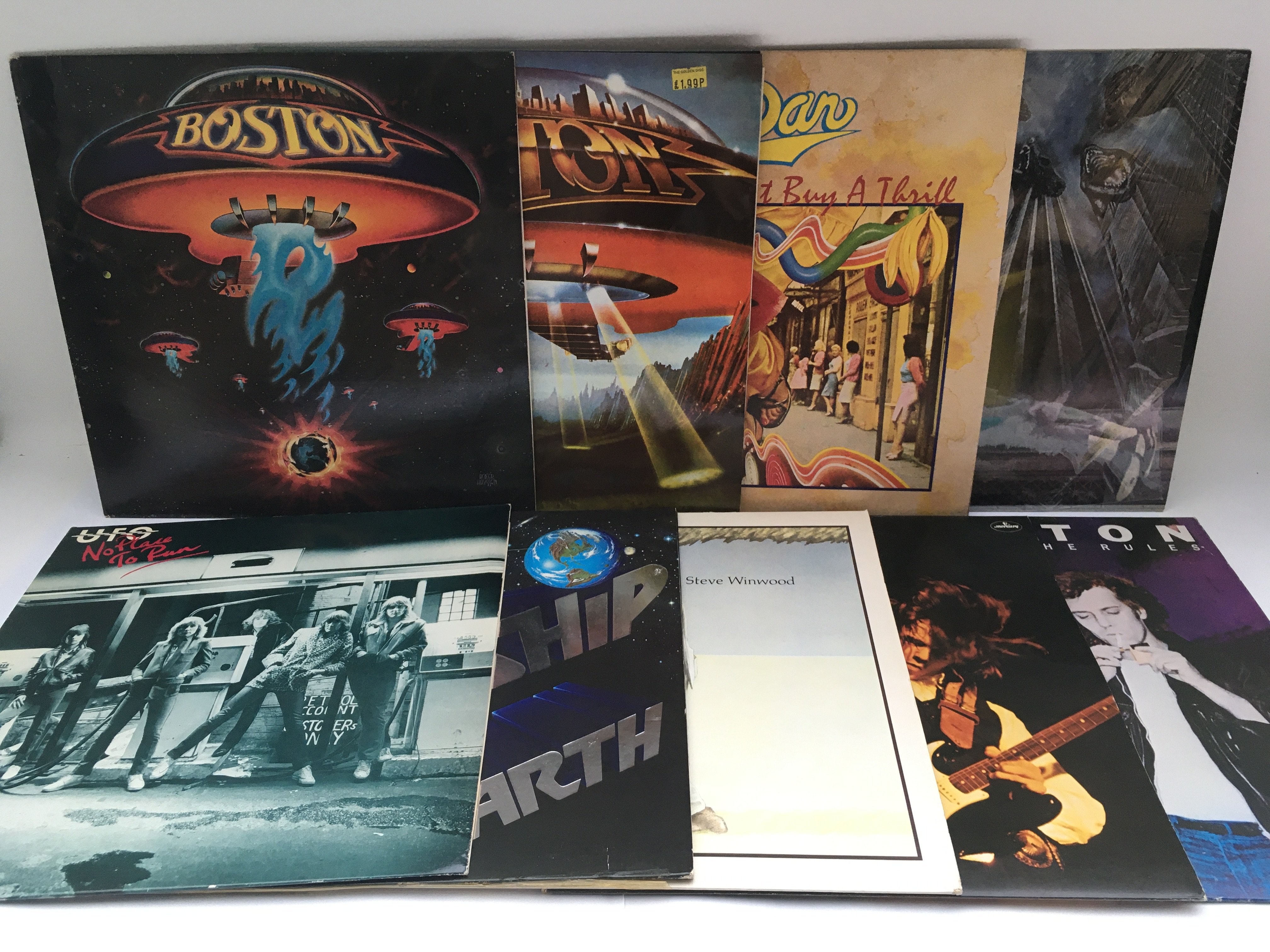 Eighteen rock LPs by various artists including Rush, Boston, Steely Dan and others.