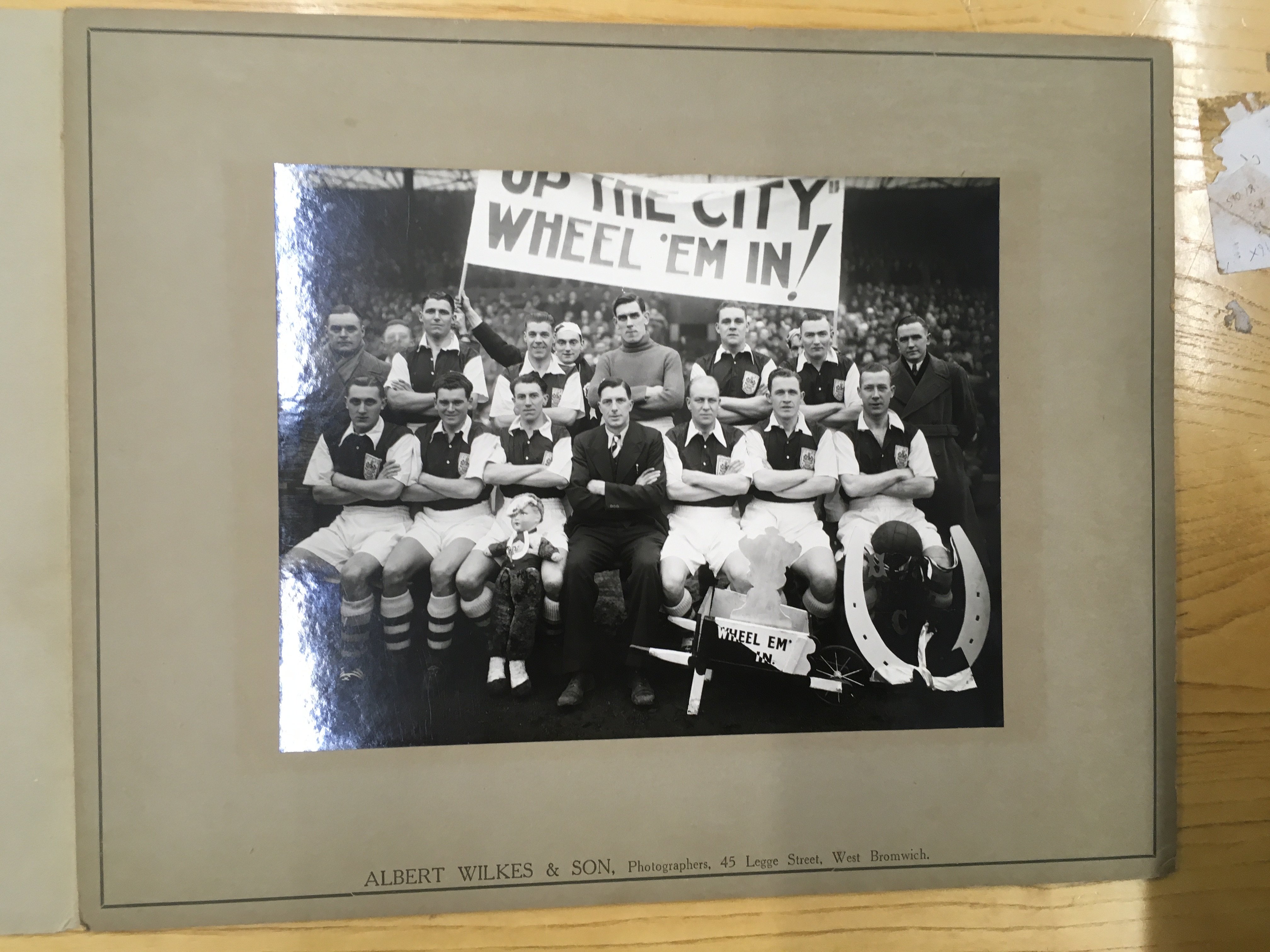 Chelmsford City 1939 FA Cup Football Team Press Photo: Stuck down on original Wilkes card protector. Actual photo nearly 10 x 8 inches depicting the Chelmsford team on the pitch at Birmingham in the FA Cup 4th round. 85 years old in good condition.