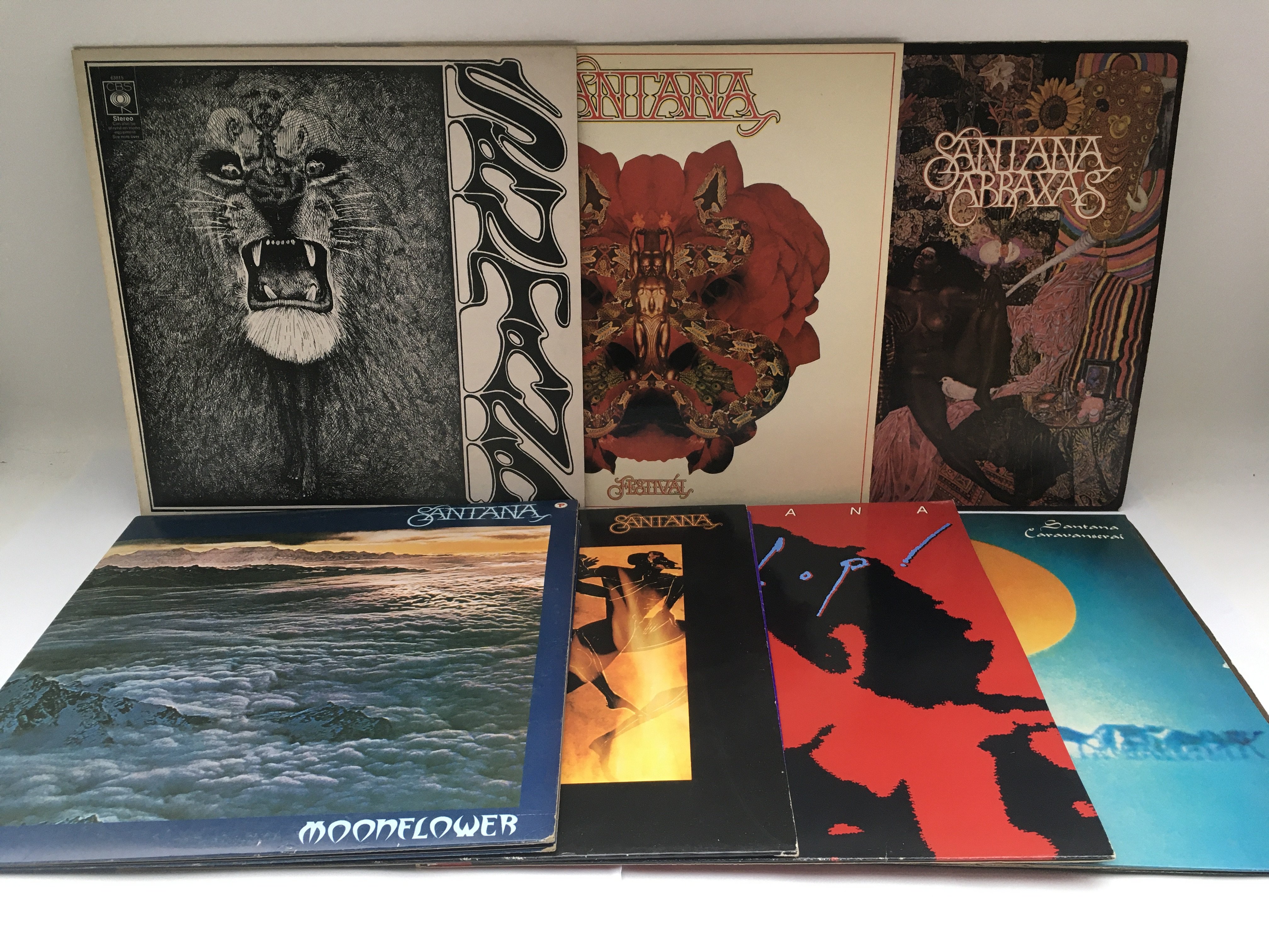 Seven Santana LPs comprising 'Abraxas', 'Festival' and others.