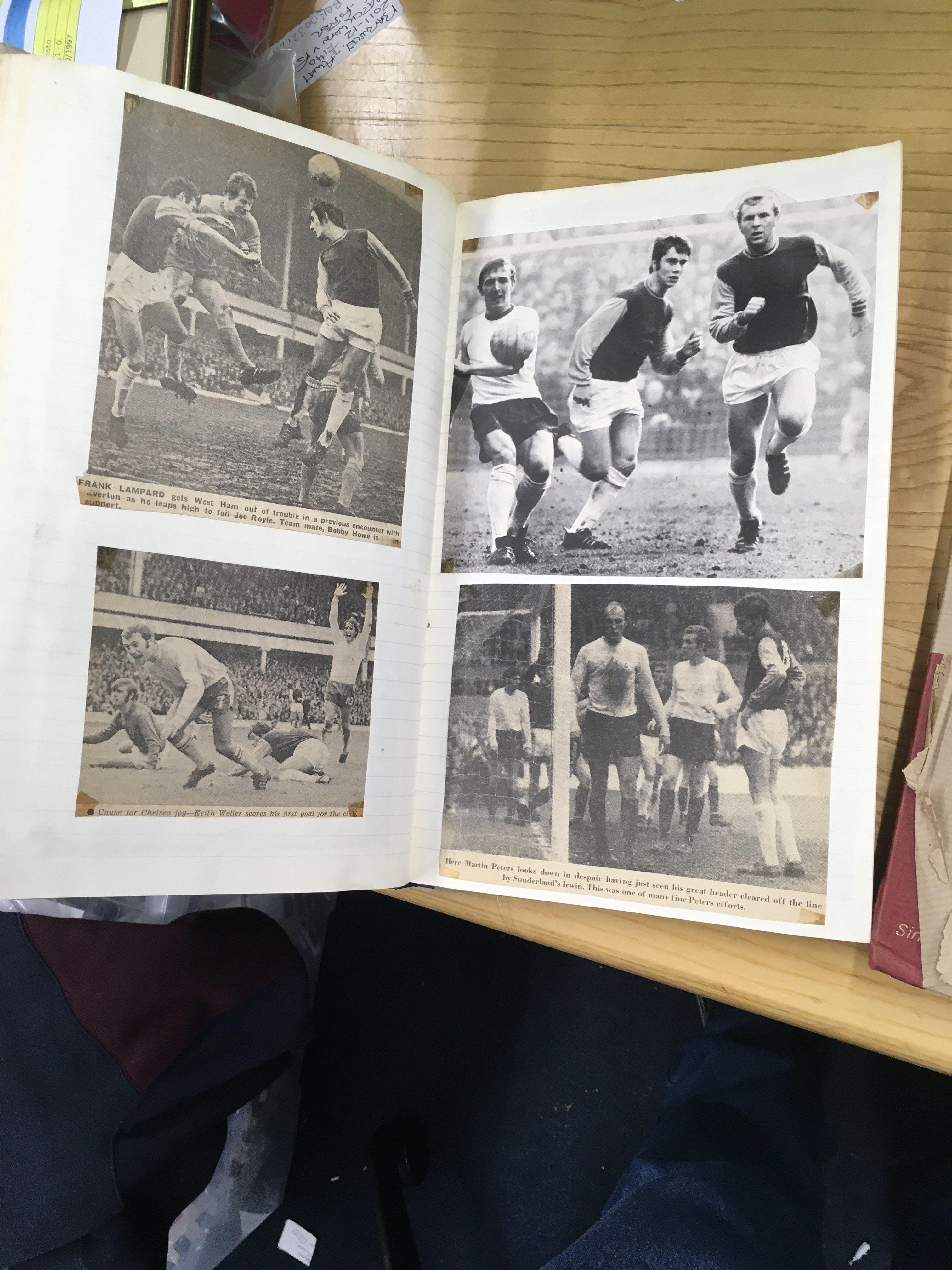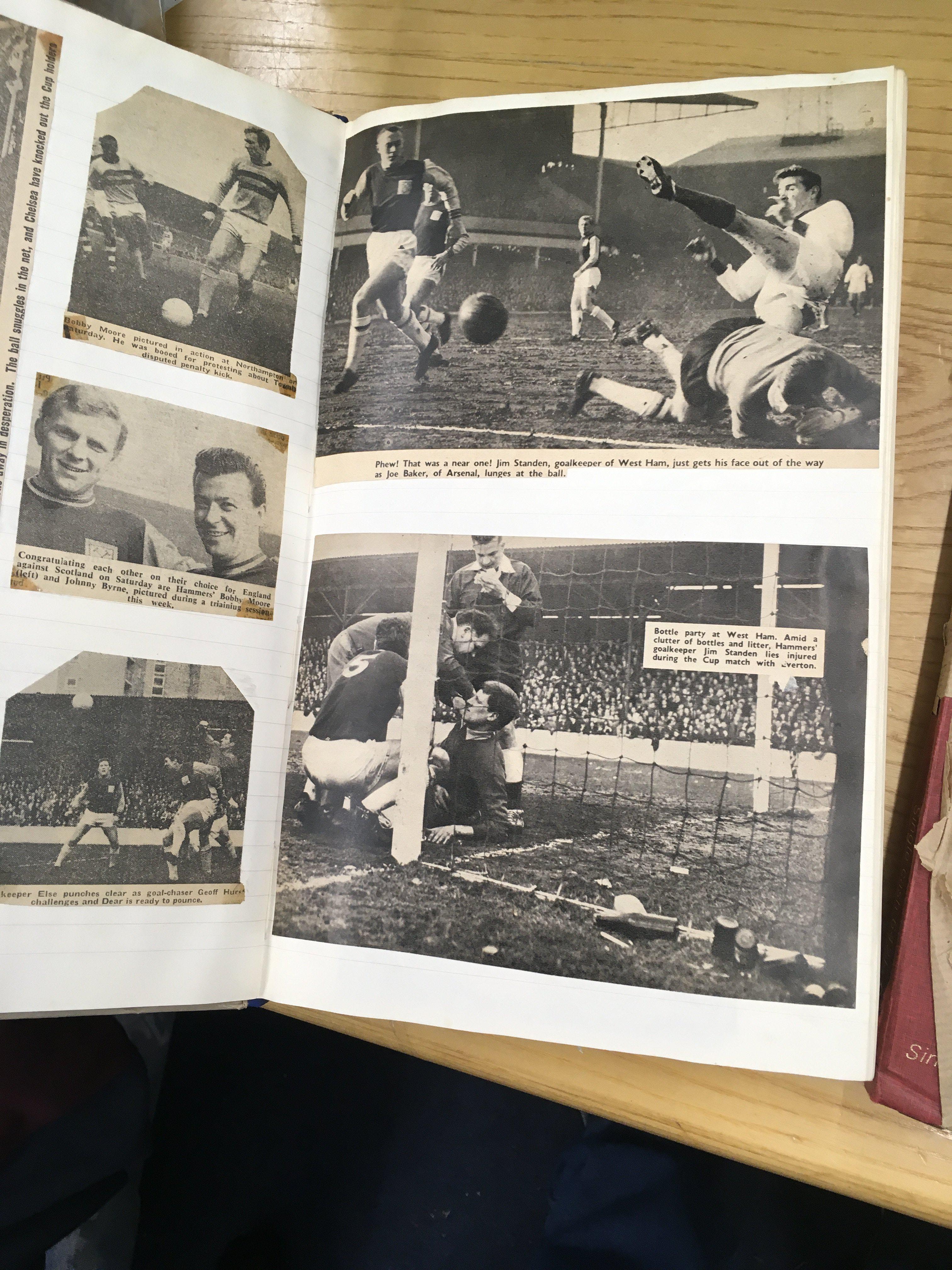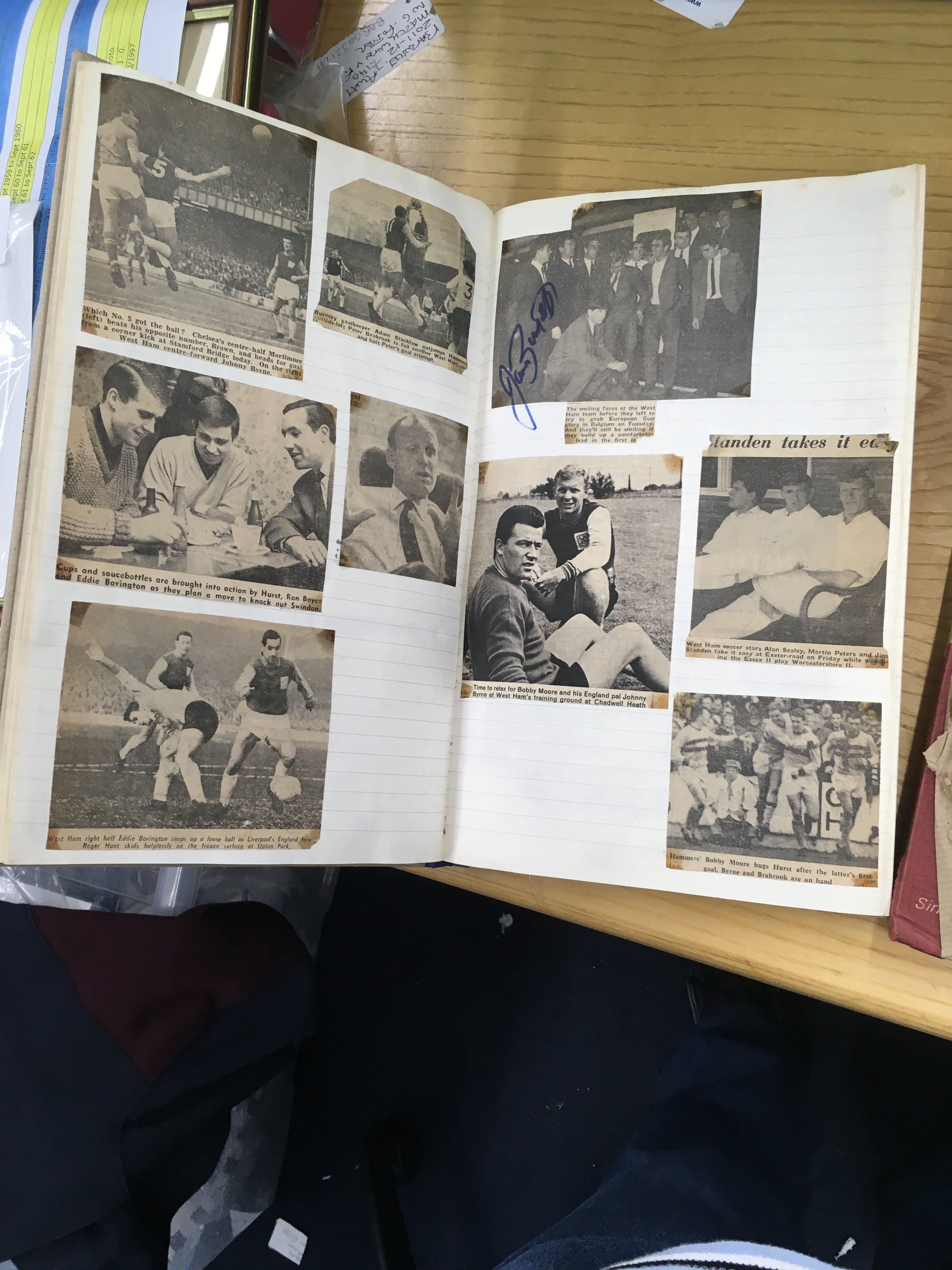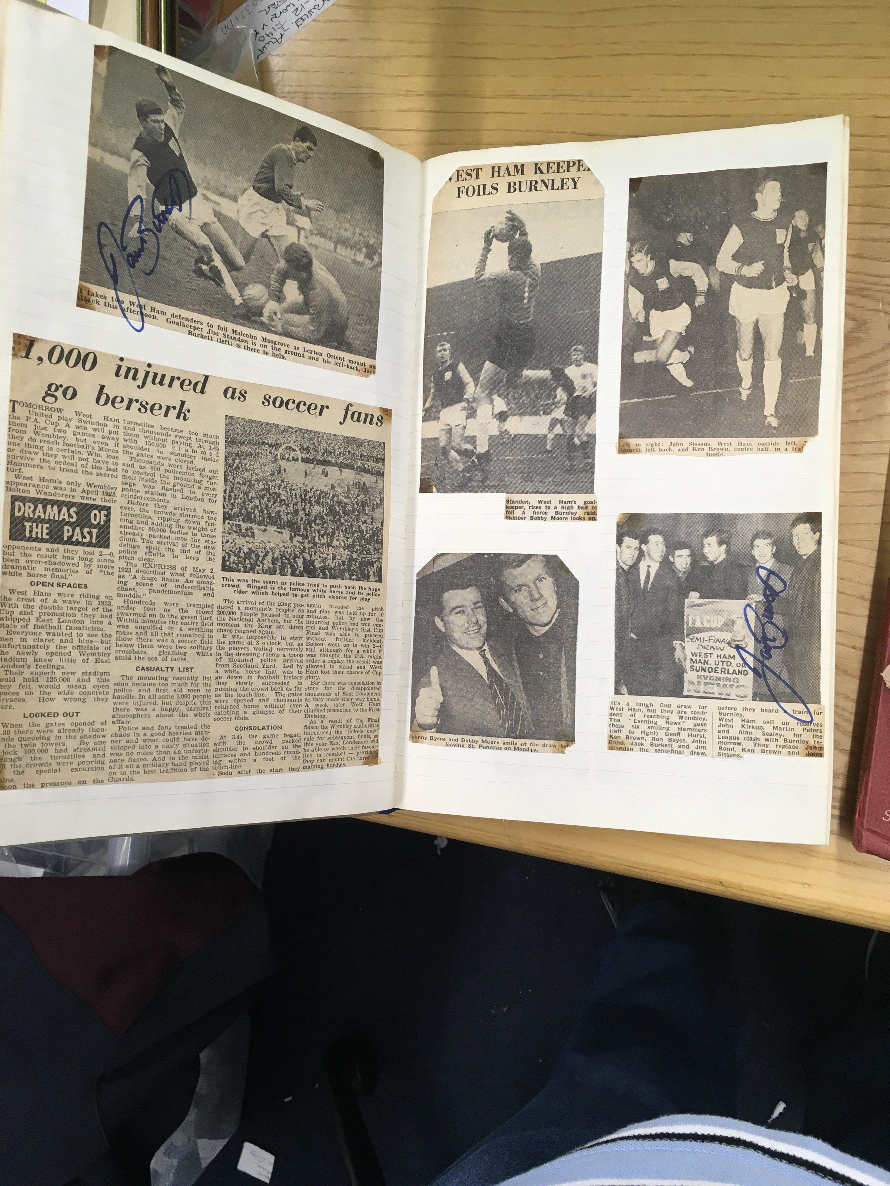 West Ham 1960s Football Scrapbooks: Includes over 2000 photos and features newspaper reports and pictures. Many autographs from Jack Burkett. (3 scrapbooks)