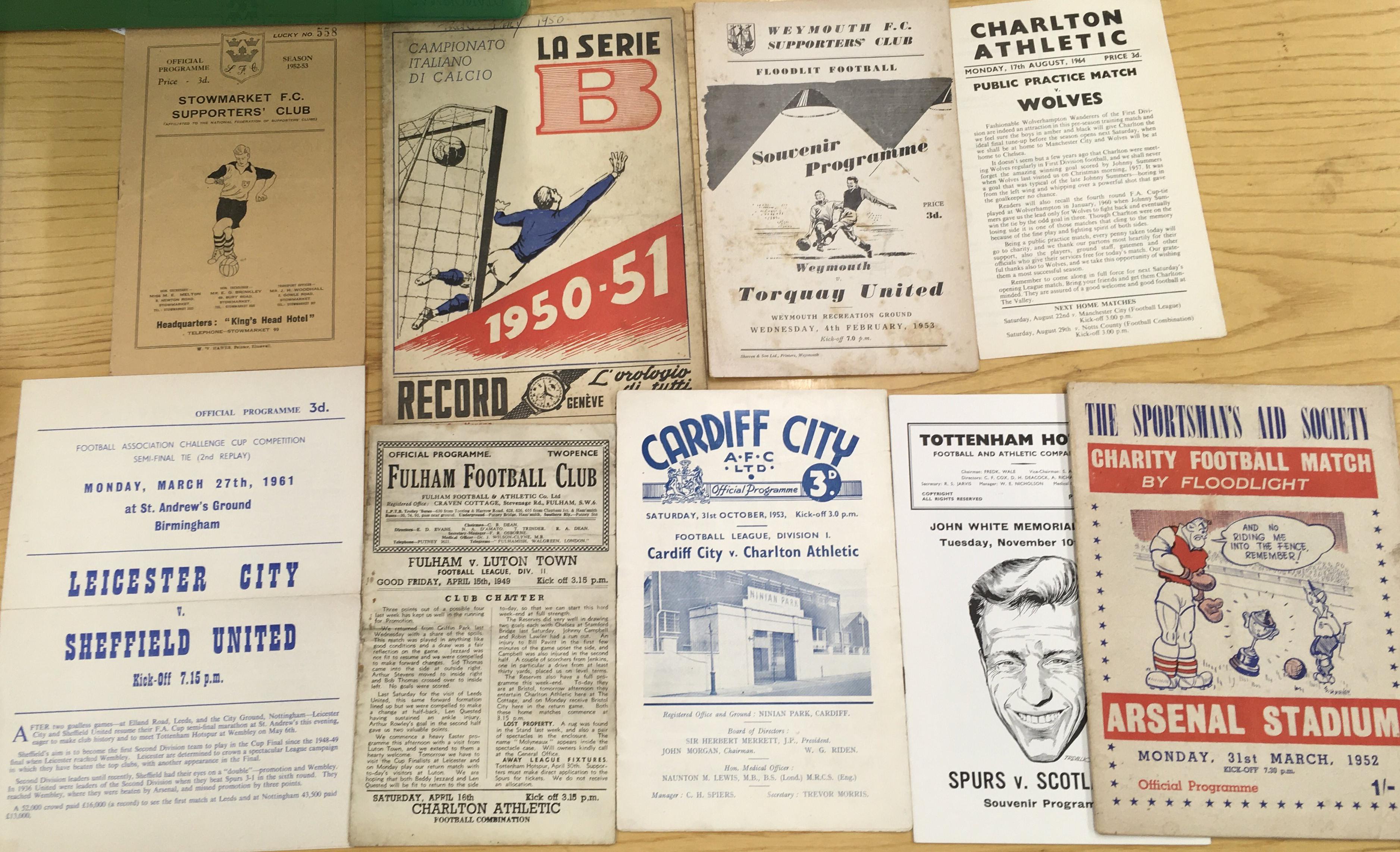 1950s + 1960s Football Programmes: Varied programmes mainly from the 1950s and 60s. Features Big Match, Non League, International matches. Well worth a look as many unusual programmes. (370)