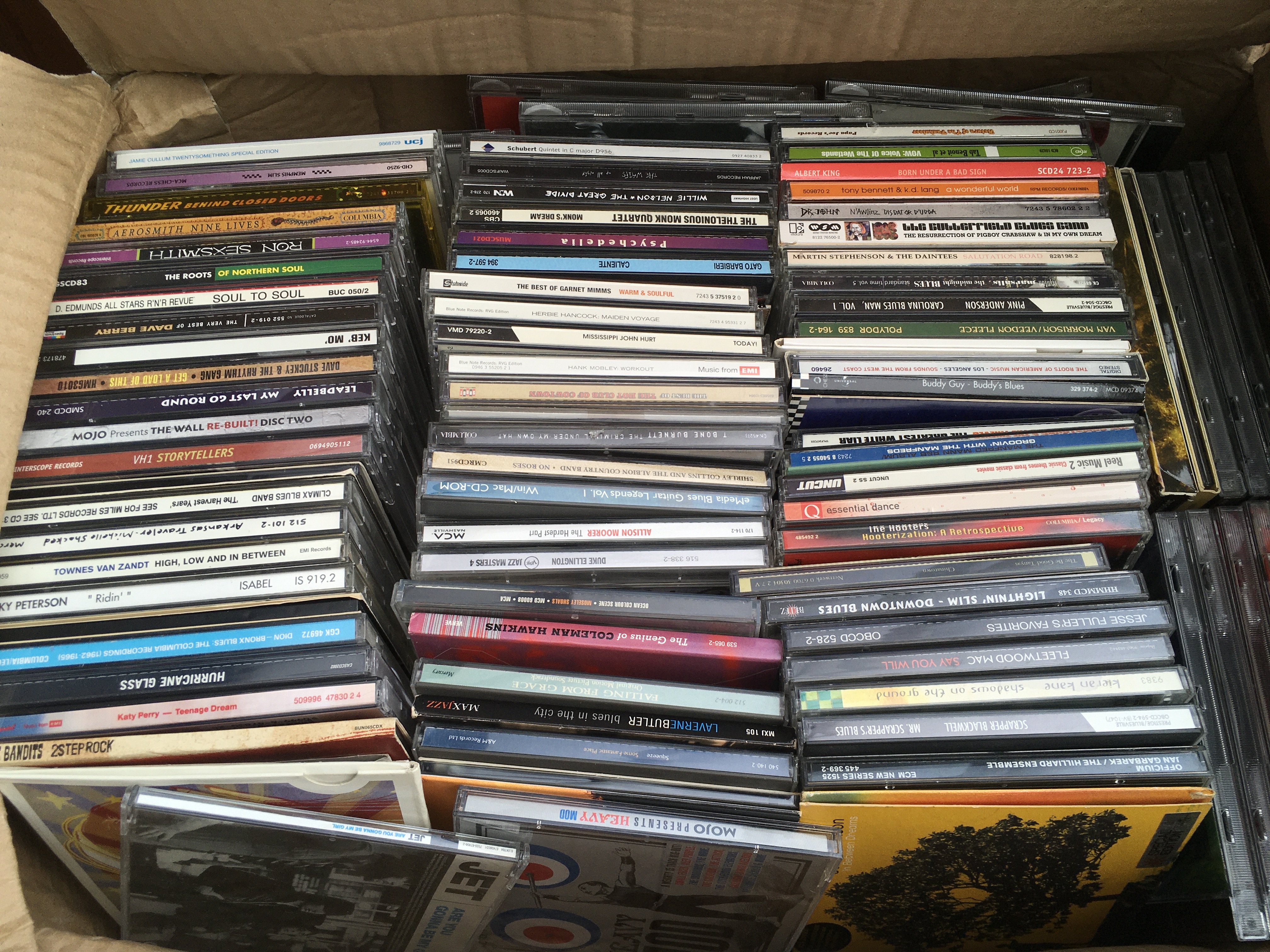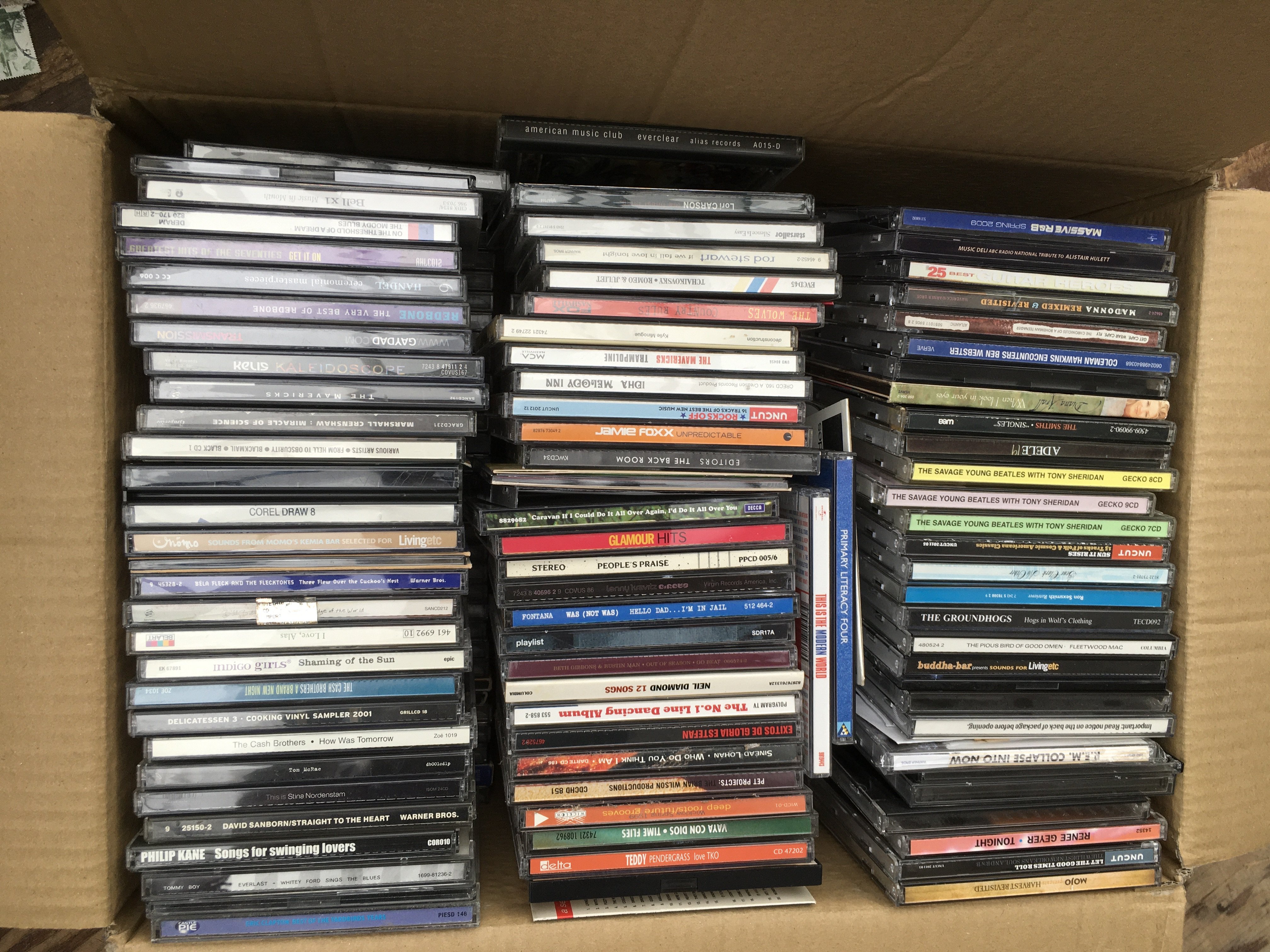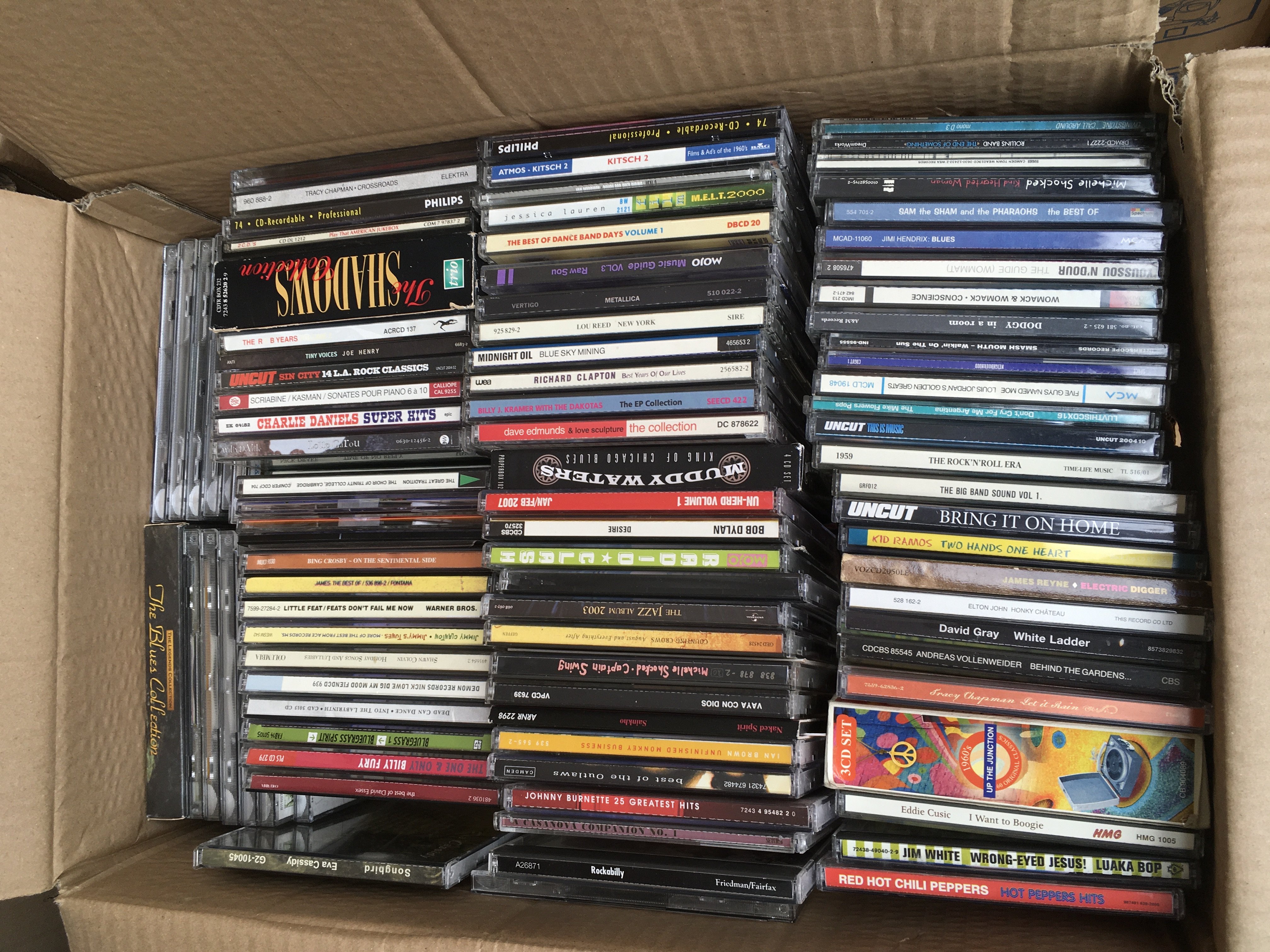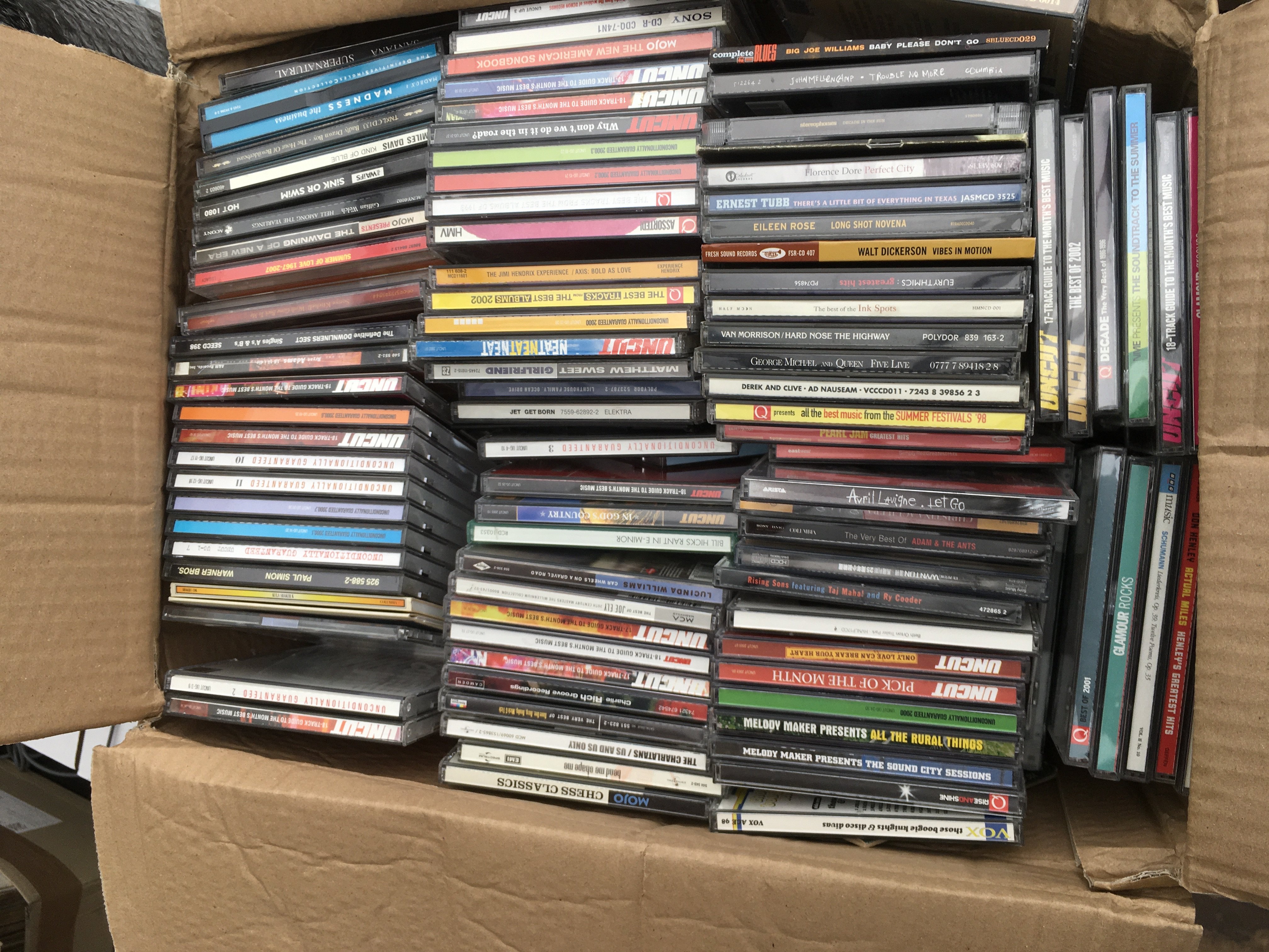 Eight boxes of CDs by various artists including Nick Drake, Tom Waits, Small Faces, Dr John and many more.