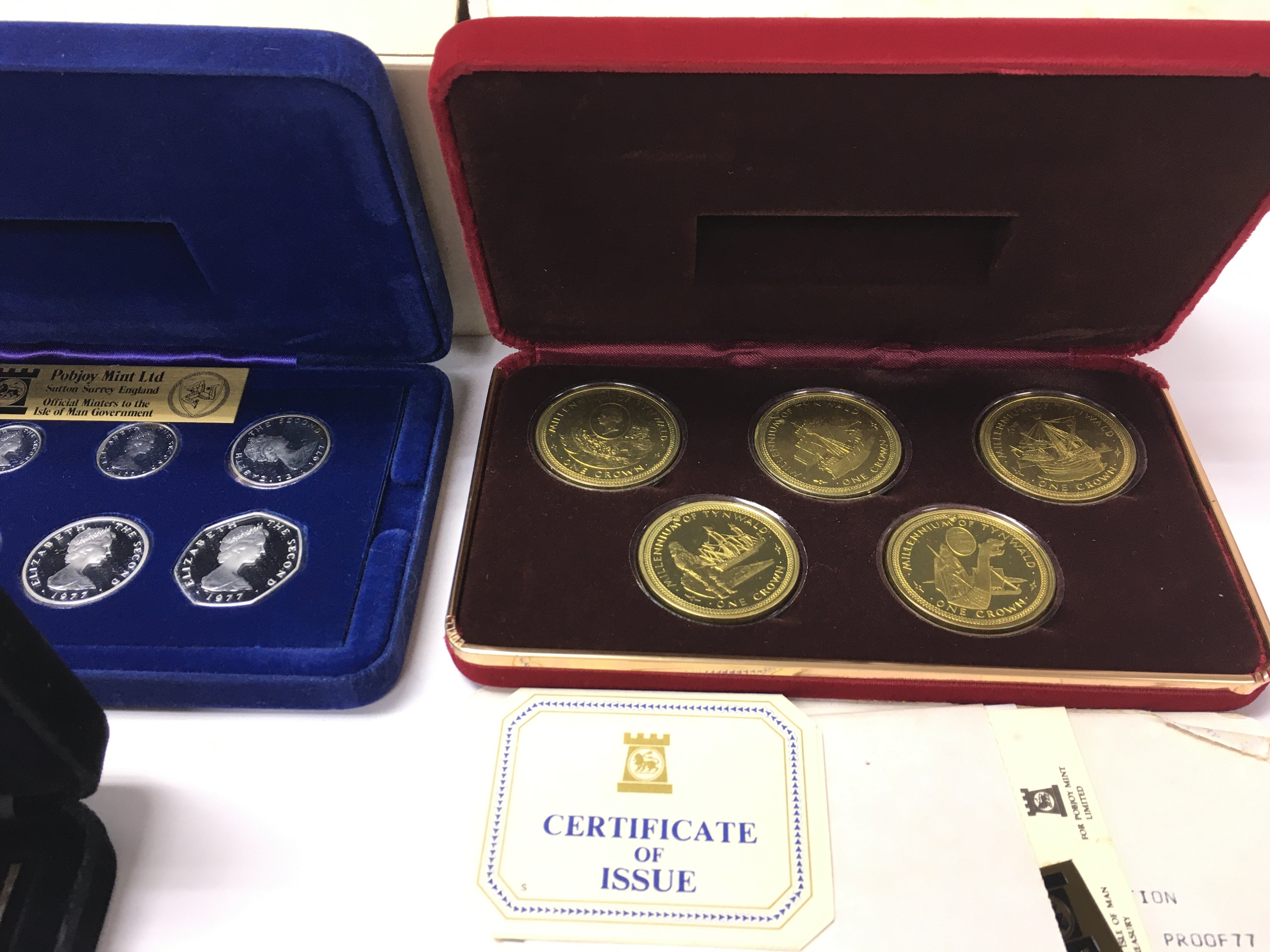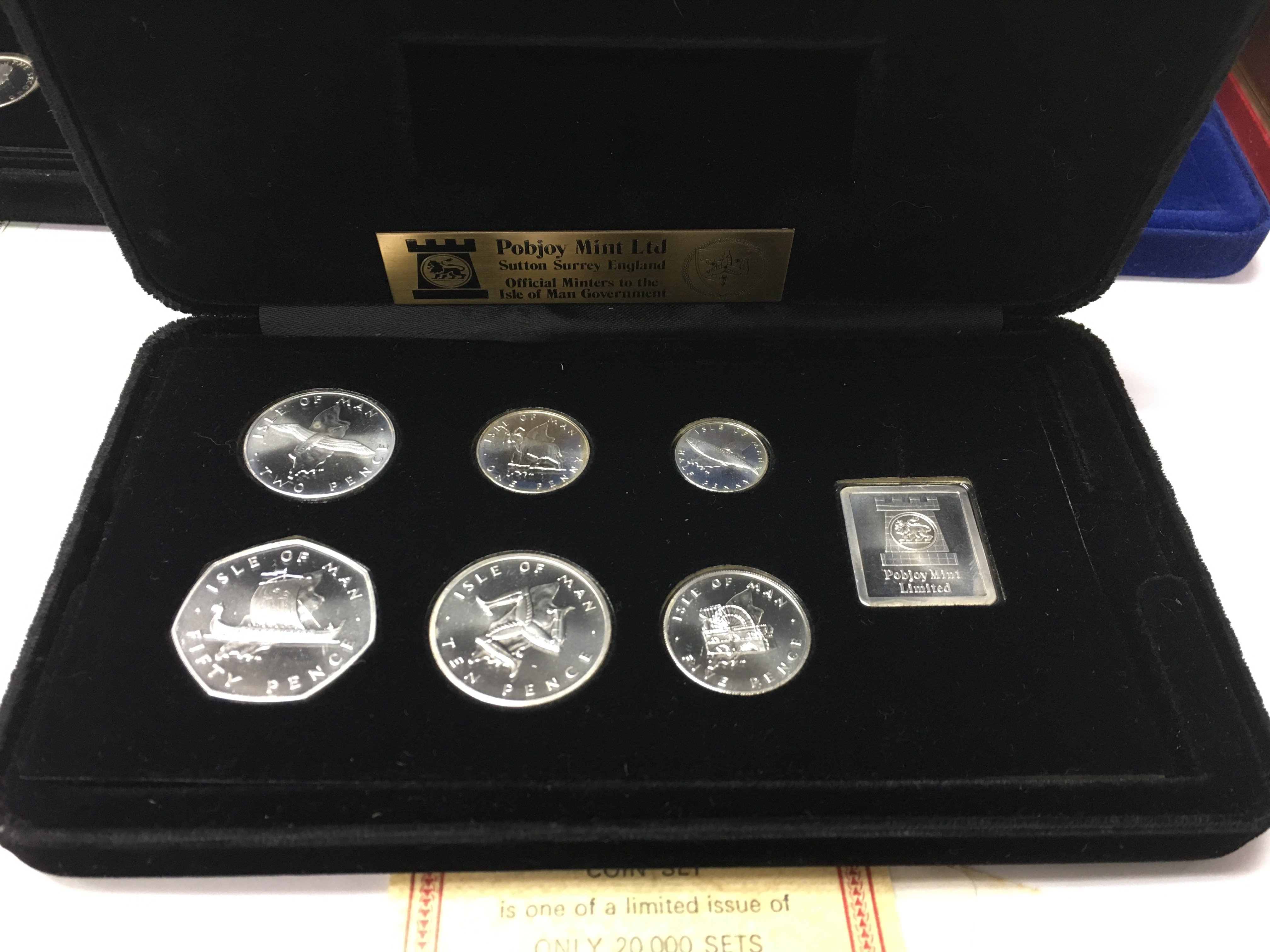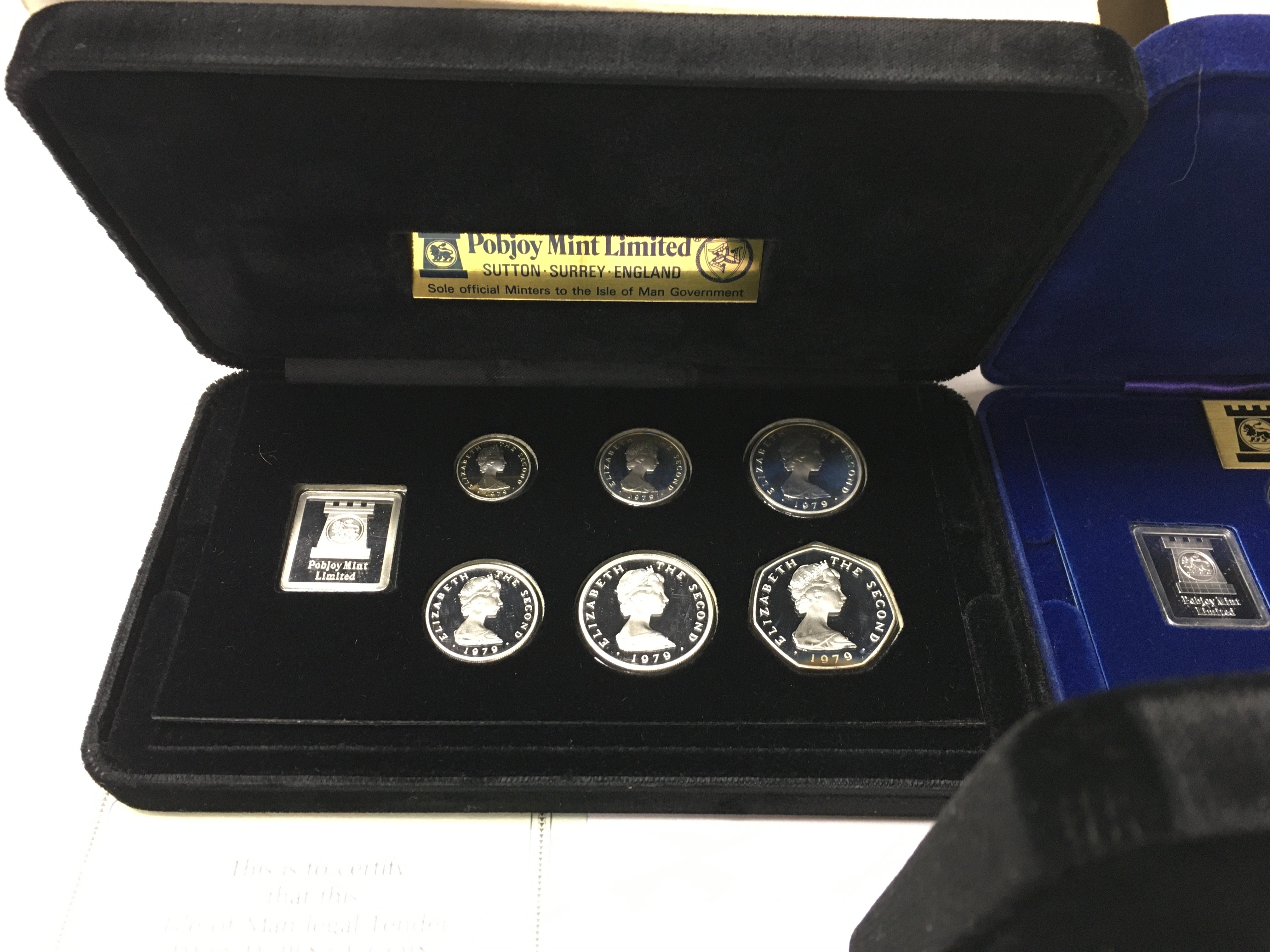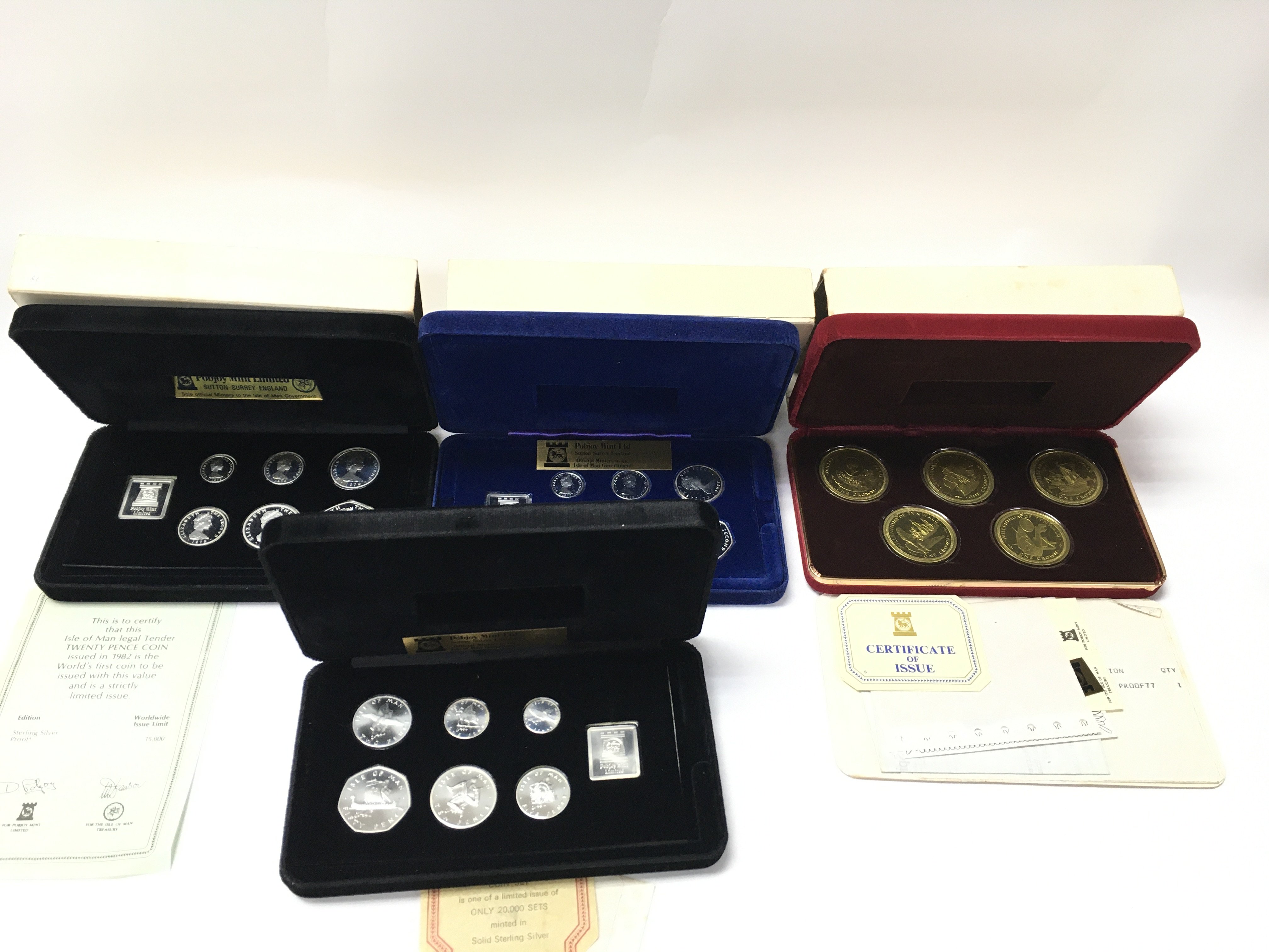 Four cased Isle of Man silver coin sets. Postage A