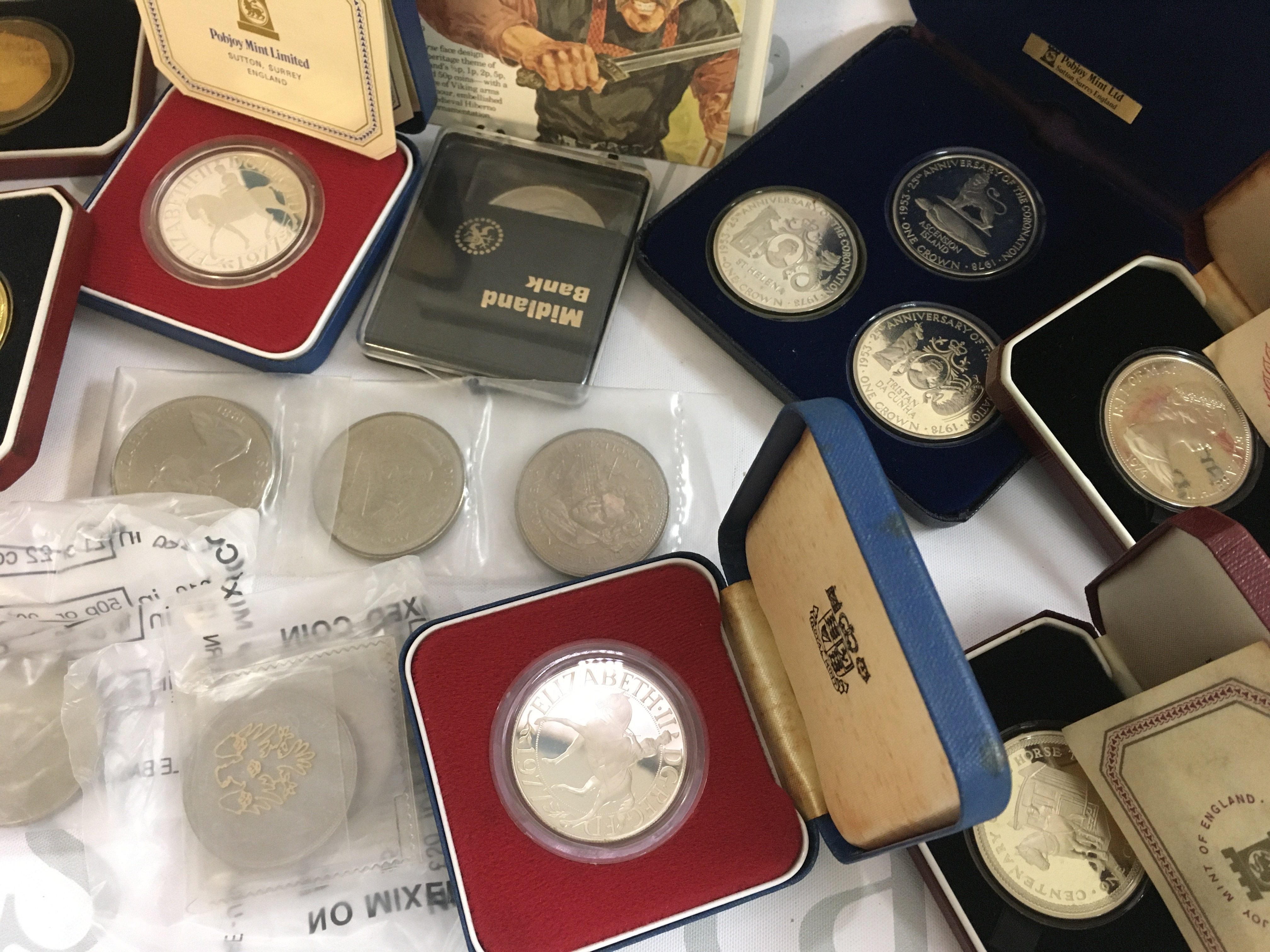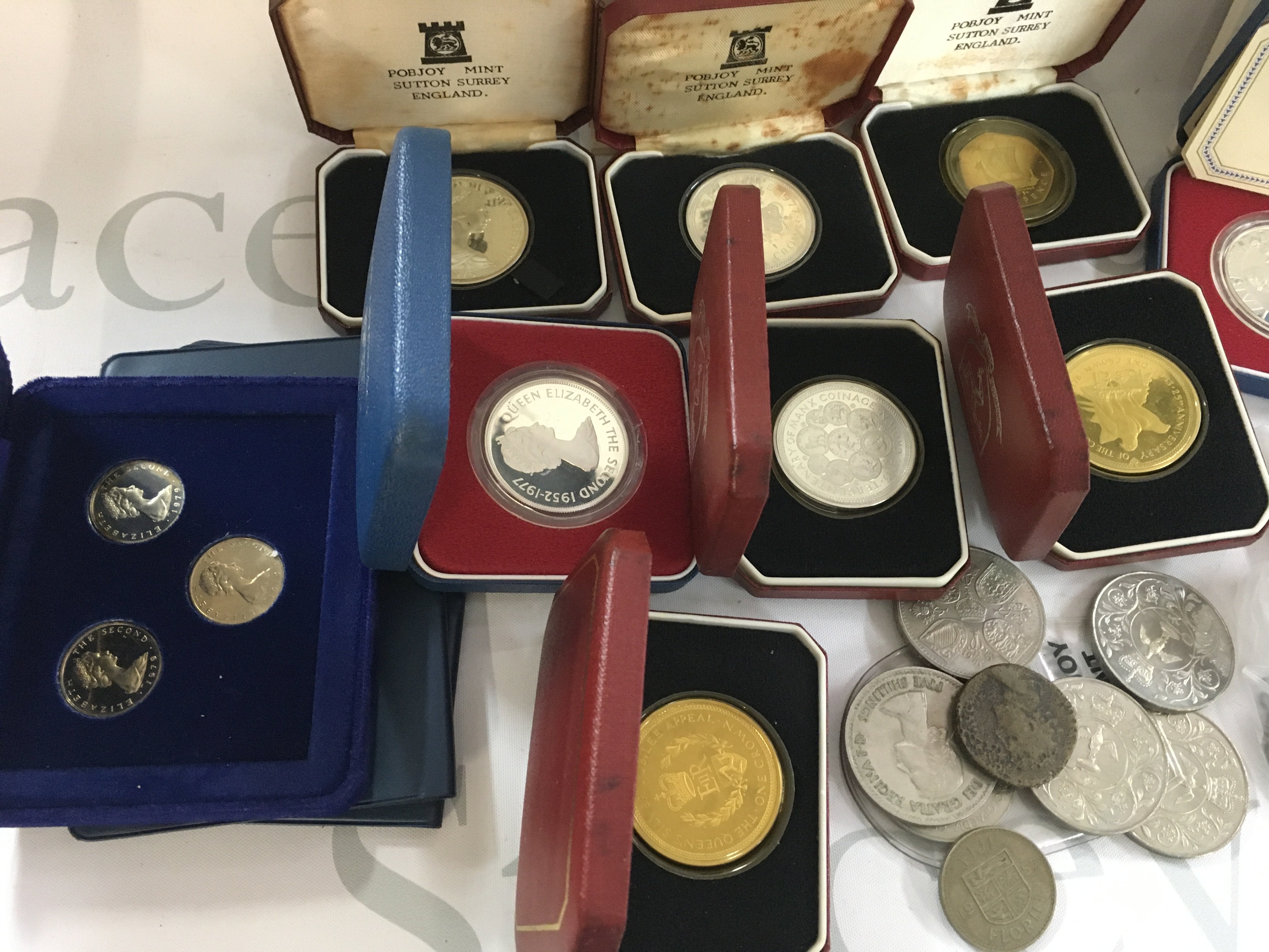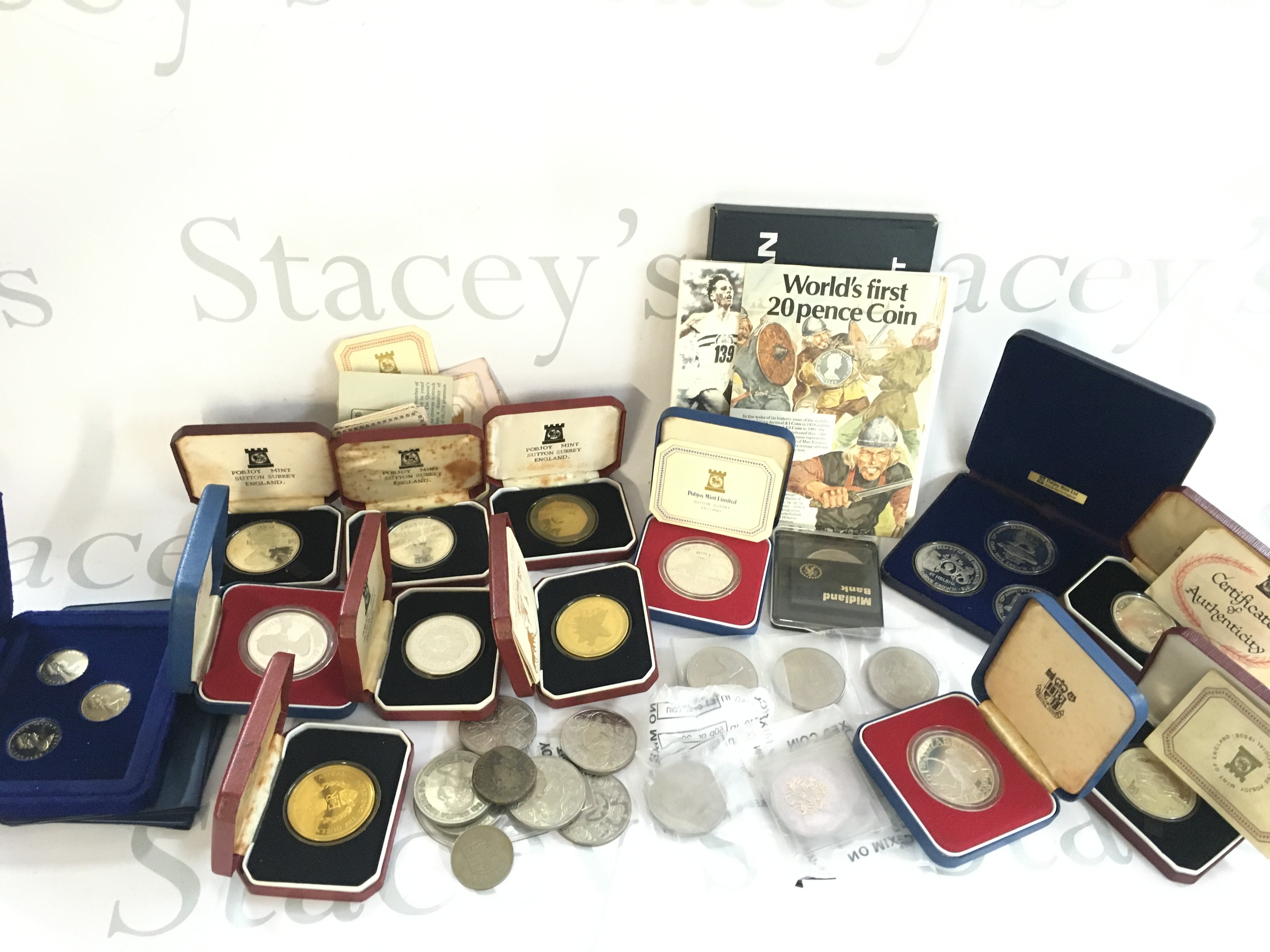 A collection of silver and other coinage including isle of man coins and a box of rolled sealed 1971 1p coins. Postage B
