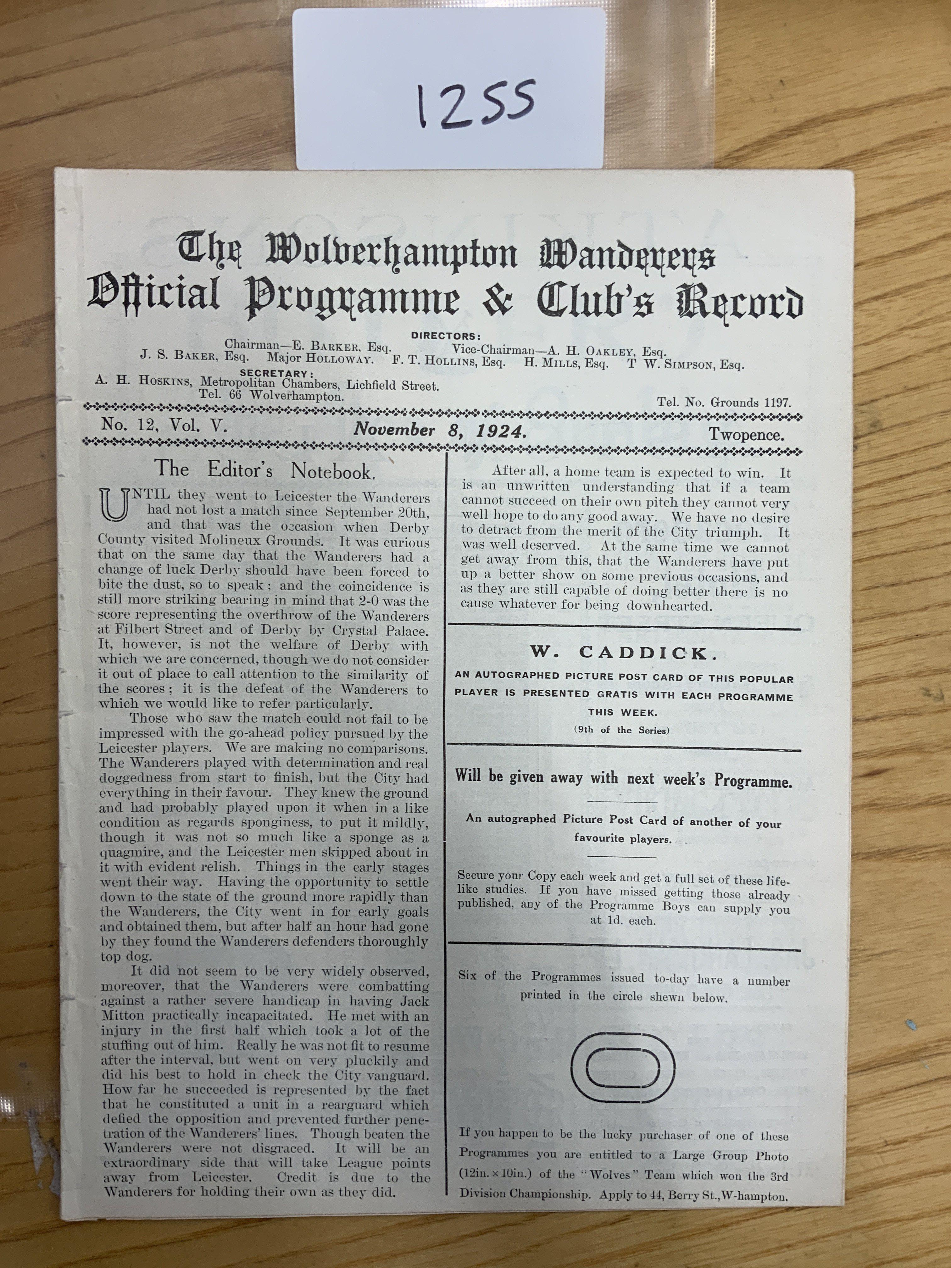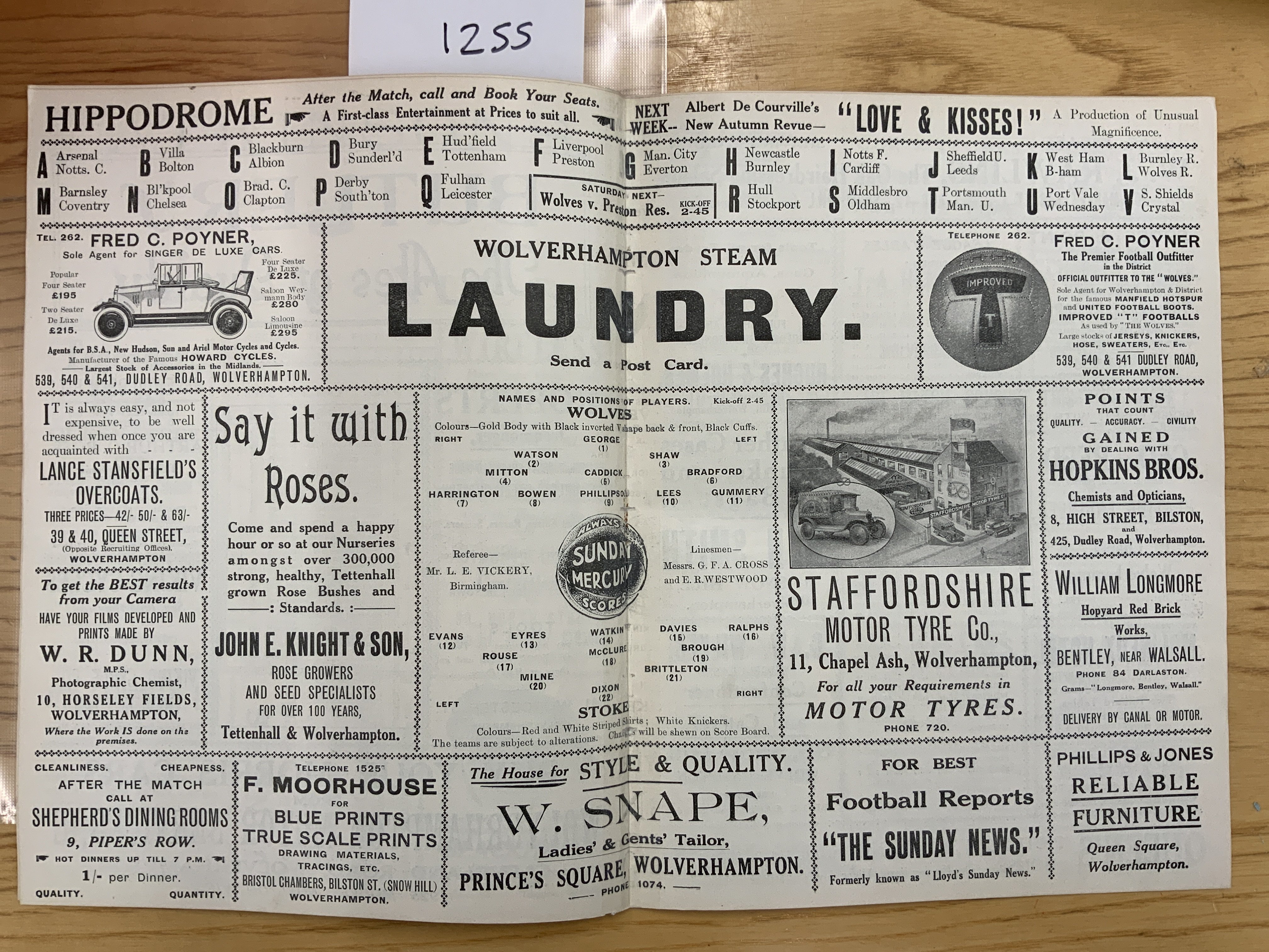 1924 - 1925 Wolves v Stoke City Football Programme: Ex bound 100 years old excellent condition first team division 2 match with no writing. Now an 8 pager due to covers being removed.
