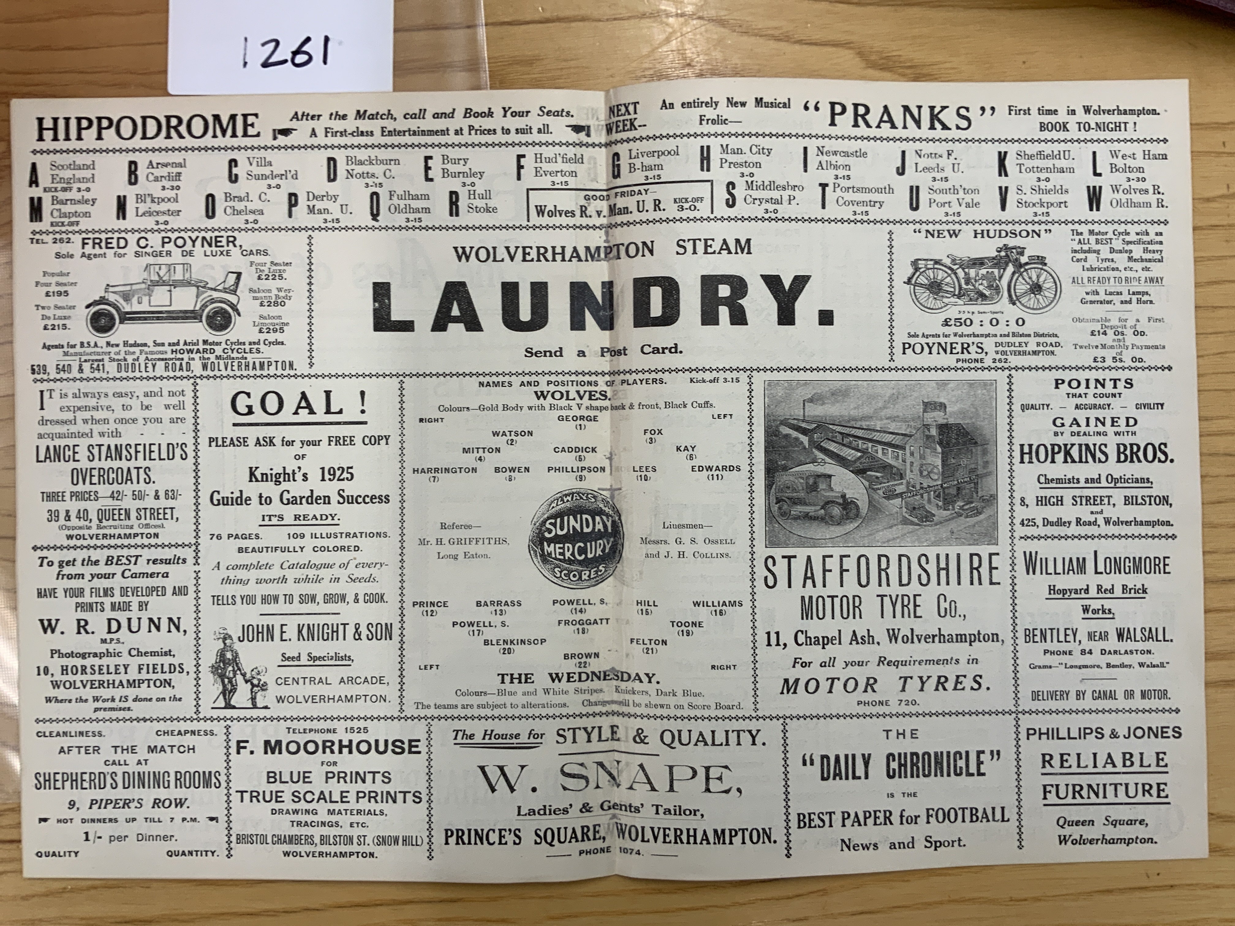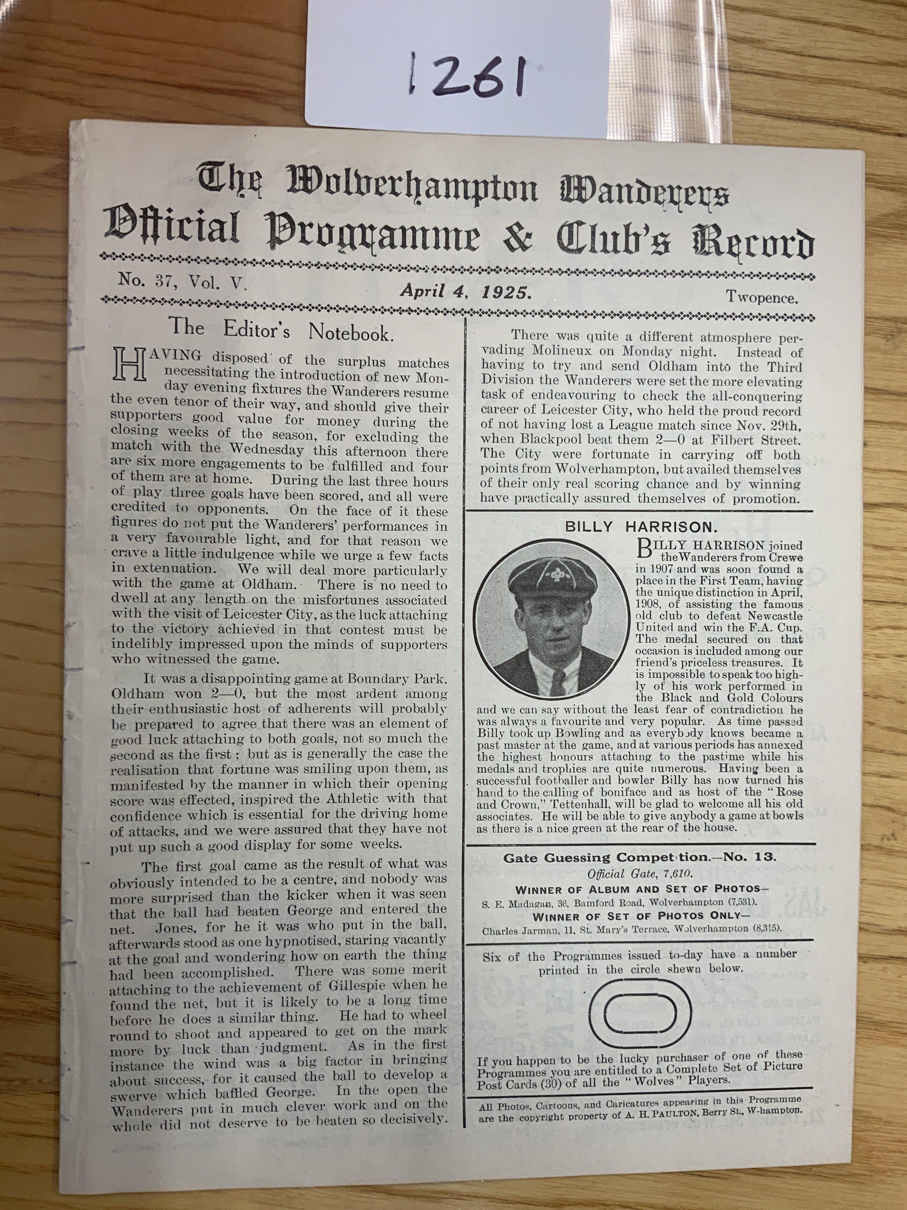 1924 - 1925 Wolves v Sheffield Wednesday Football Programme: Ex bound 100 years old excellent condition first team division 2 match with no writing. Now an 8 pager due to covers being removed.