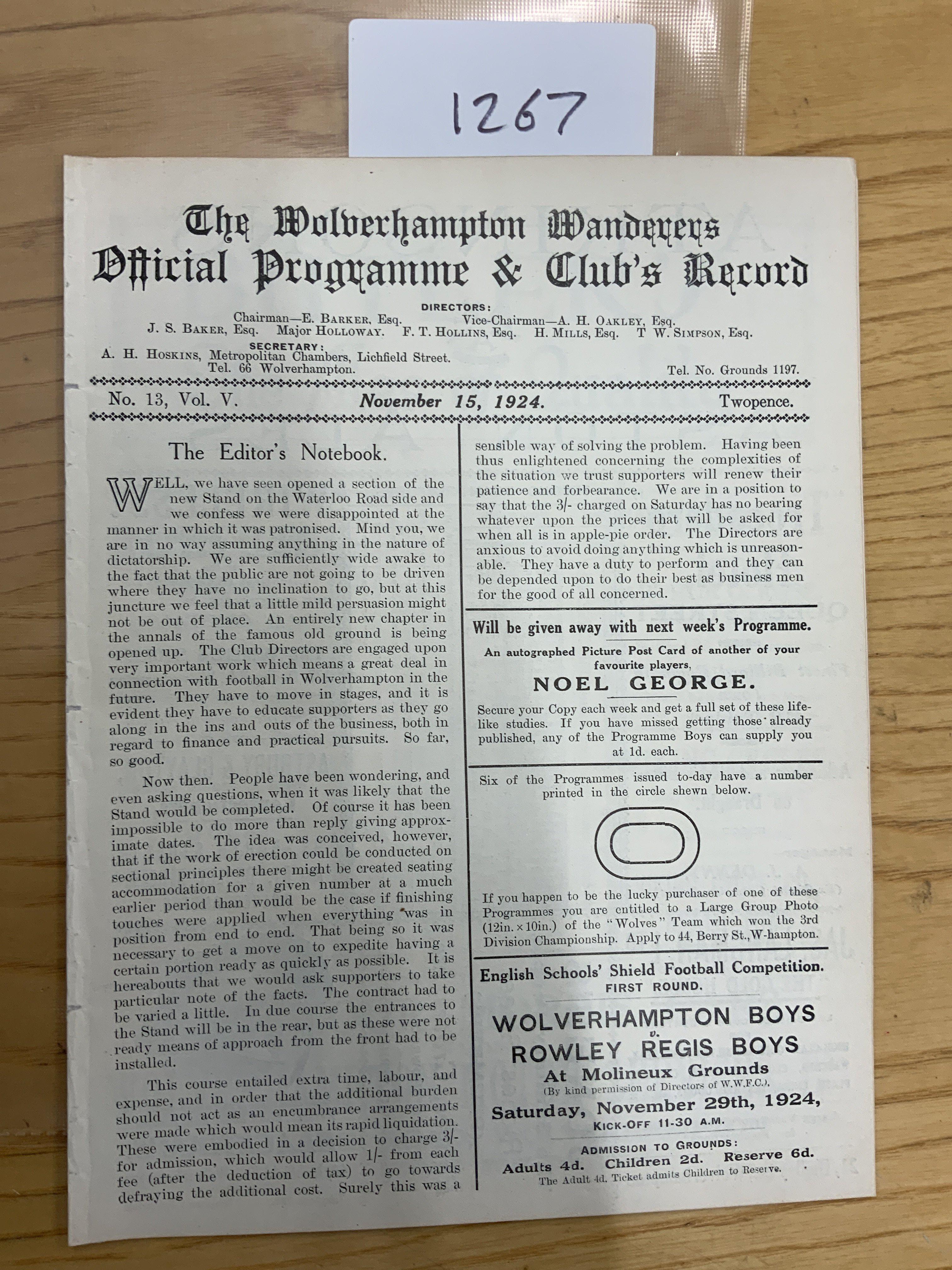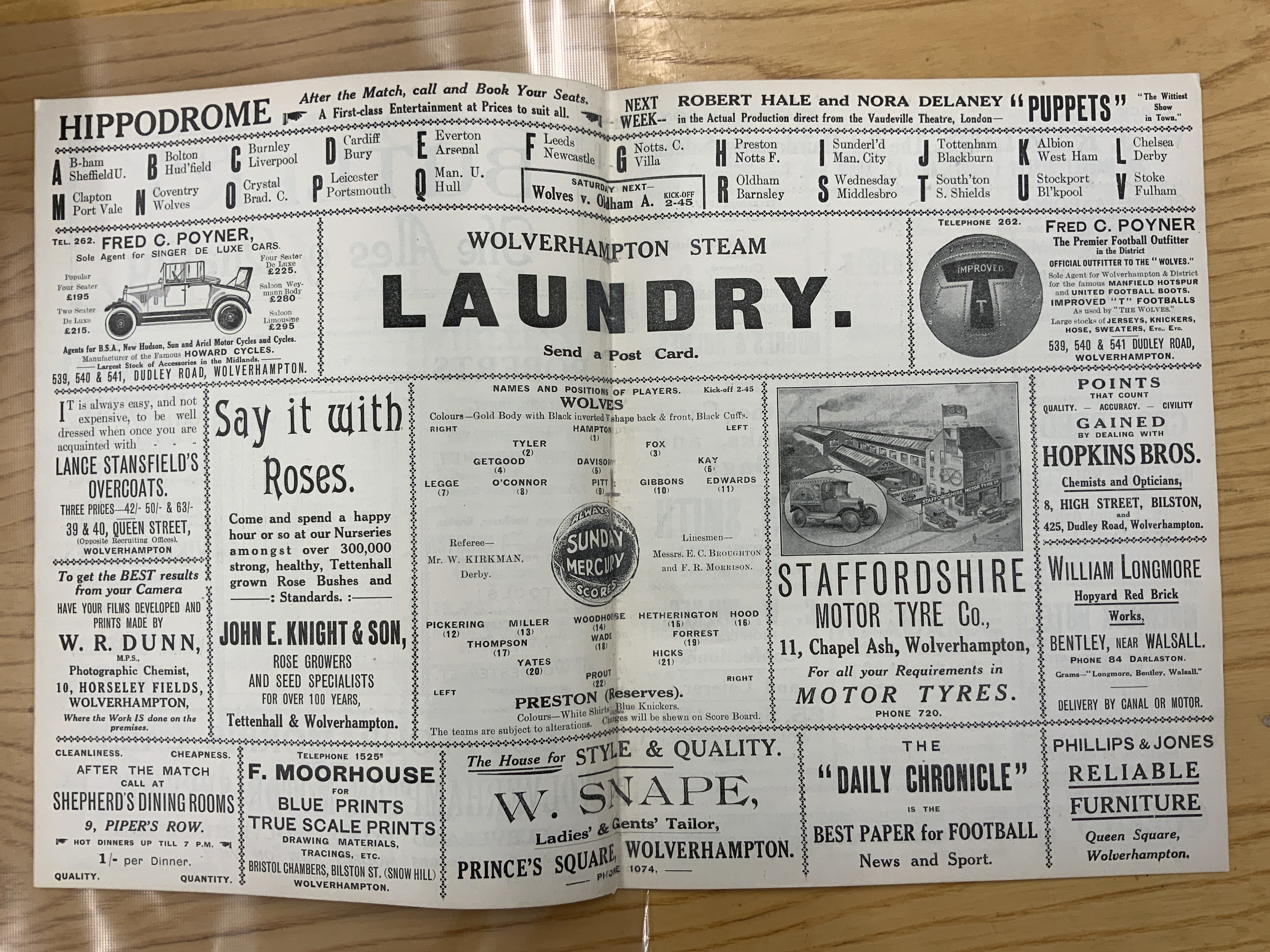 1924 - 1925 Wolves Reserves v Preston Central League Football Programme: Ex bound 100 years old excellent condition programme with no writing. Now an 8 pager due to covers being removed.