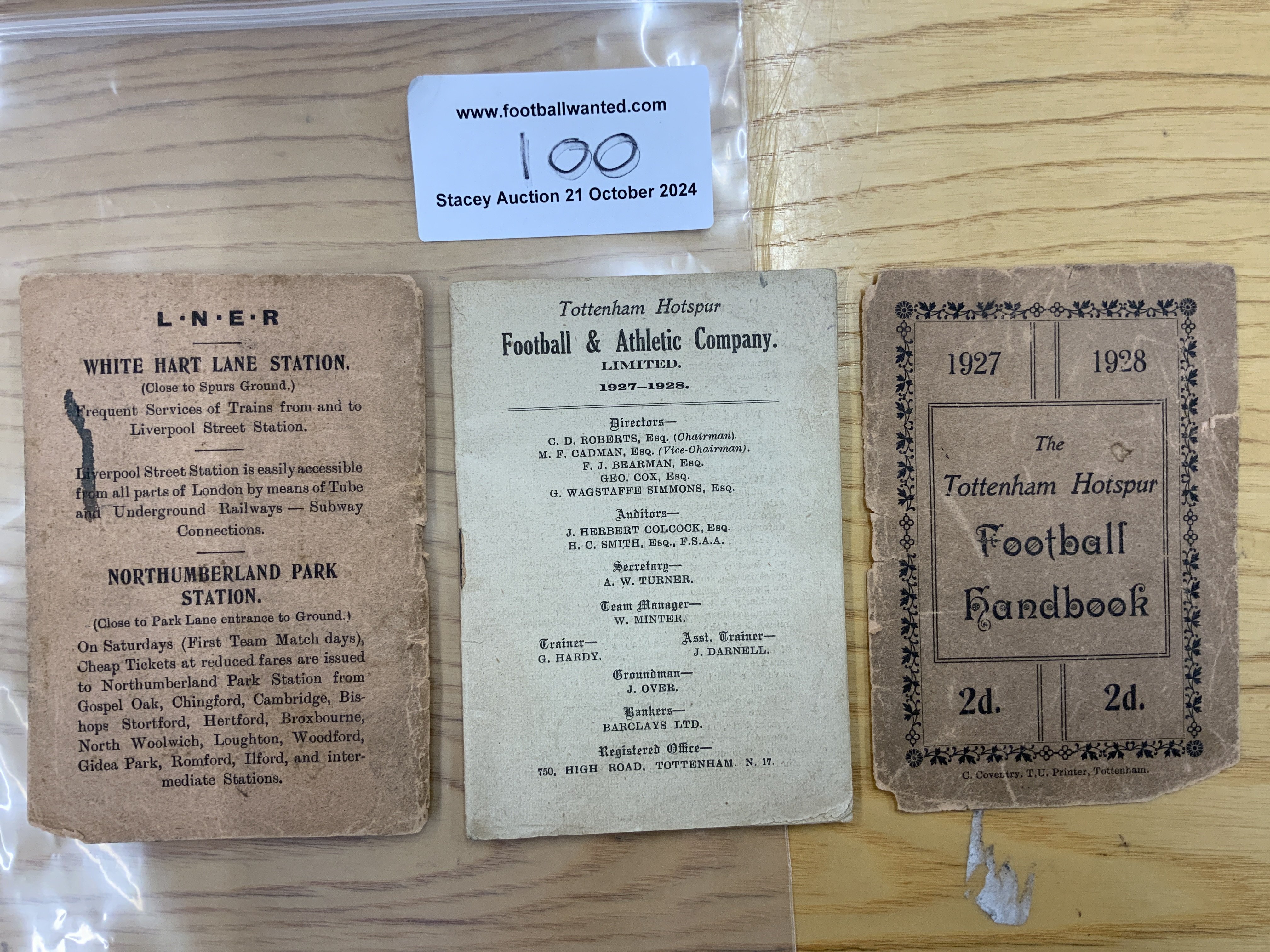 1927 - 1928 Tottenham Football Handbook: 54 page handbook is complete but has a completely split spine.
