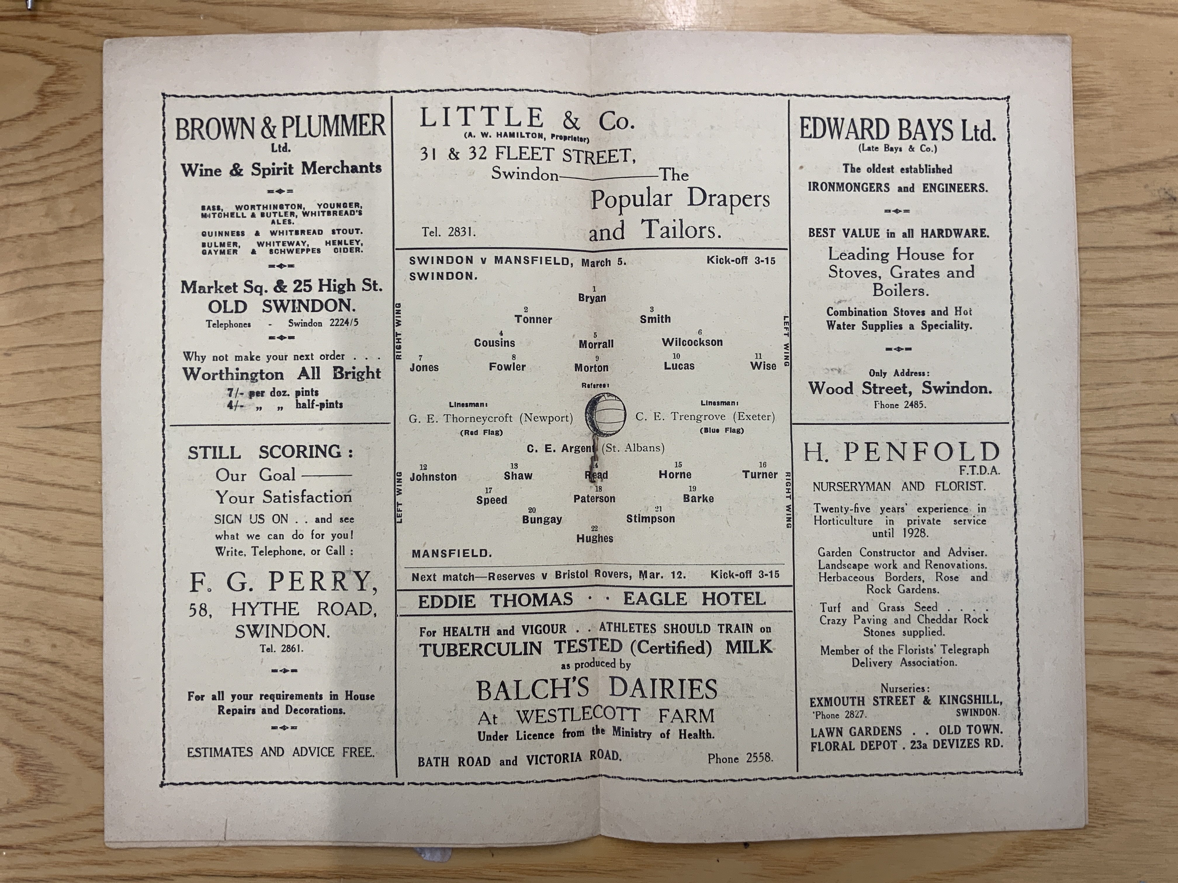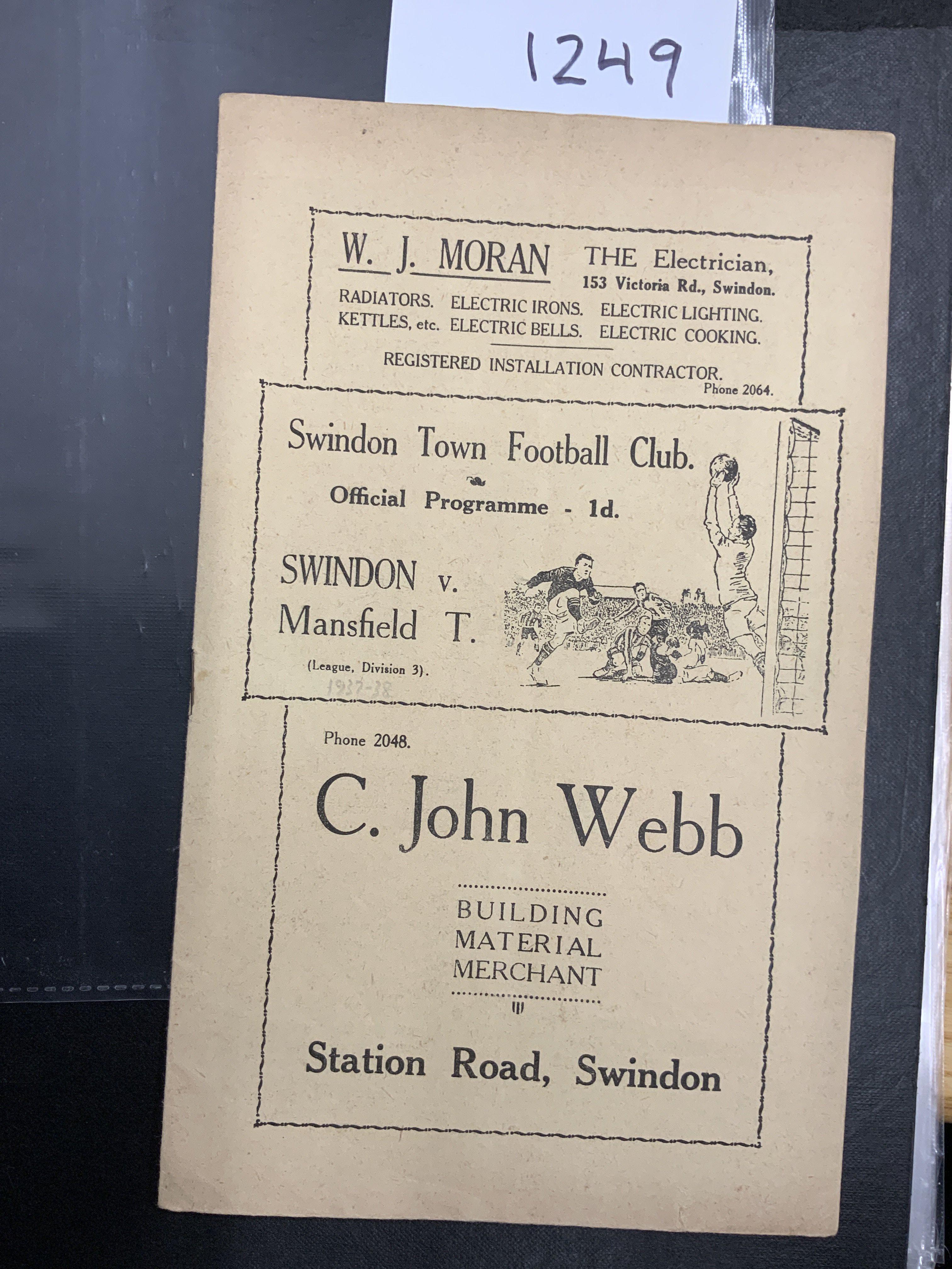 37/38 Swindon Town v Mansfield Football Programme: Excellent condition league division 3 match with no writing.