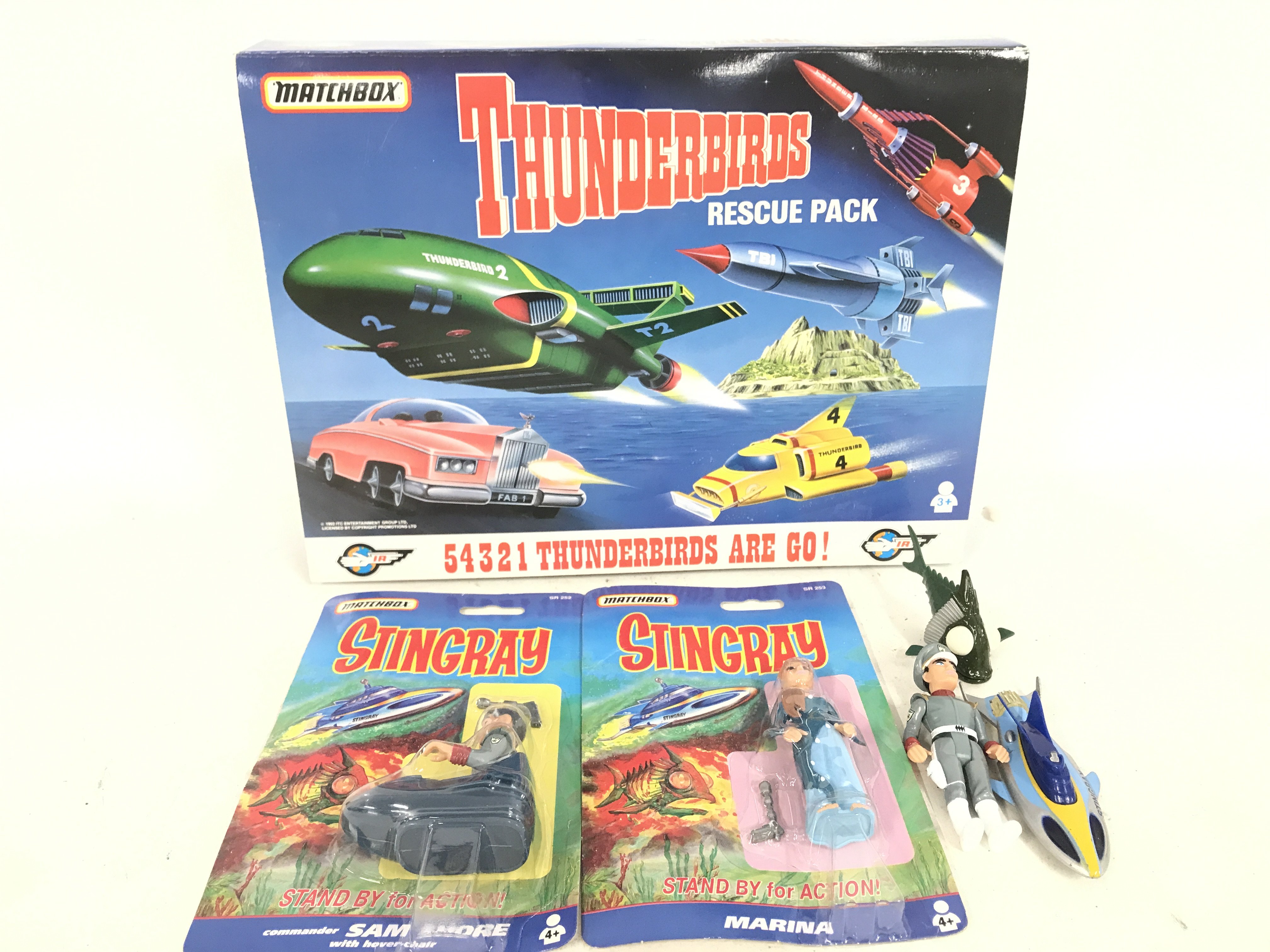 A Matchbox Thunderbirds Rescue Pack (#4 is missing) 2 Carded StingrayFigures and 3 Loose.