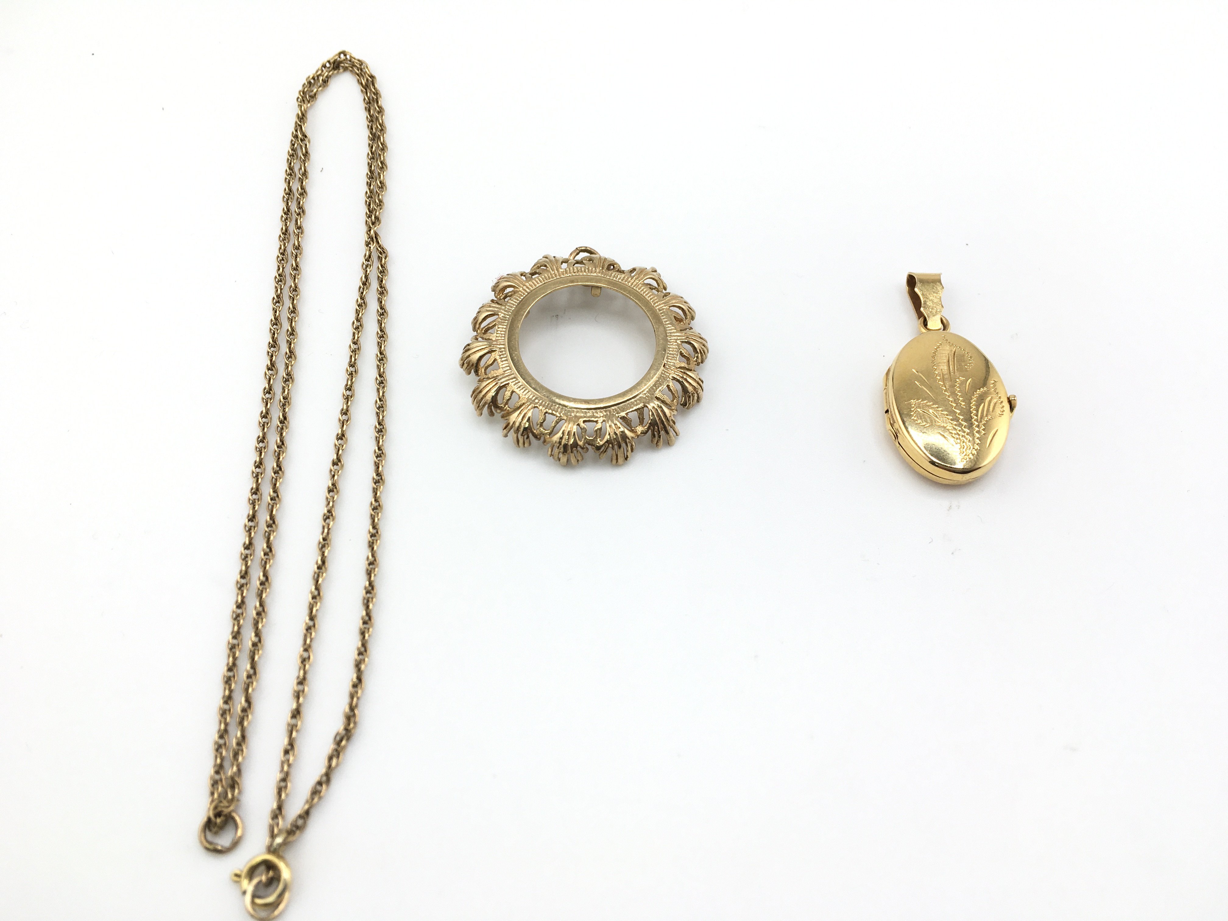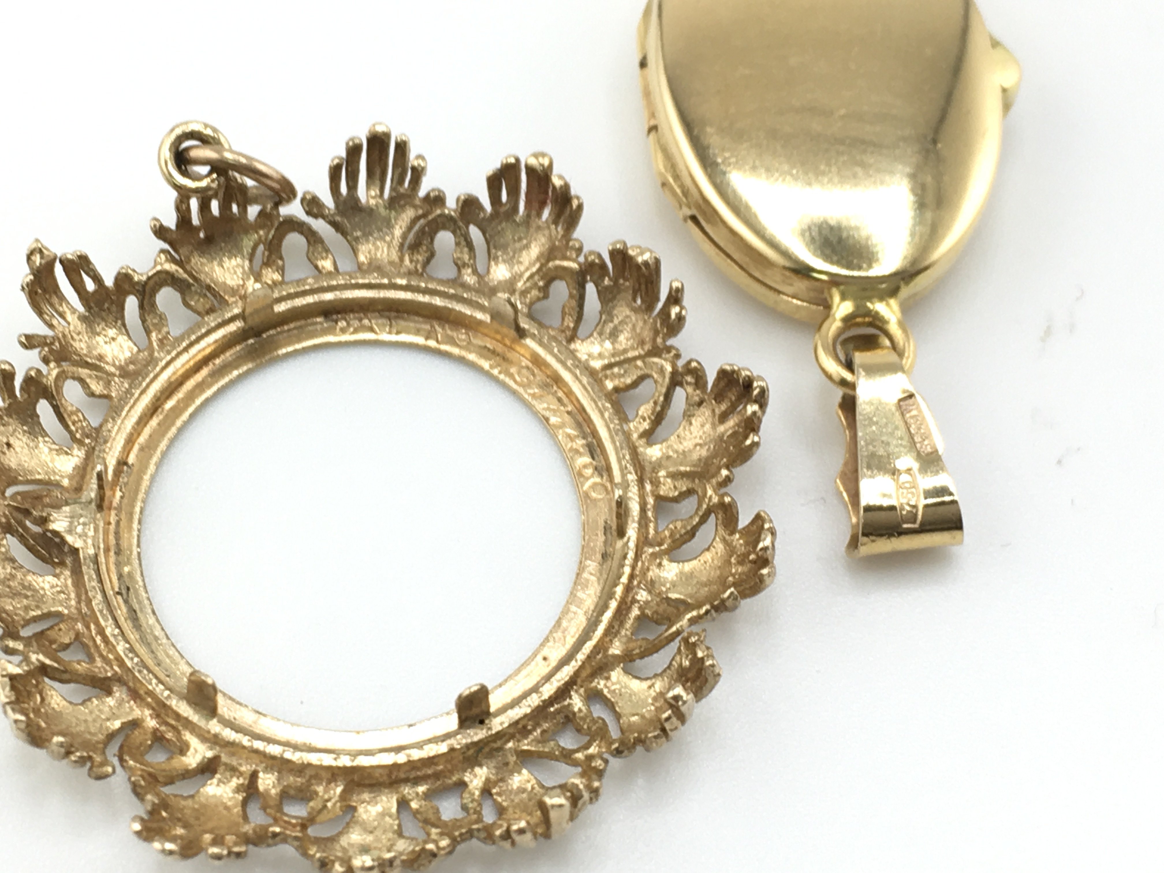 An 18ct gold locket 7g and a 9ct gold chain and sovereign mount 9.73g Postage A