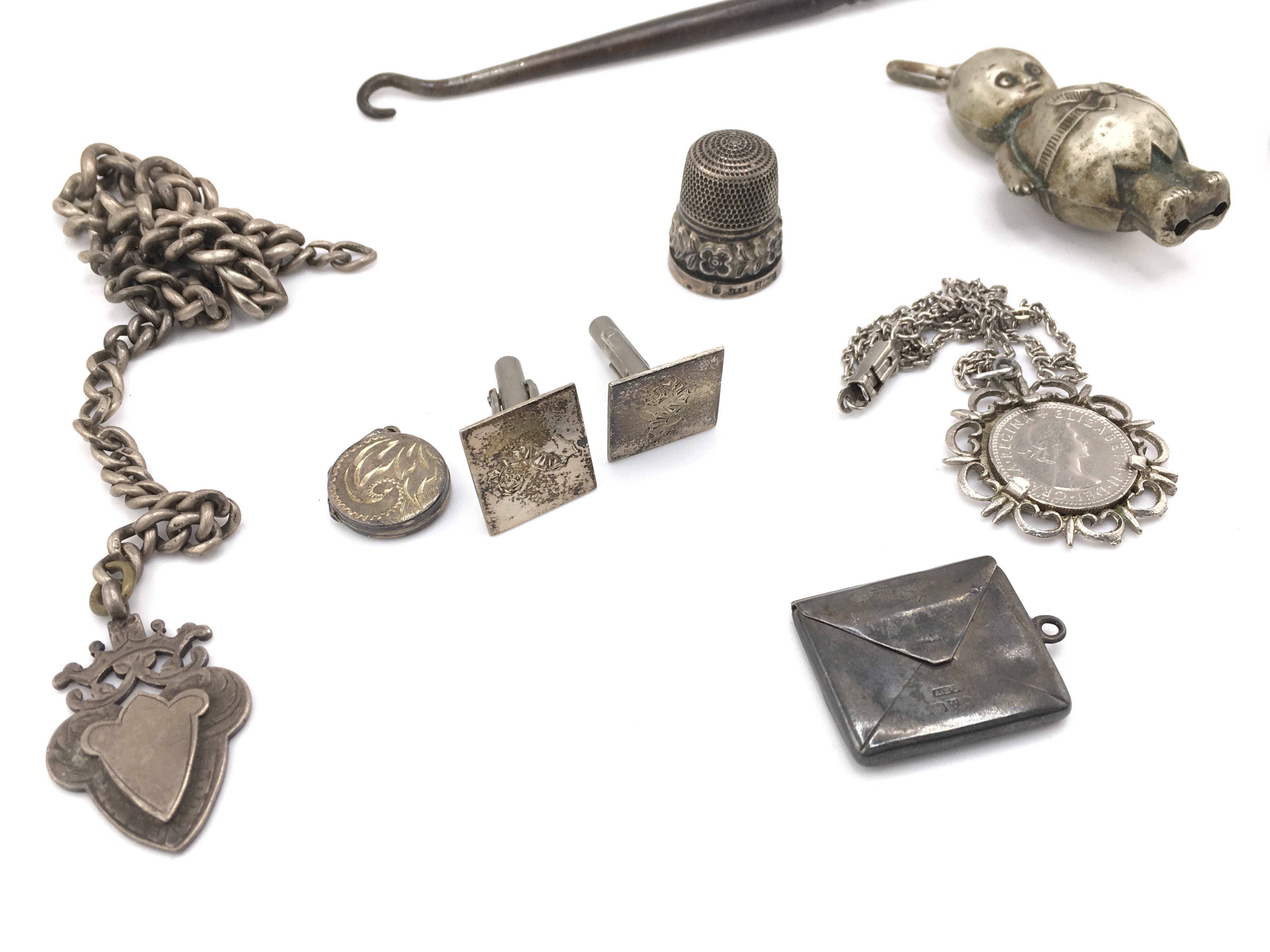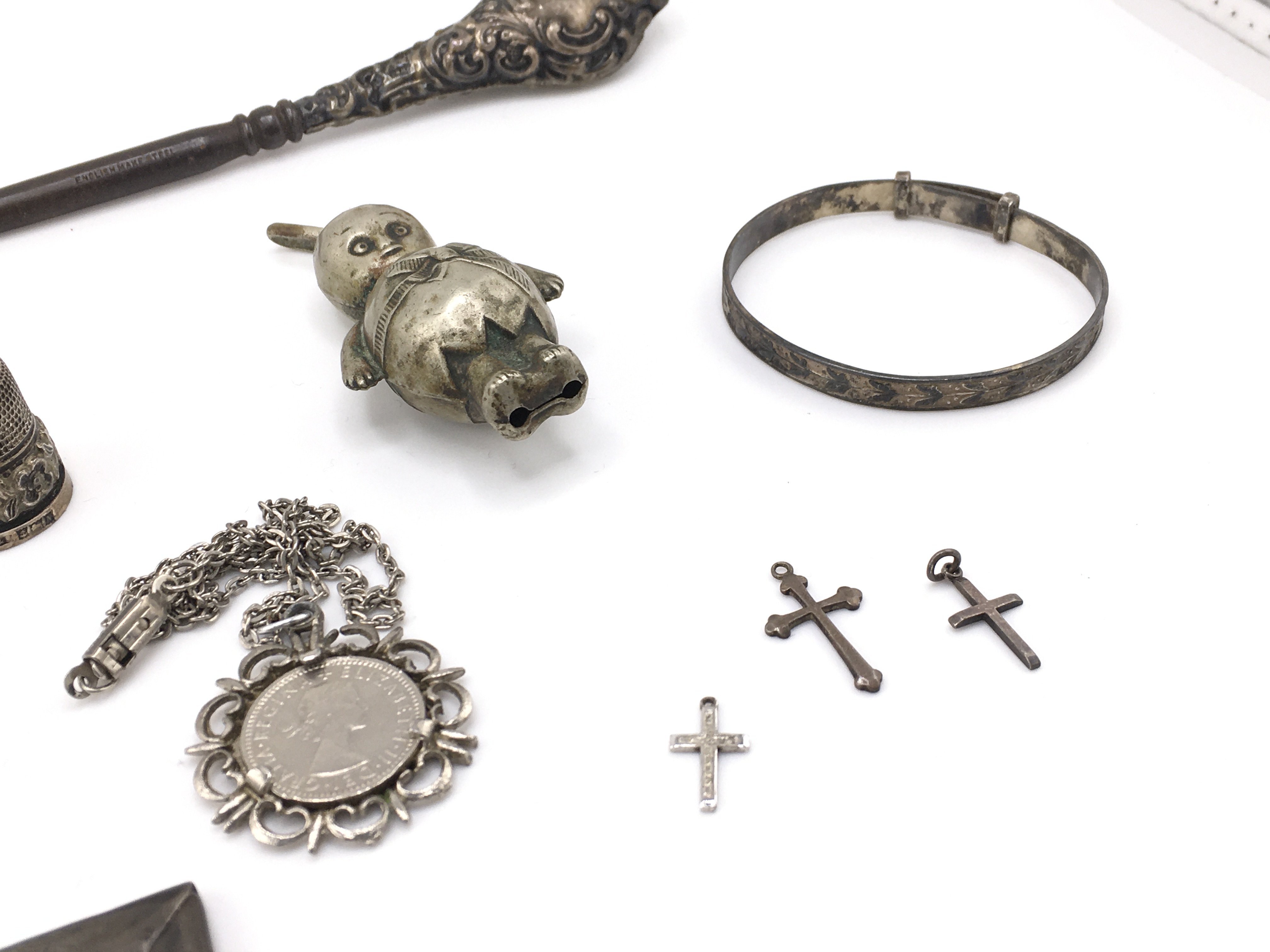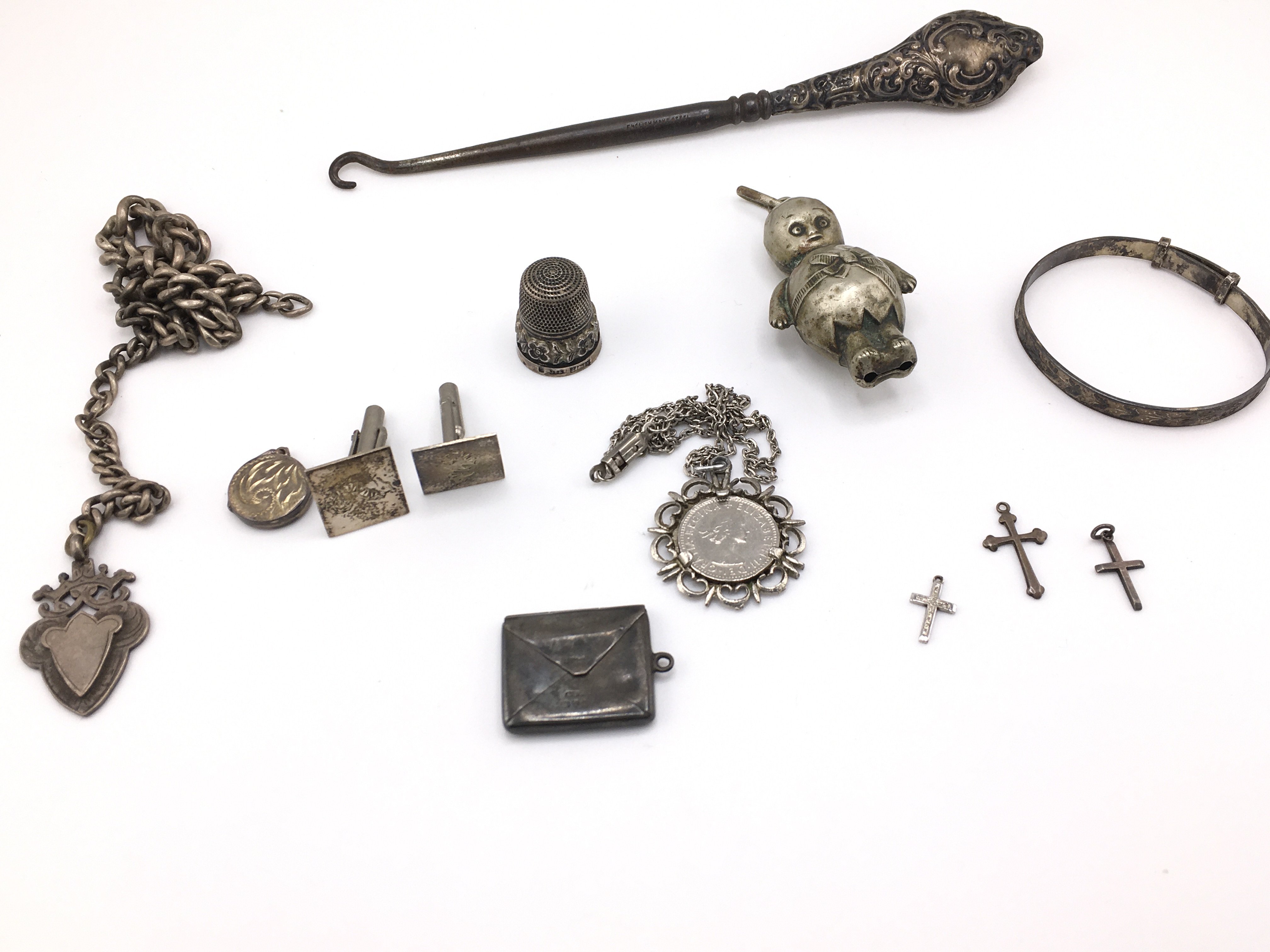 A collection of assorted silver items including cross pendants a charm etc. Postage B