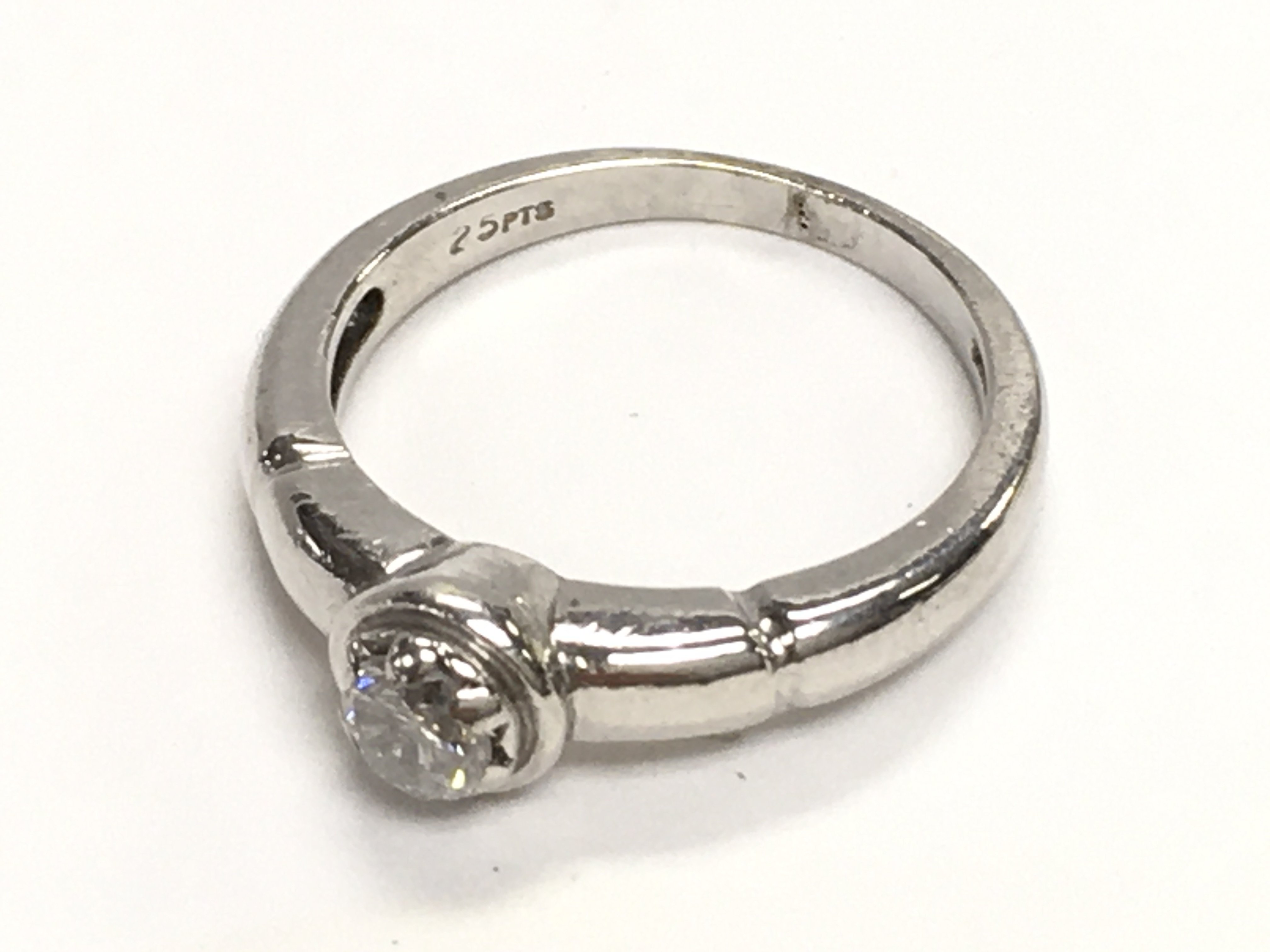 9ct white gold 0.25ct diamond solitaire diamond ring. Approx ring size K/L. Postage category A.