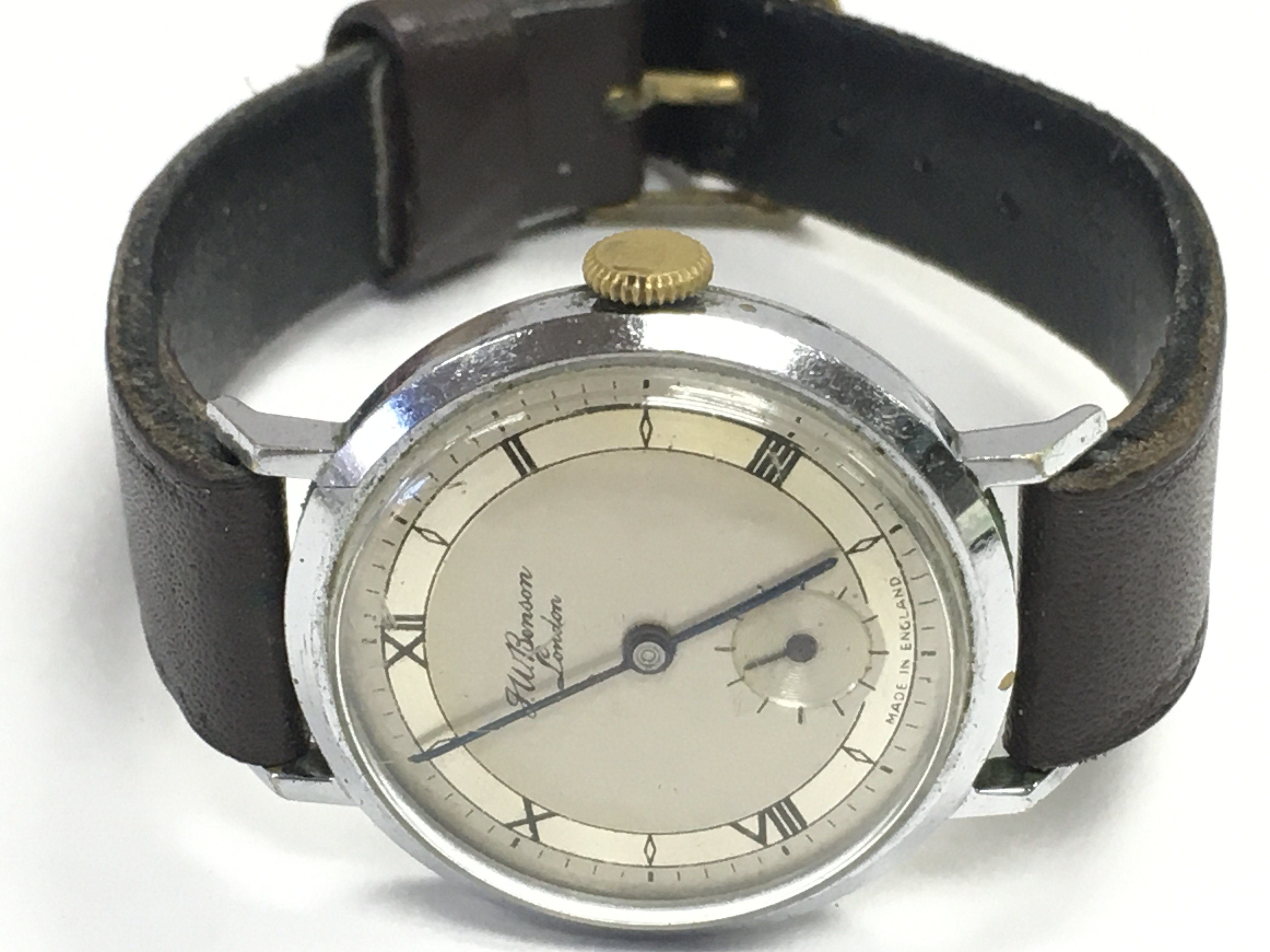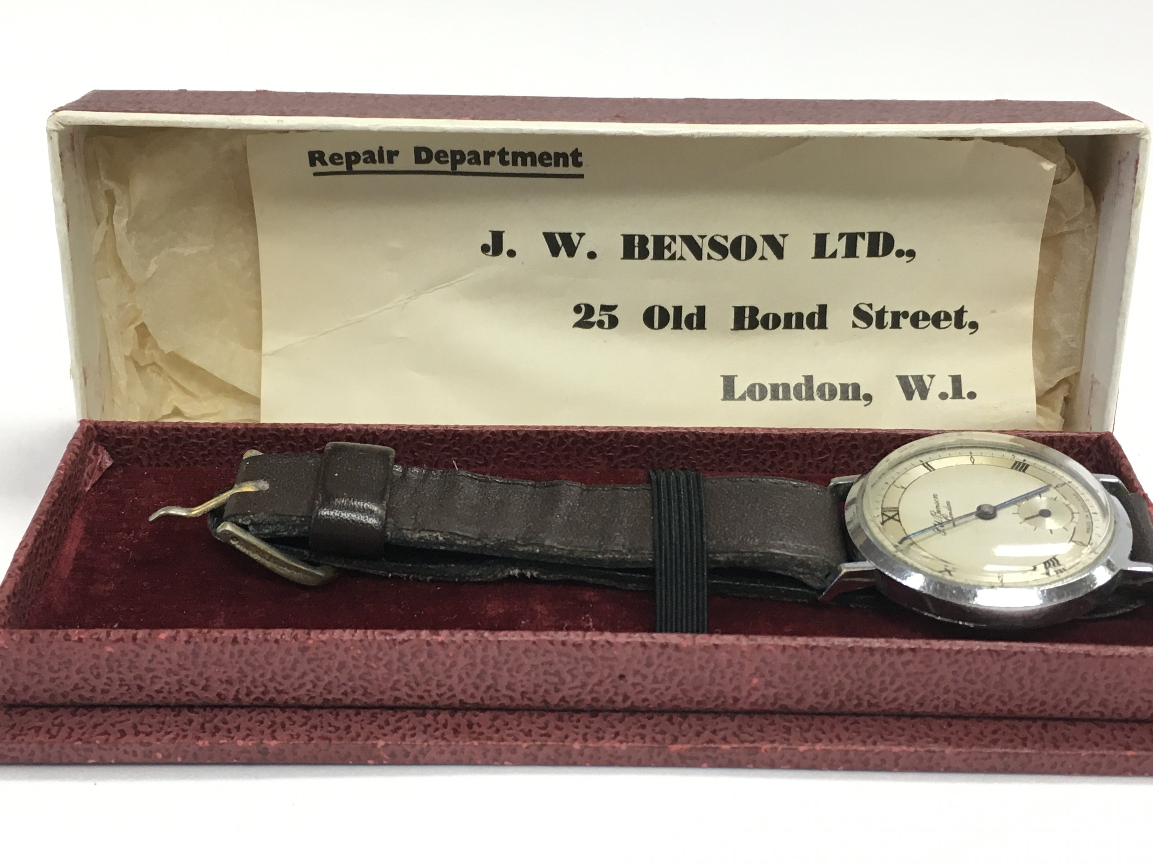 A boxed gents J.W. Benson wristwatch, seen working. Postage category A
