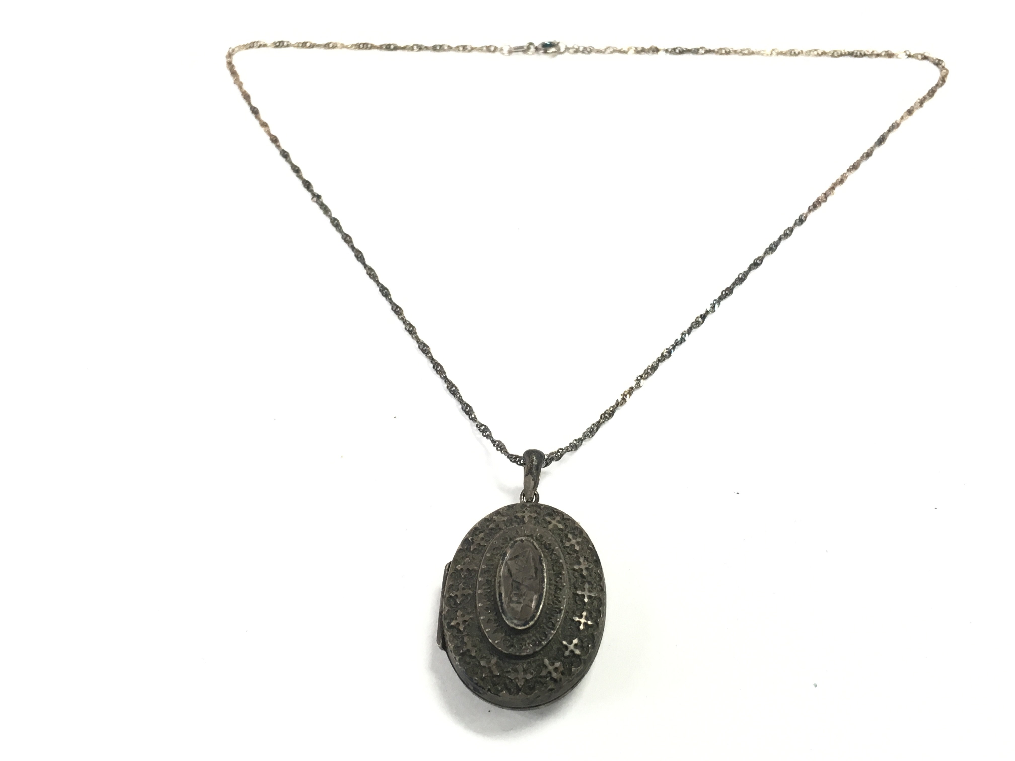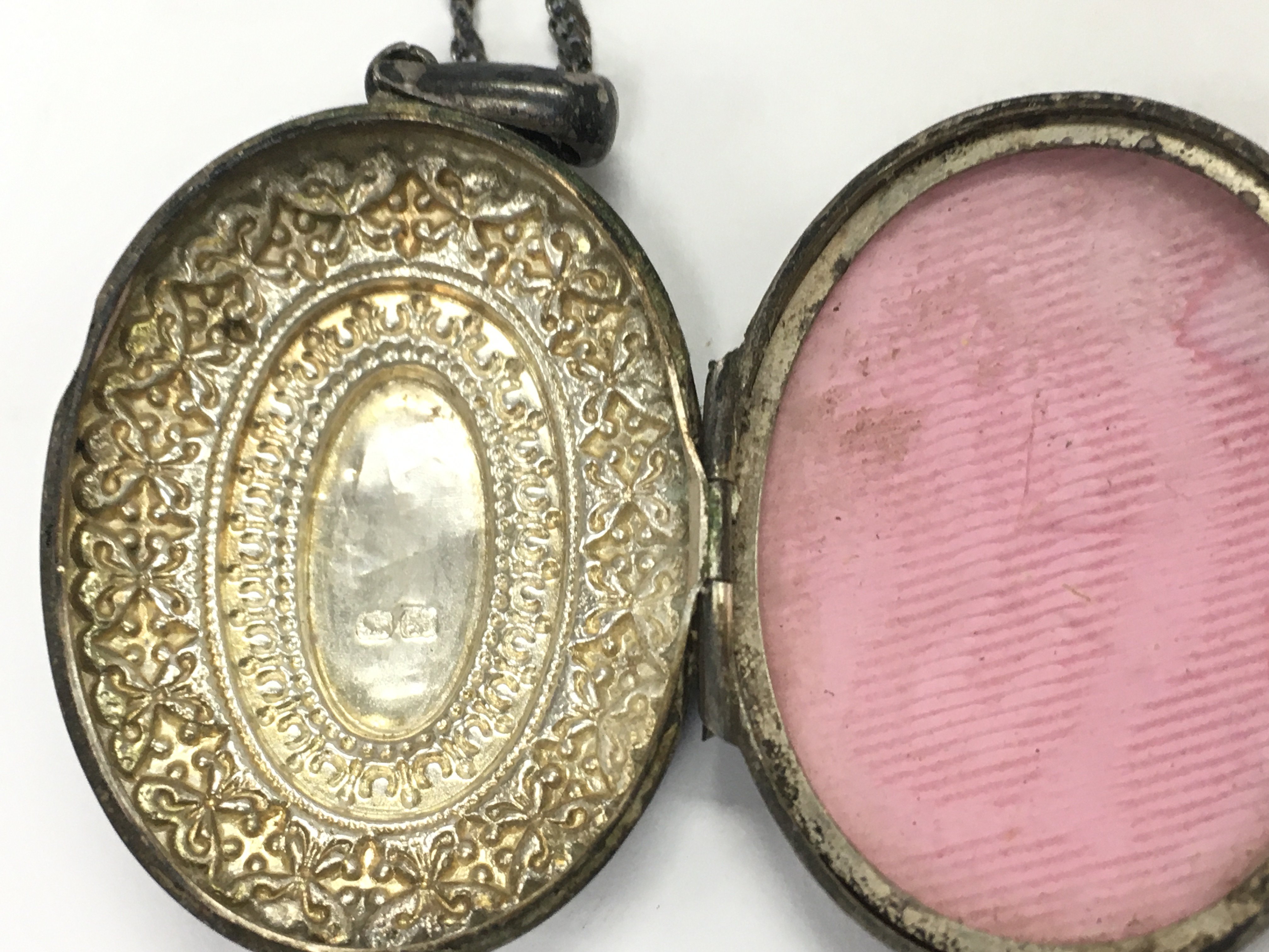 A silver Birmingham hallmarked locket & chain, postage category A