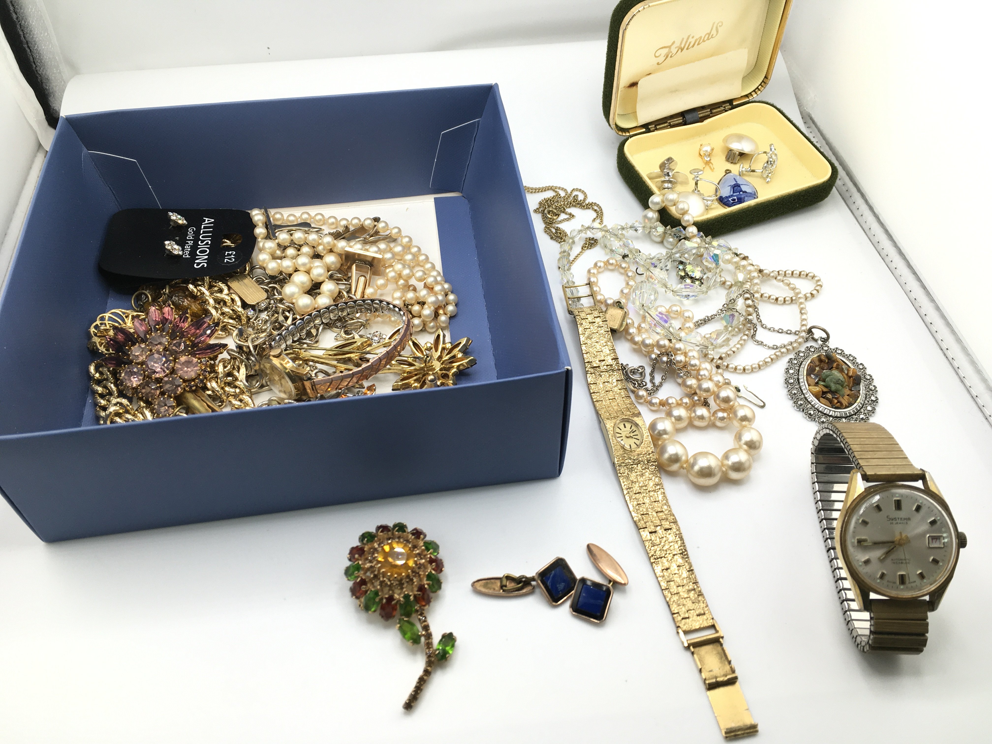 A collection of assorted costume jewellery and watches. Postage B