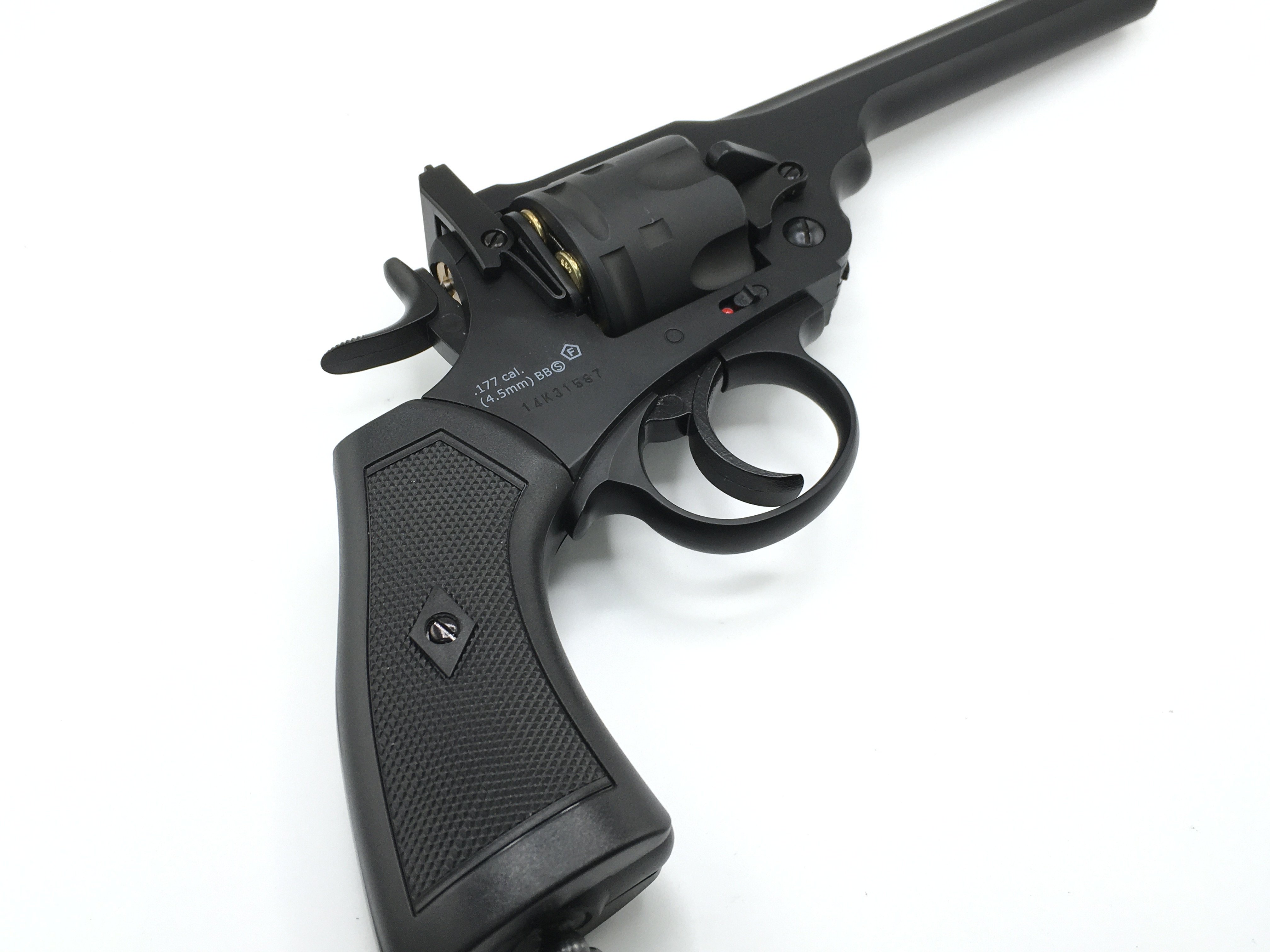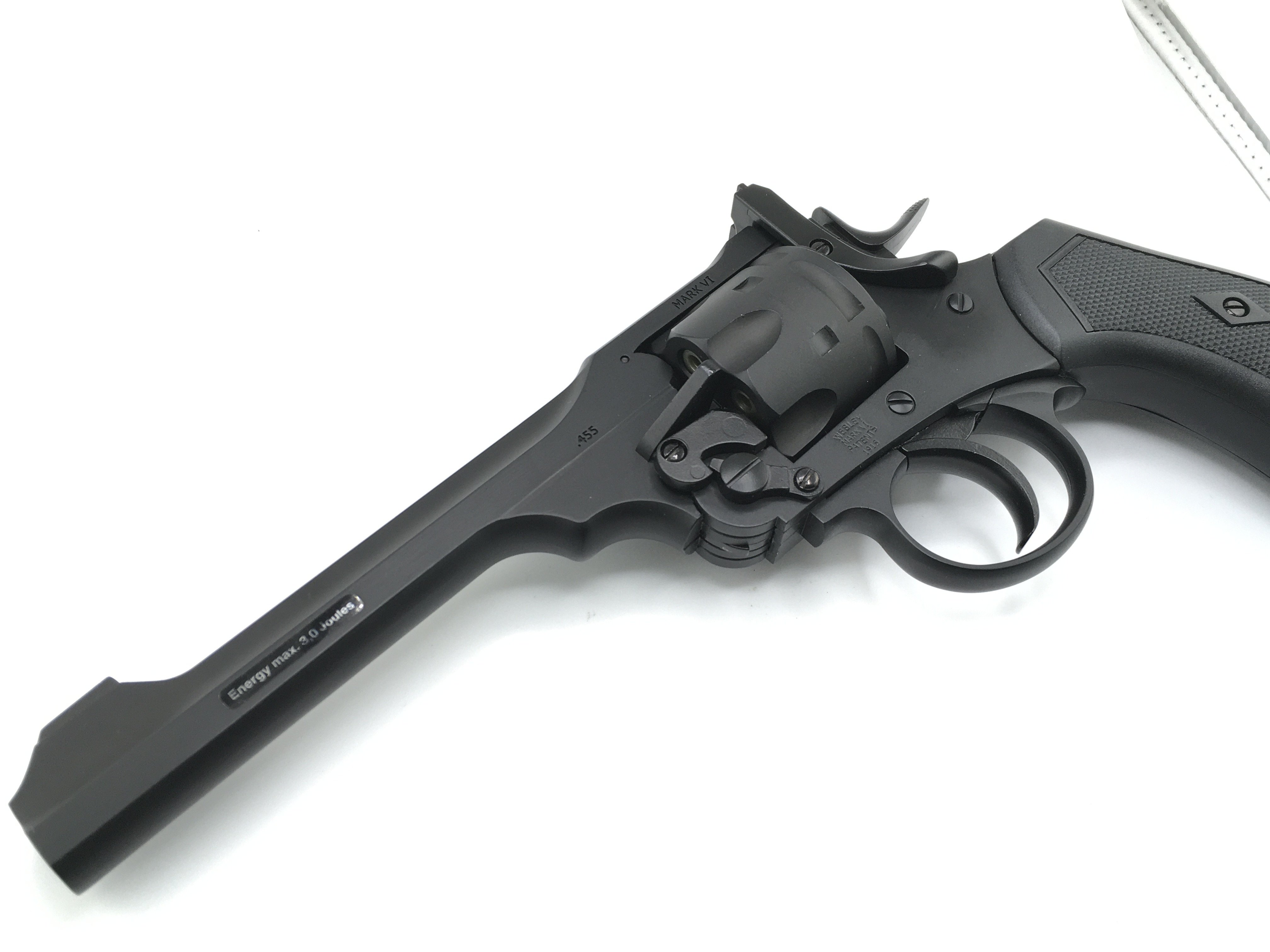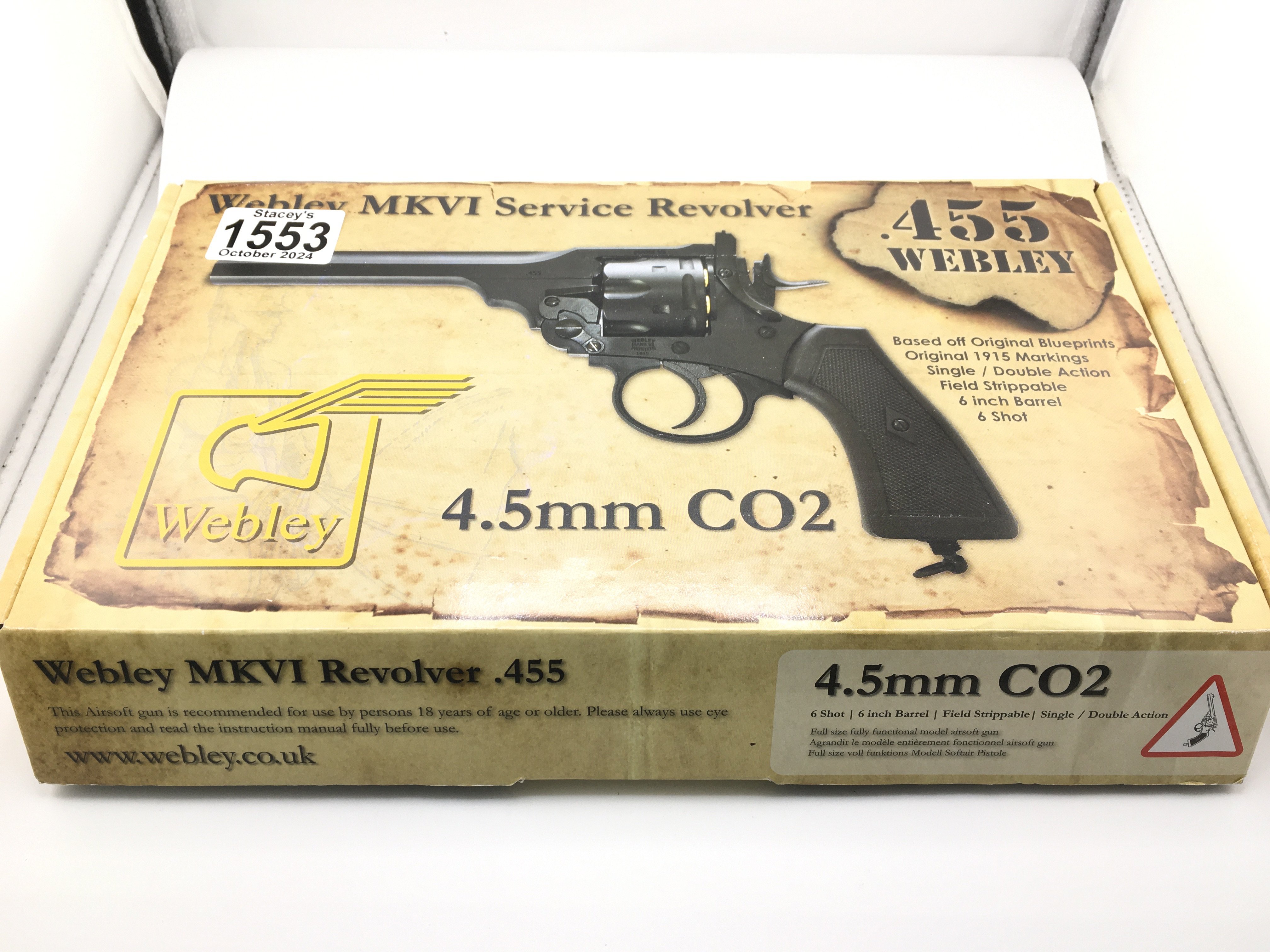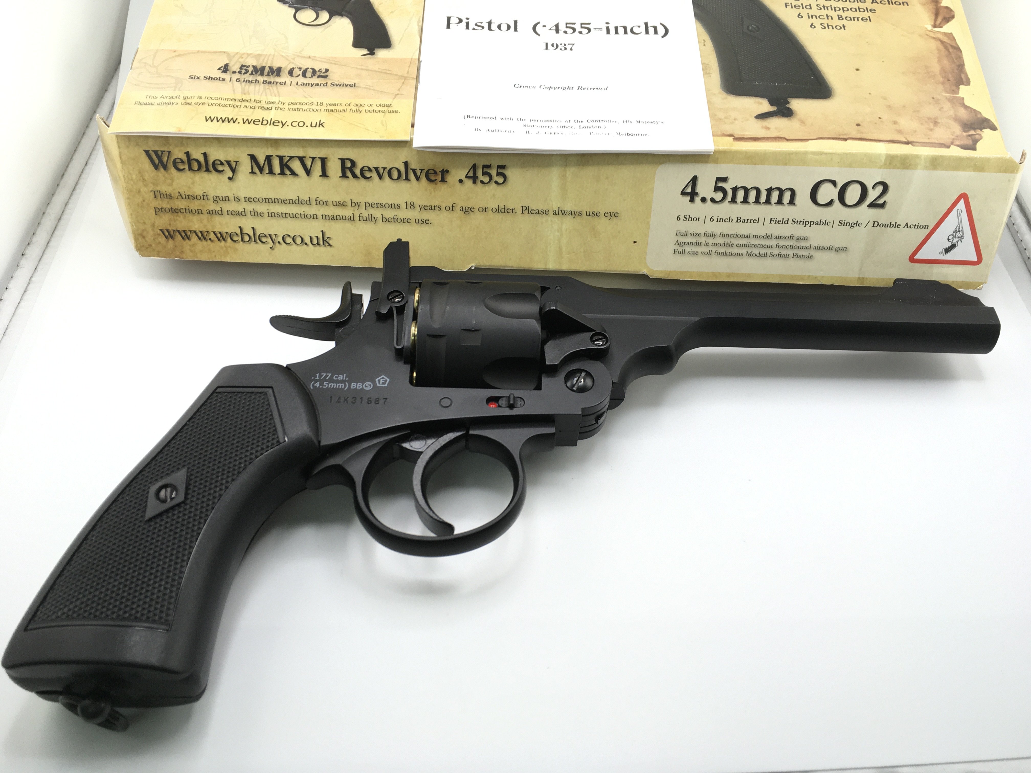 A Webley CO2 air pistol MKVI service revolver.455 with box and paperwork. (no firearms licence required)