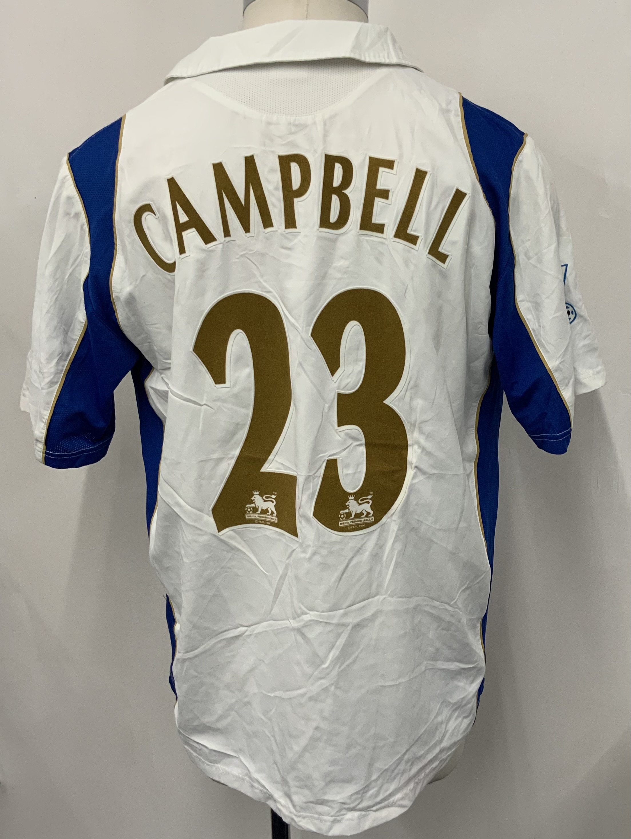 Campbell Portsmouth 2006 - 2007 Match Worn Football Shirt: White short sleeve with Campbell number 23 to rear. Premier League badging to sleeves. Swapped with Bobby Zamora. Unwashed.