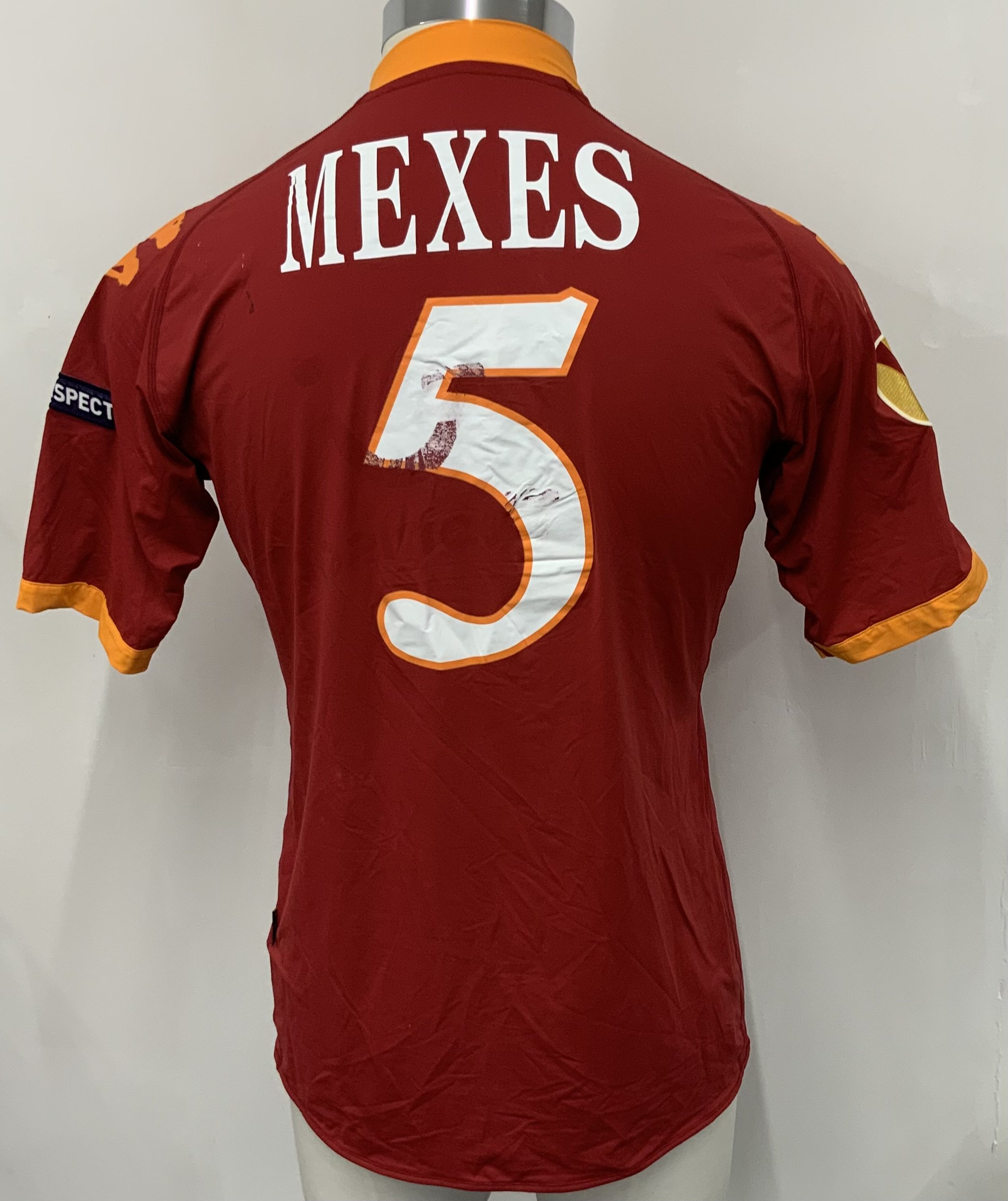 Mexes Roma 2009 - 20010 Match Worn Football Shirt: Red short sleeve with Mexes number 5 to rear. Europa League badging to sleeves. Swapped with Bobby Zamora. Unwashed. Worn v Fulham in the Europa League match in Roma which Roma won 2-1.