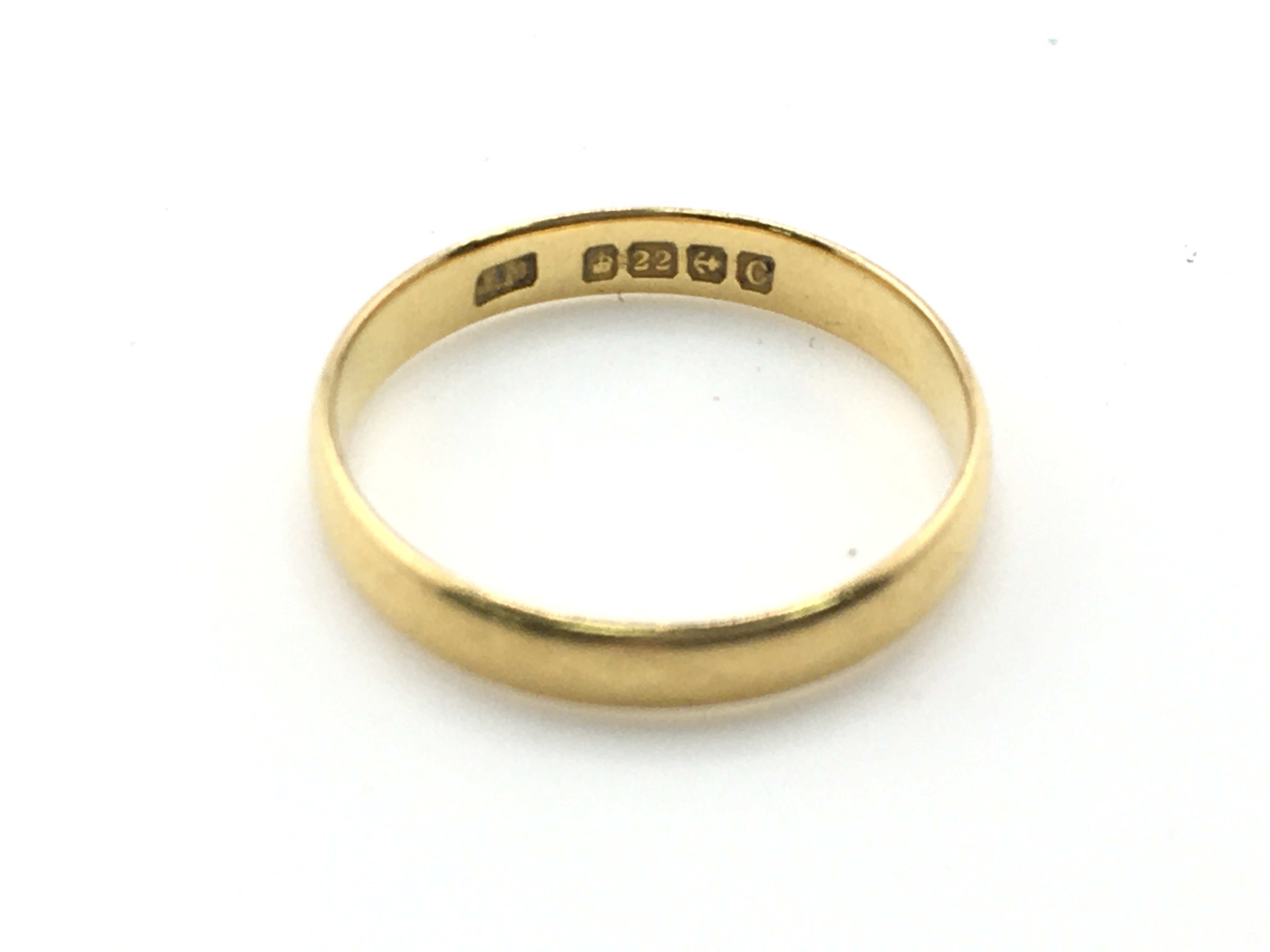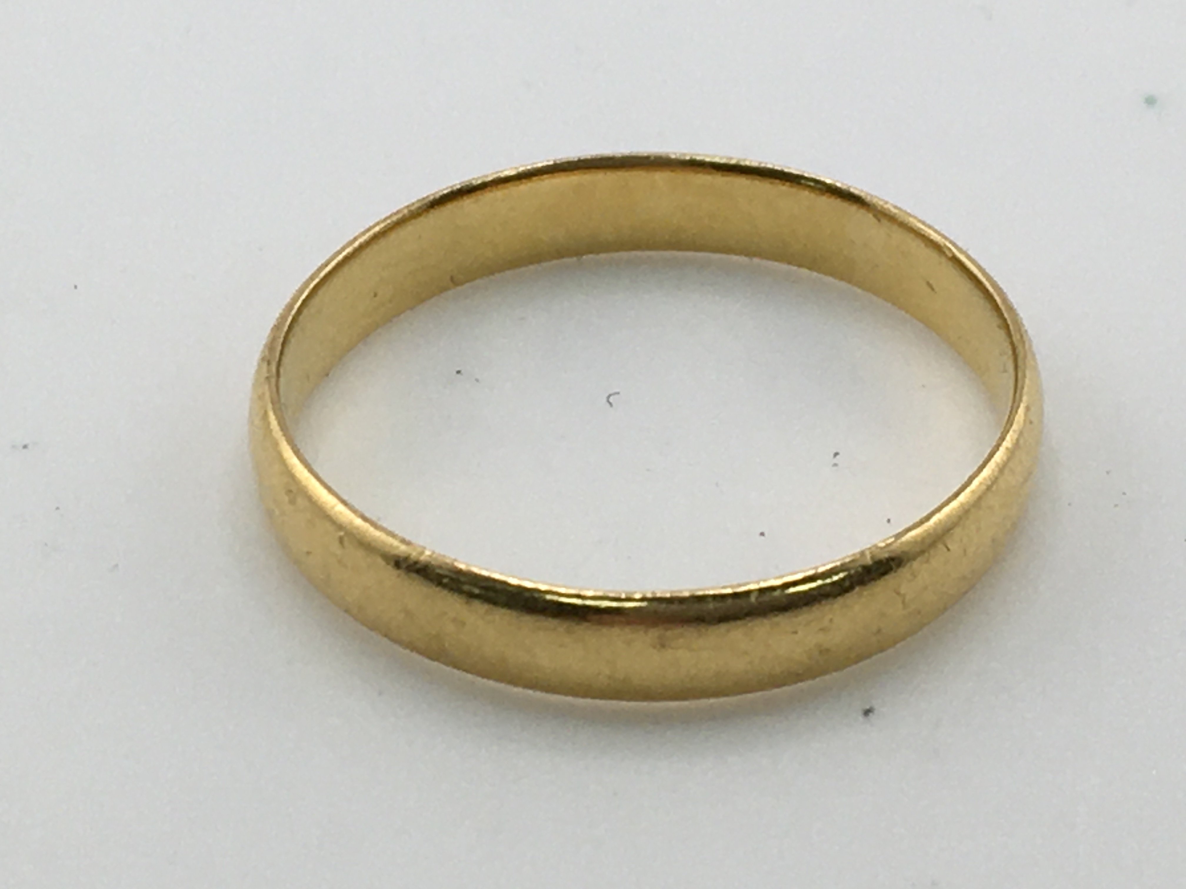 A 22ct gold band weight 2.35g and size O. Postage A
