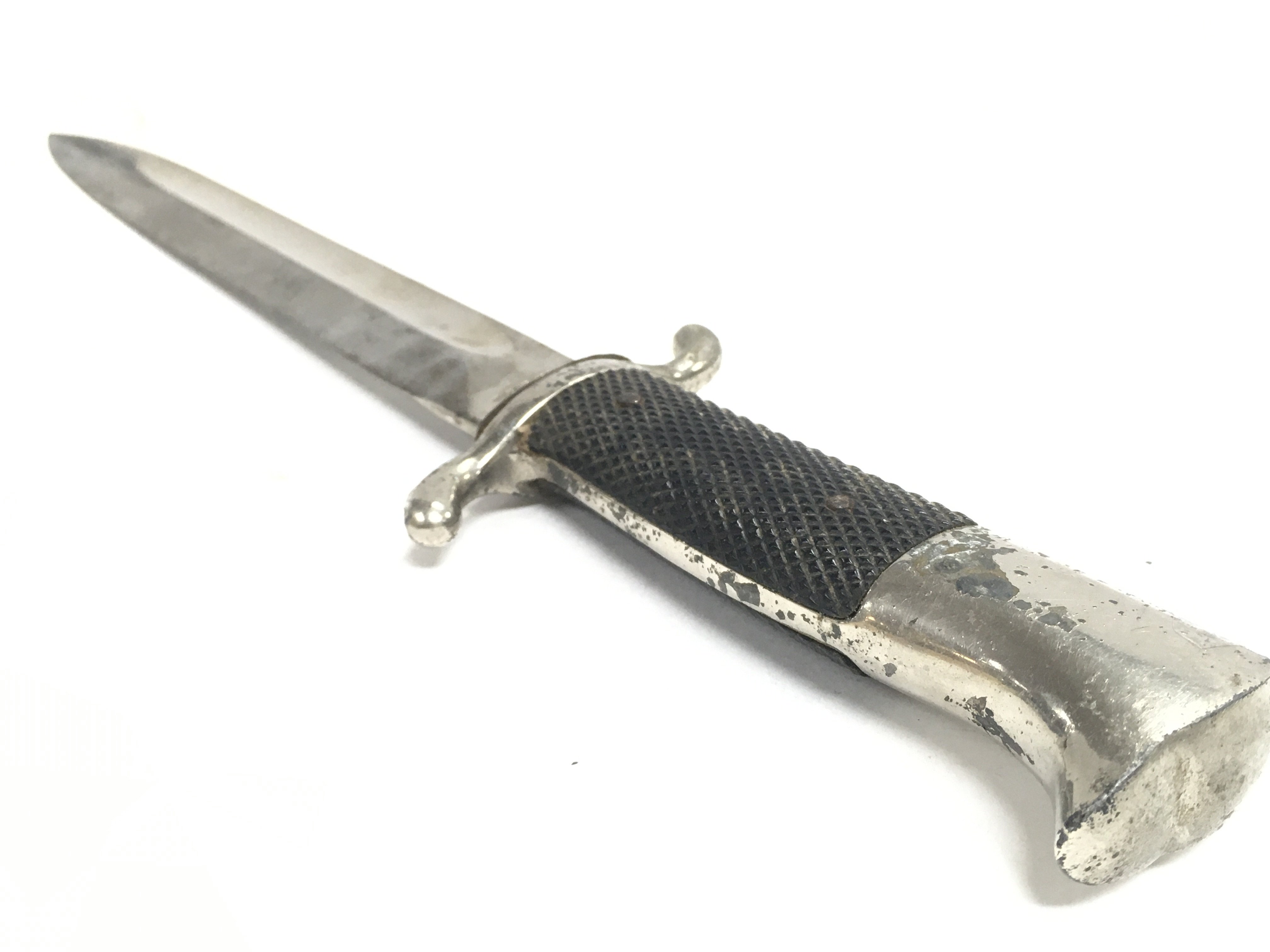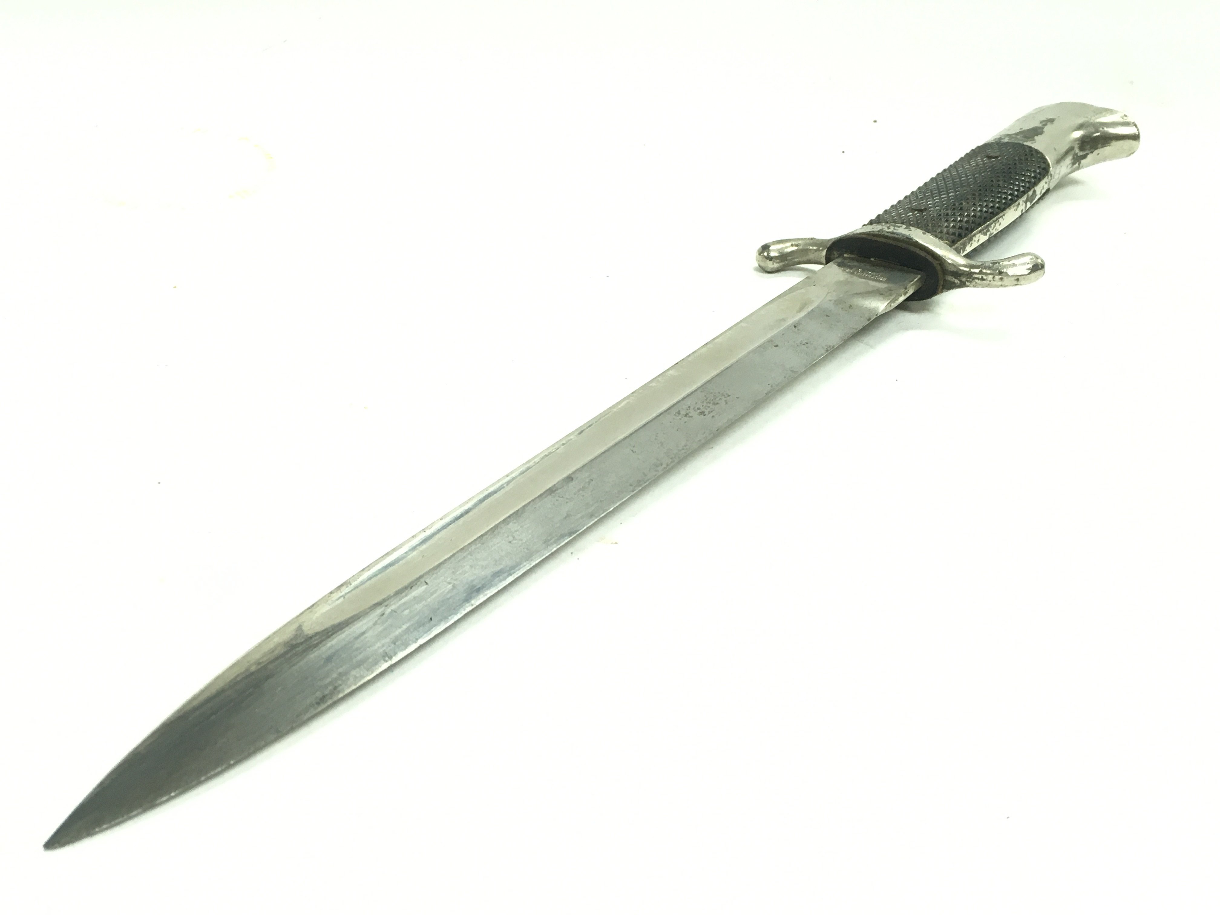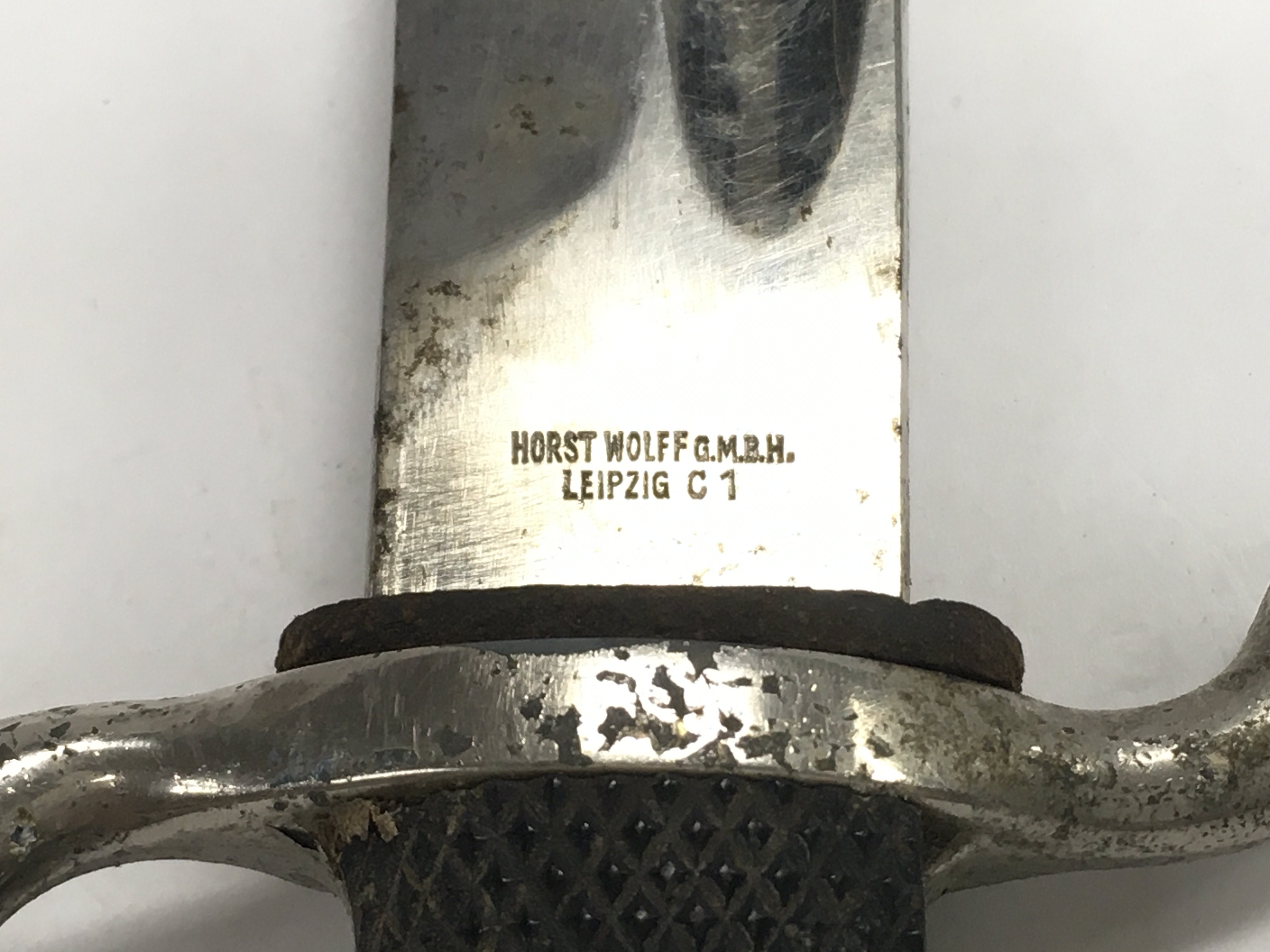 WW2 German dagger by Horst Wolf, Leipzig with fullered blade and steel sheath. Blade 24.5cm, total dagger length 37.5cm Approx . From the estate of a WW1/2 collector