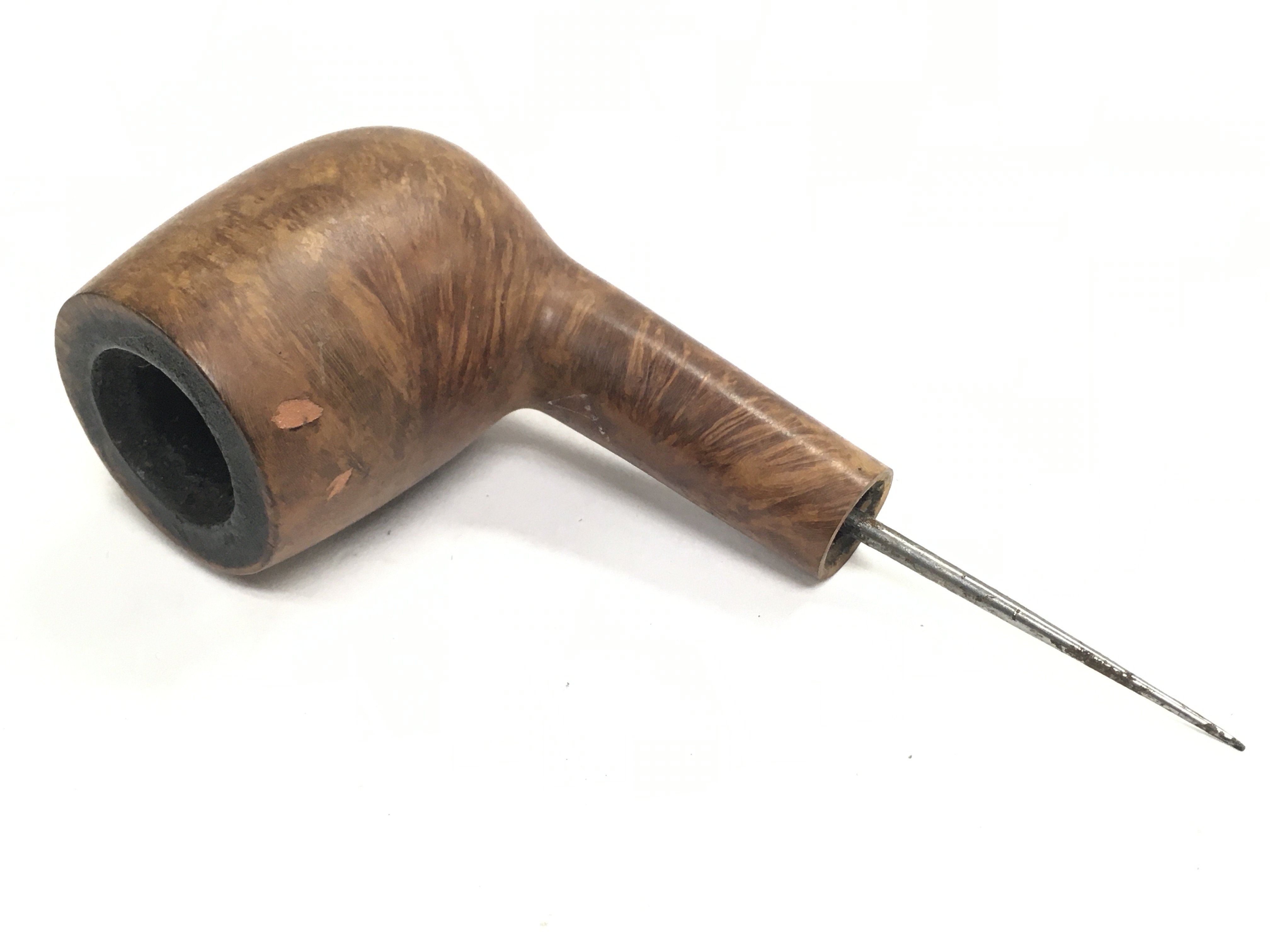 A good condition vintage post war, presumed retrospective copy of a SOE/MI6 knife pipe. Marked Virgin Copenhagen on the body. Mouth piece pulls off to reveal 4cm blade