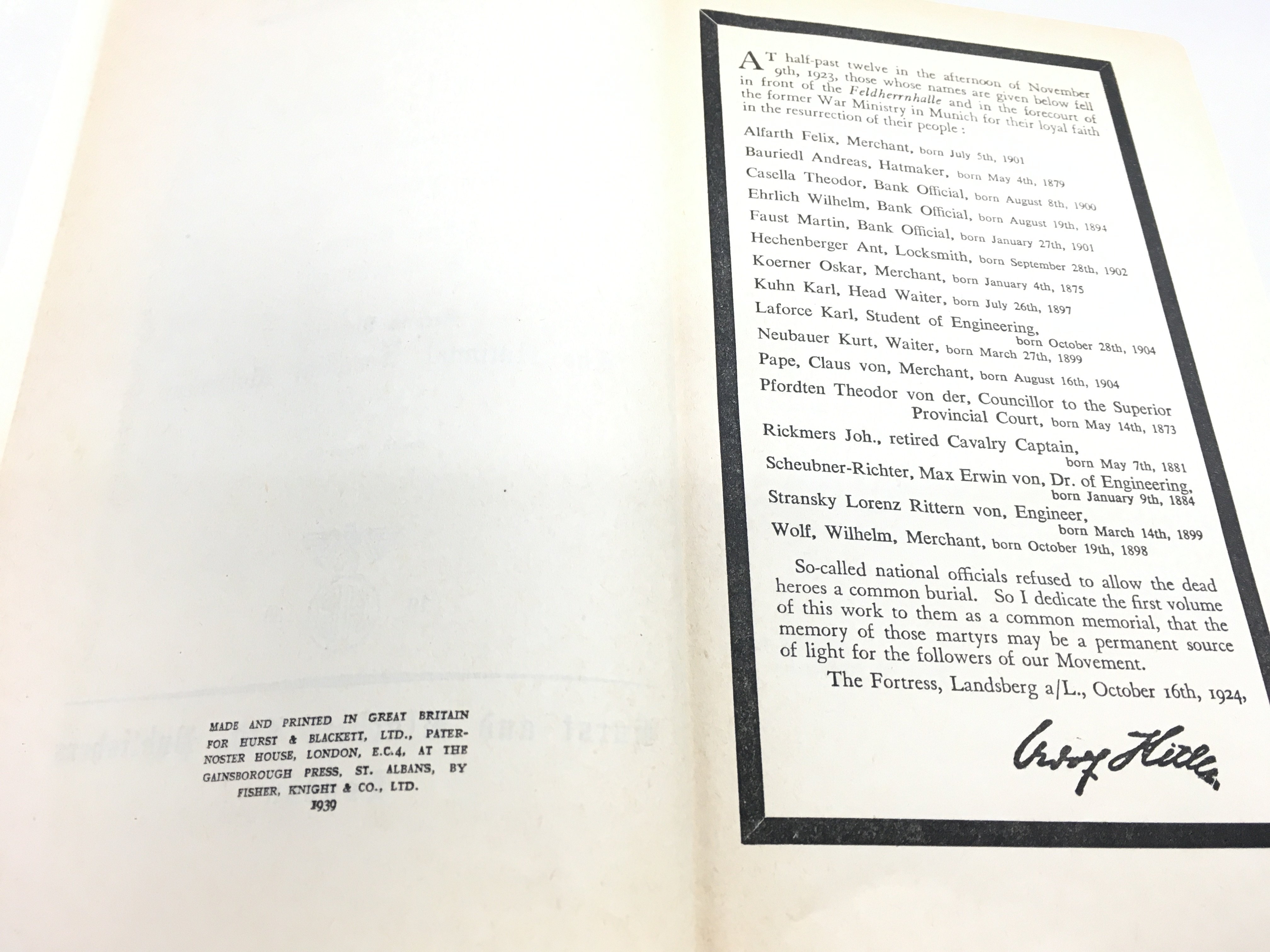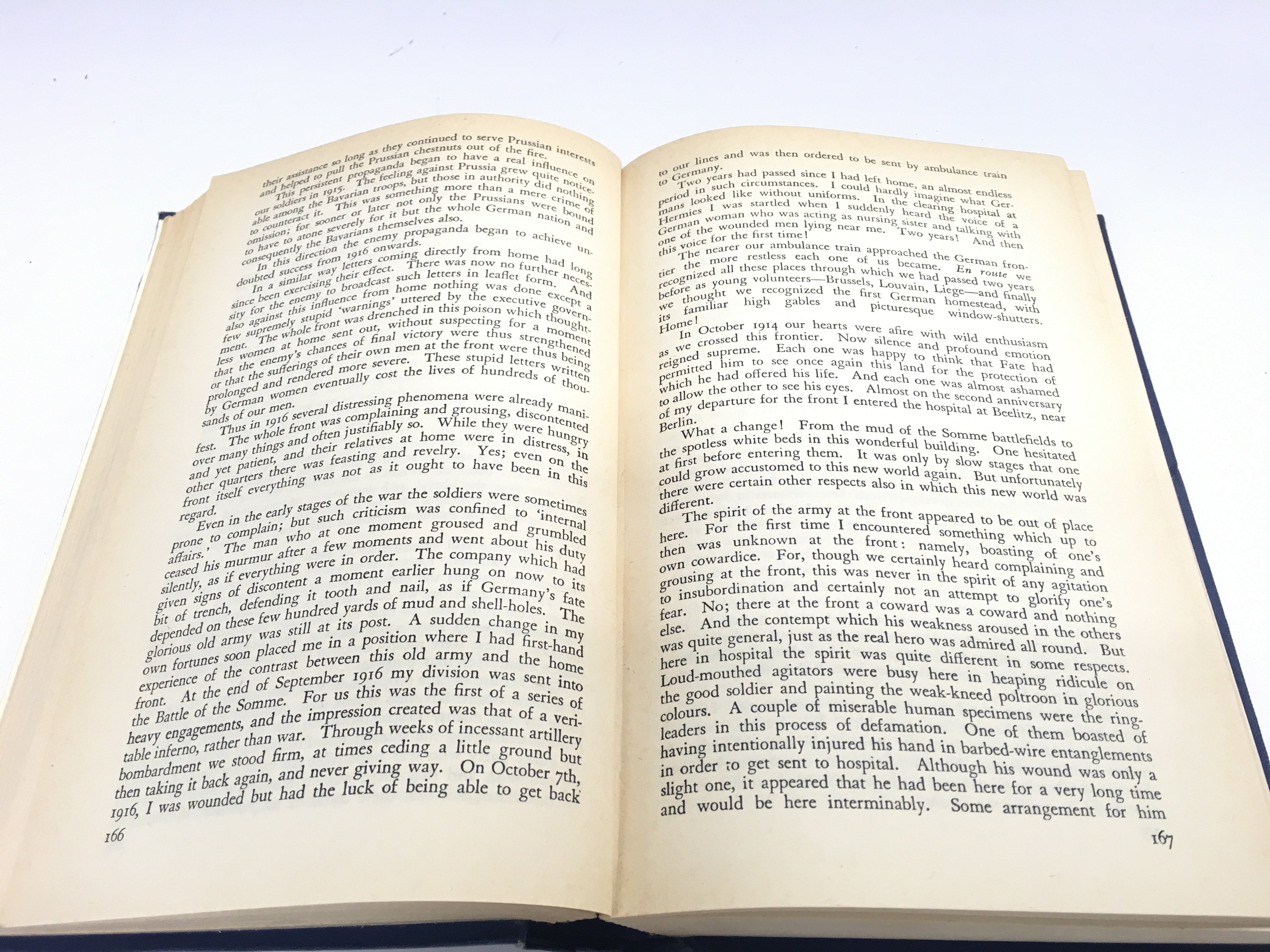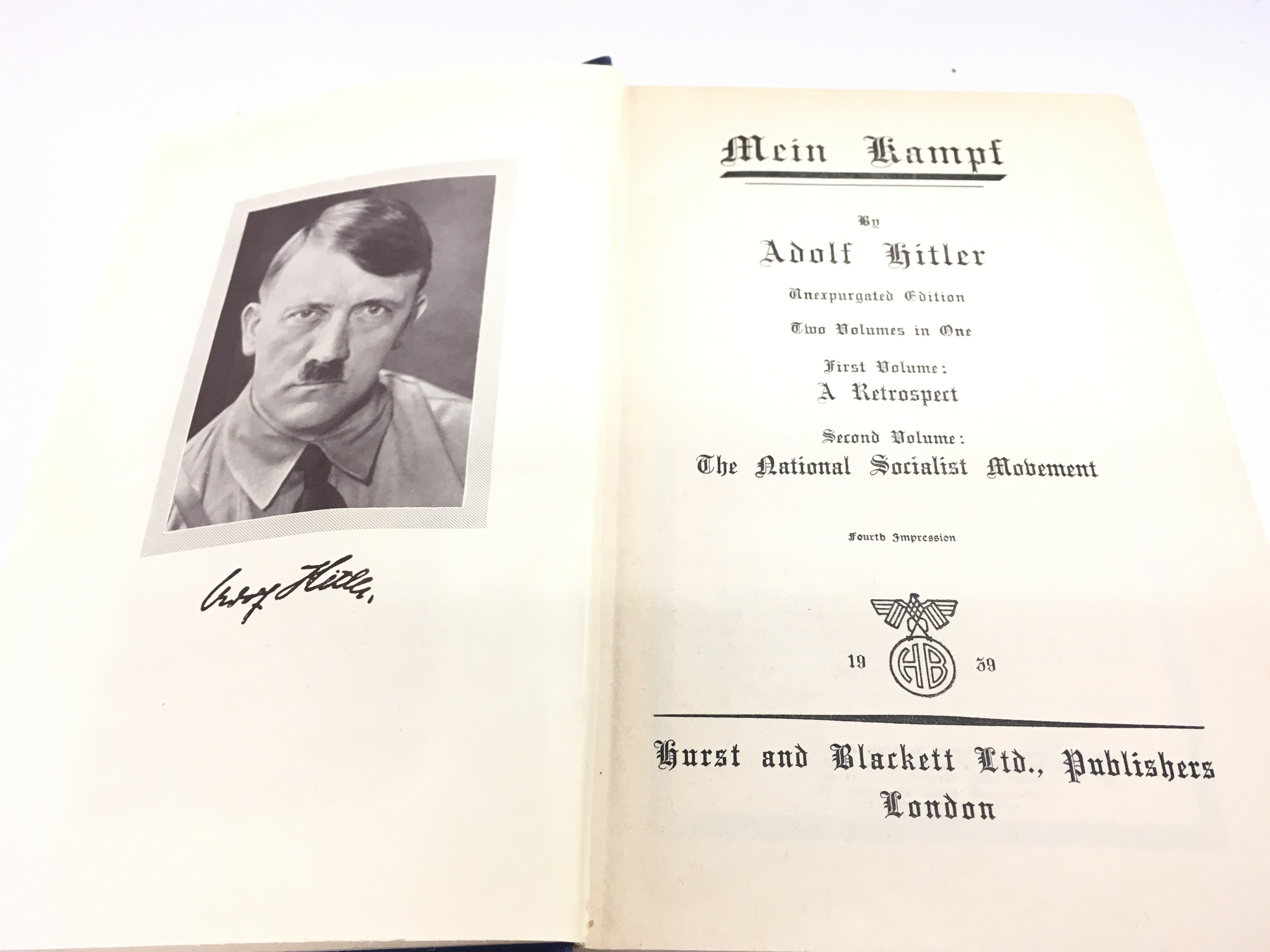 A cloth bound 4th impression Mein Kampf by Adolf Hitler. Translated into English by James Murphy, 1939 unexpurgated edition. Two volumes in one. Postage category B