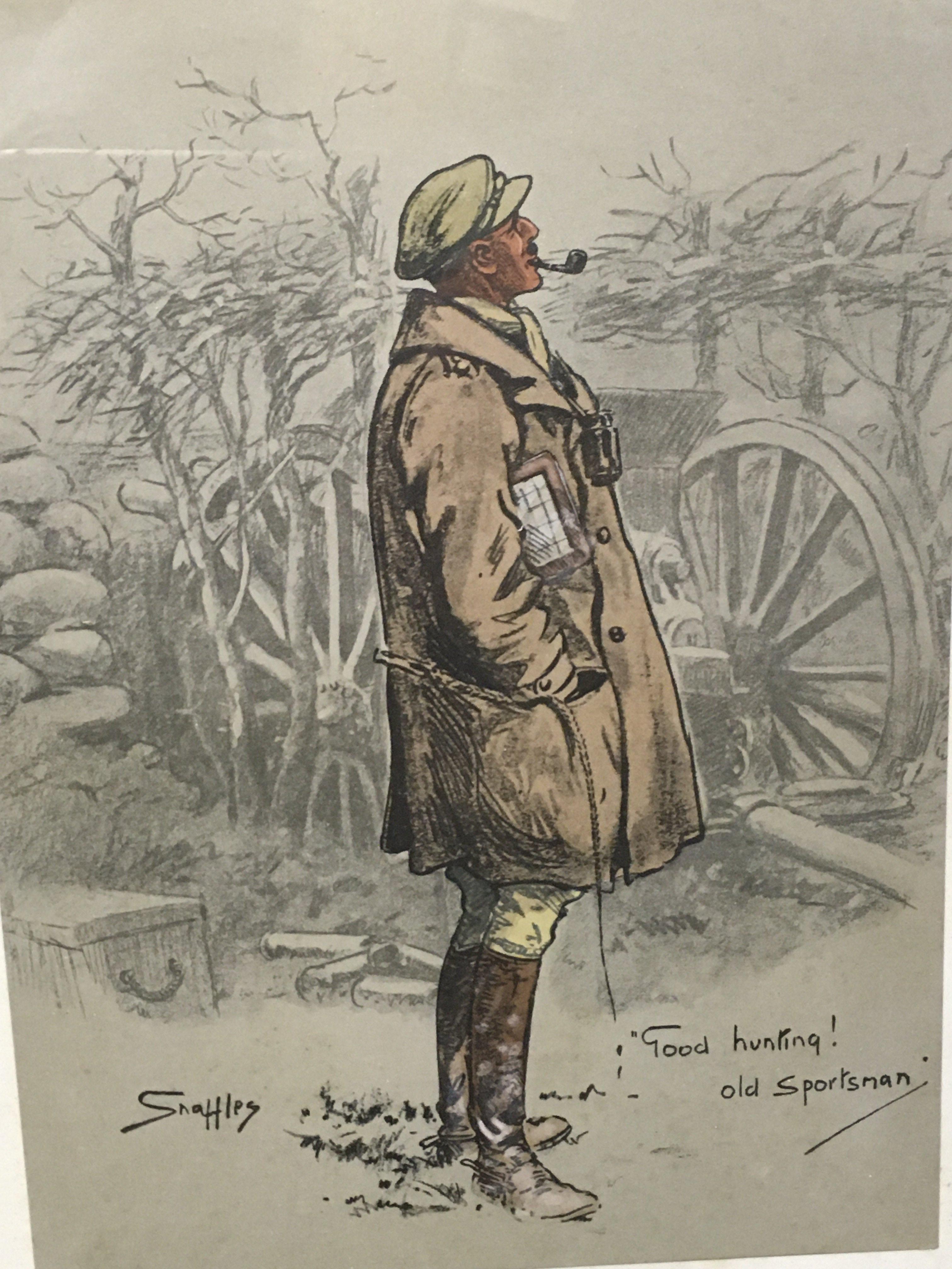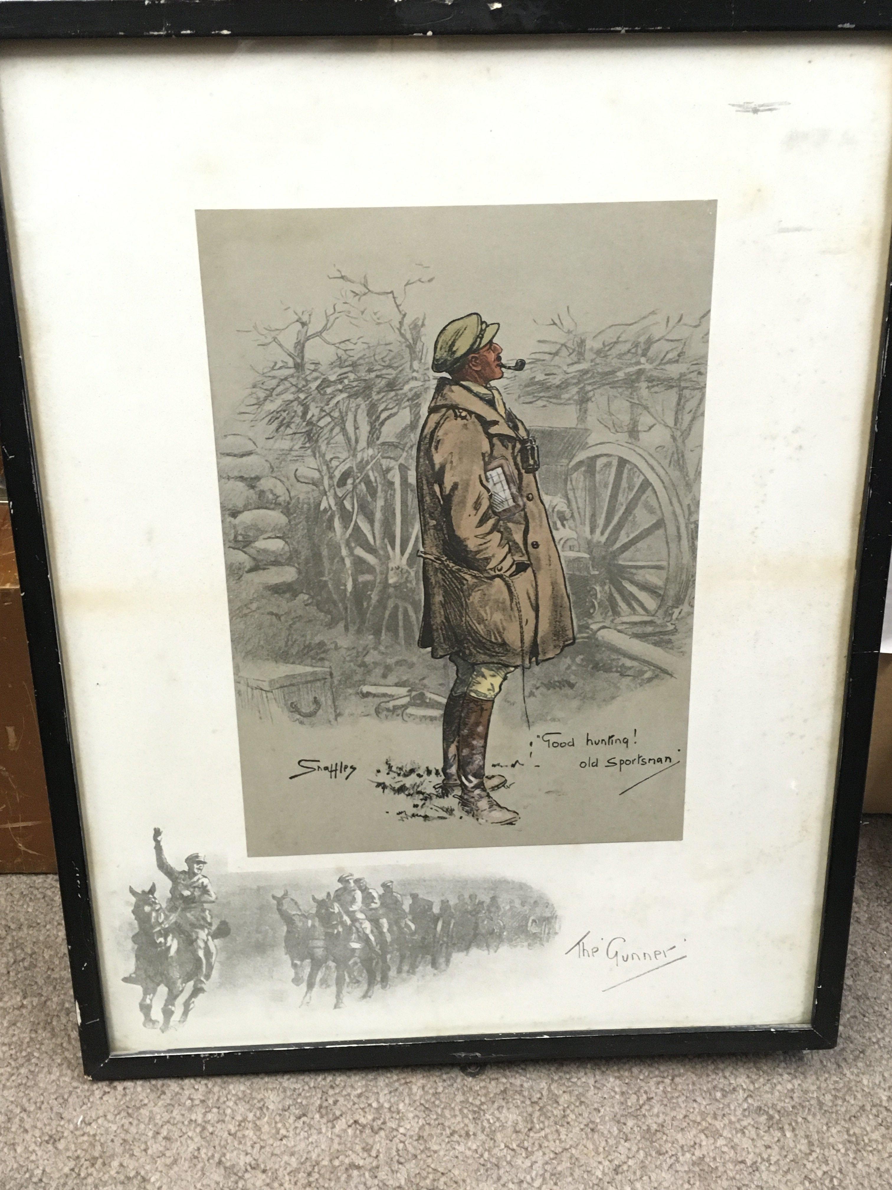 A rare Charles Johnson Payne aka Snaffles (1884-1967) photolithograph entitled The Gunner. Hand coloured. Dimensions 47x36cm