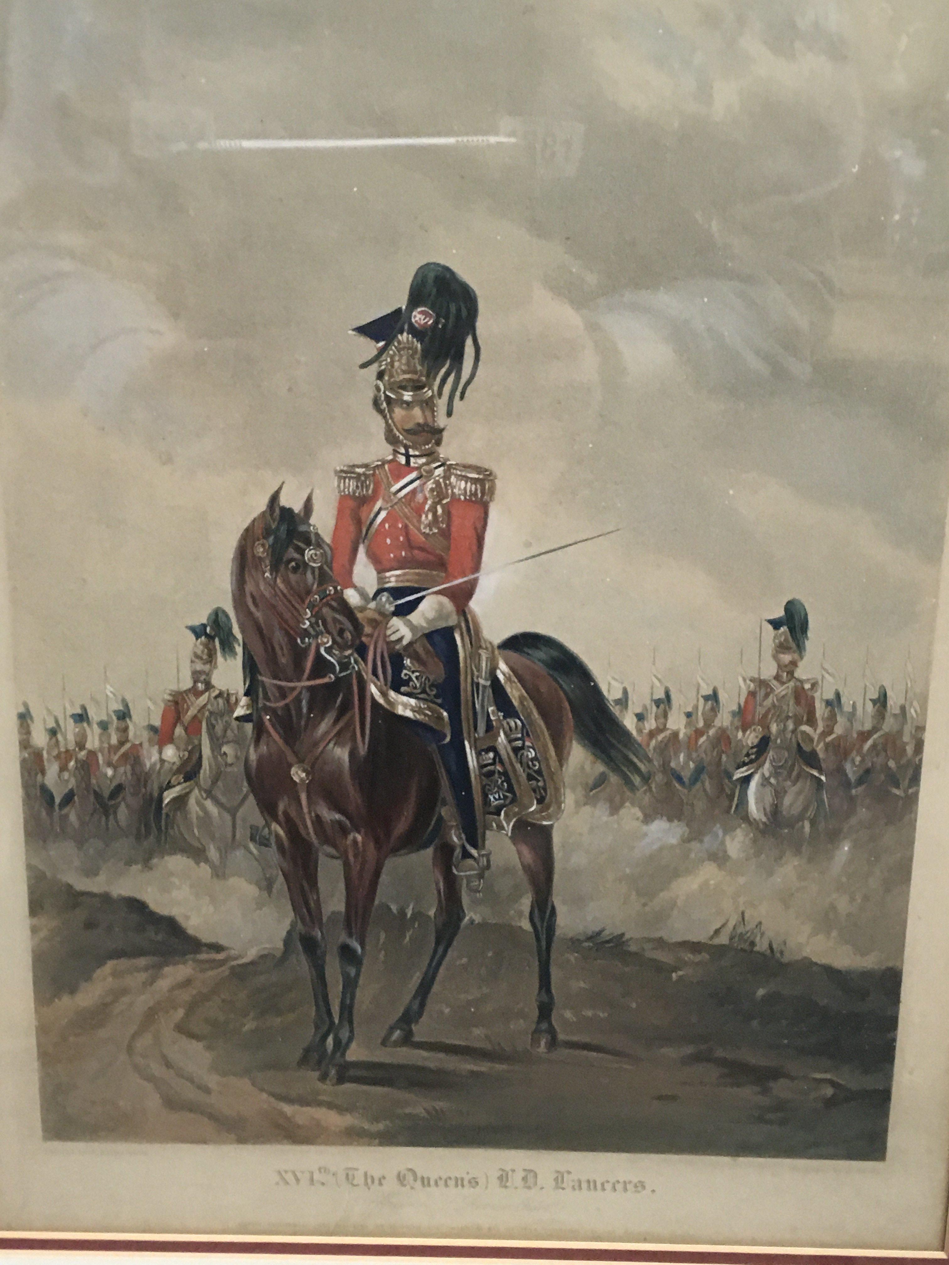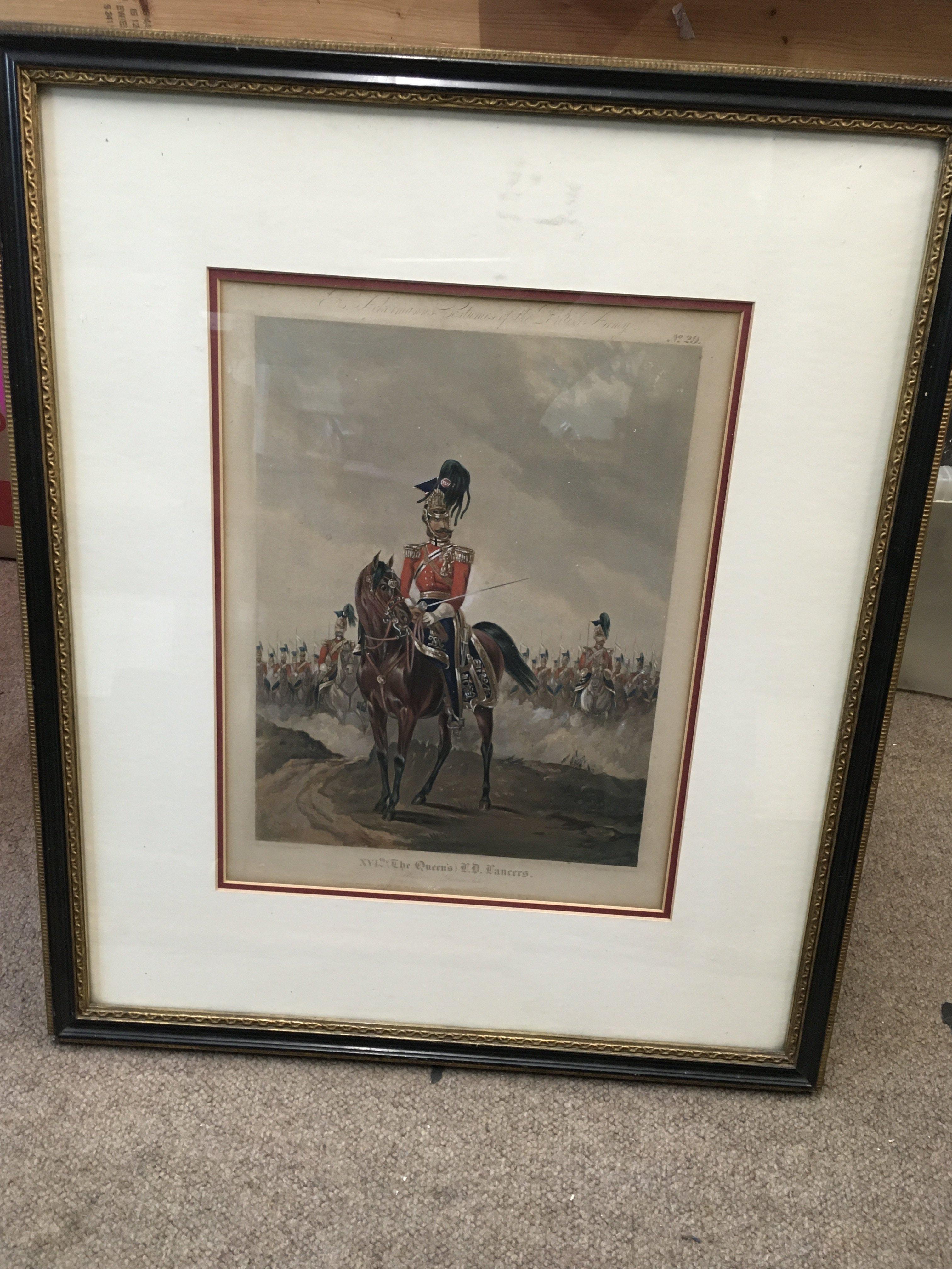 A framed coloured engraving of the 16th Queens lancers. Dimensions 48x57cm . This lot cannot be posted