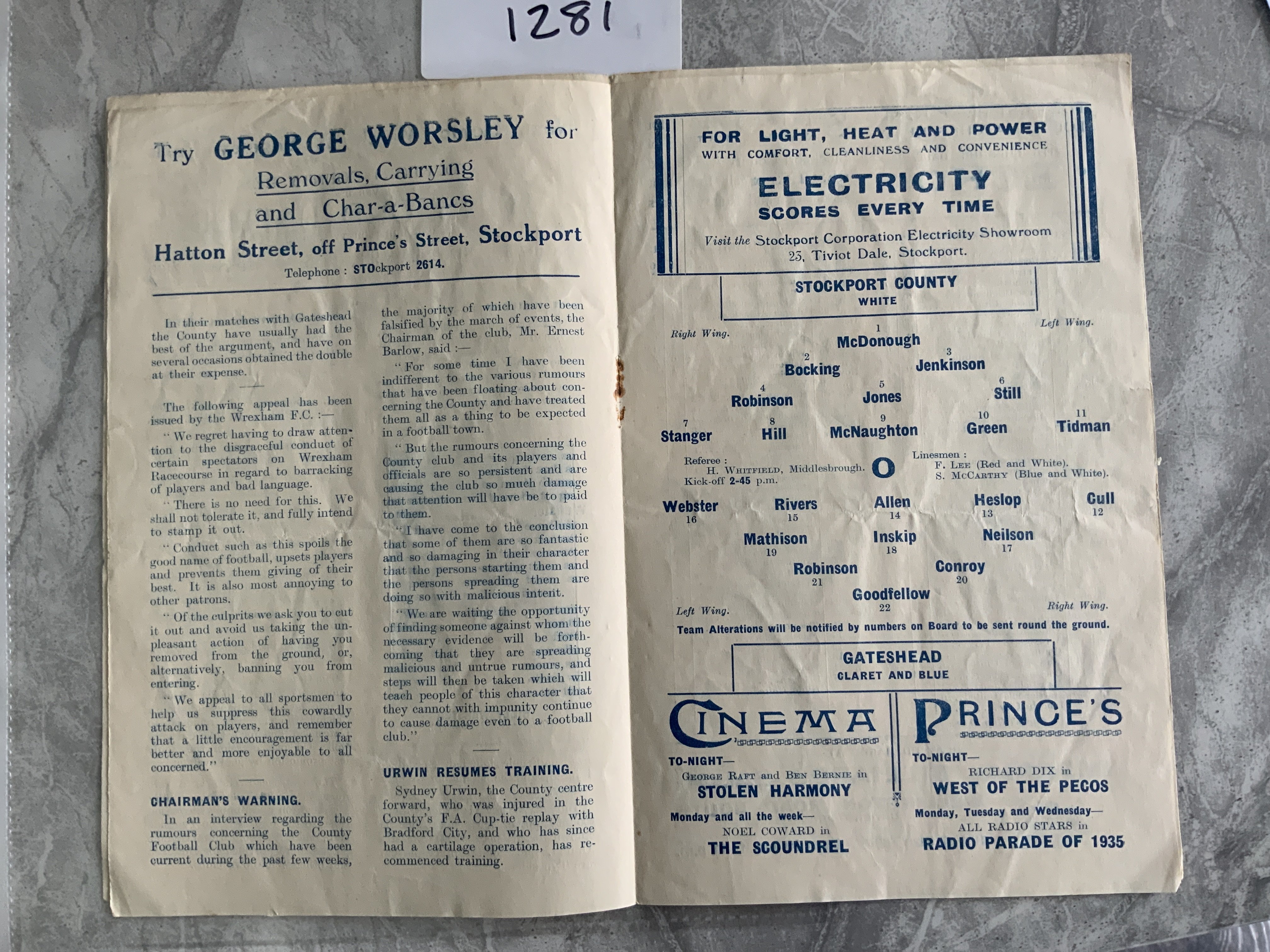 35/36 Stockport County v Gateshead Football Programme: 8:pager with staple removed. Division 3 North match with no writing.