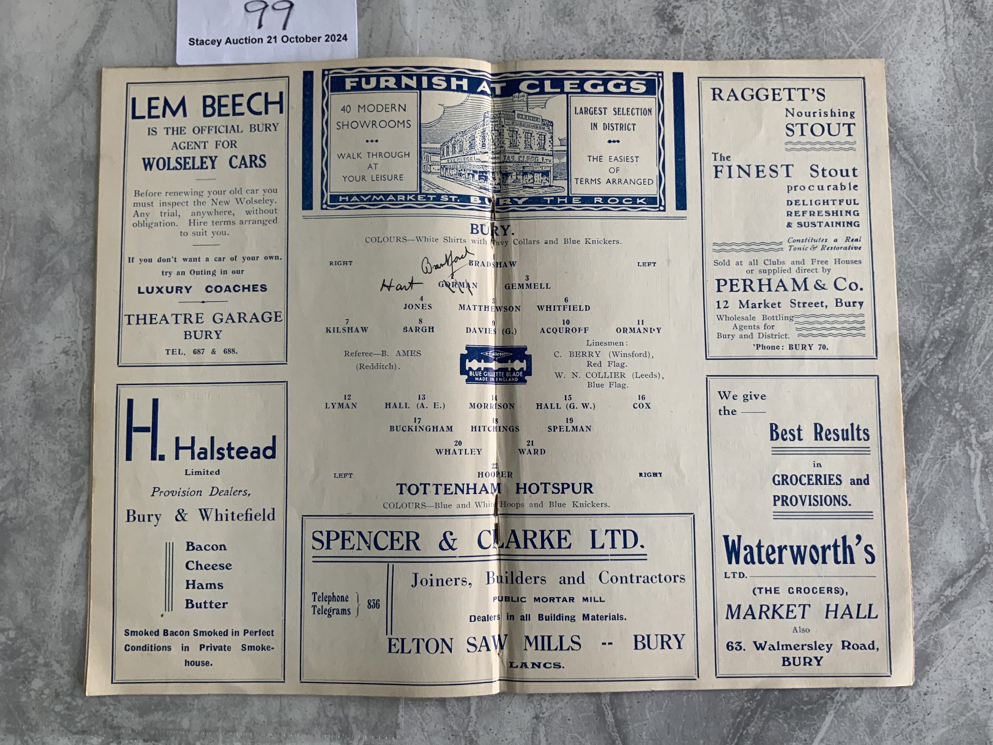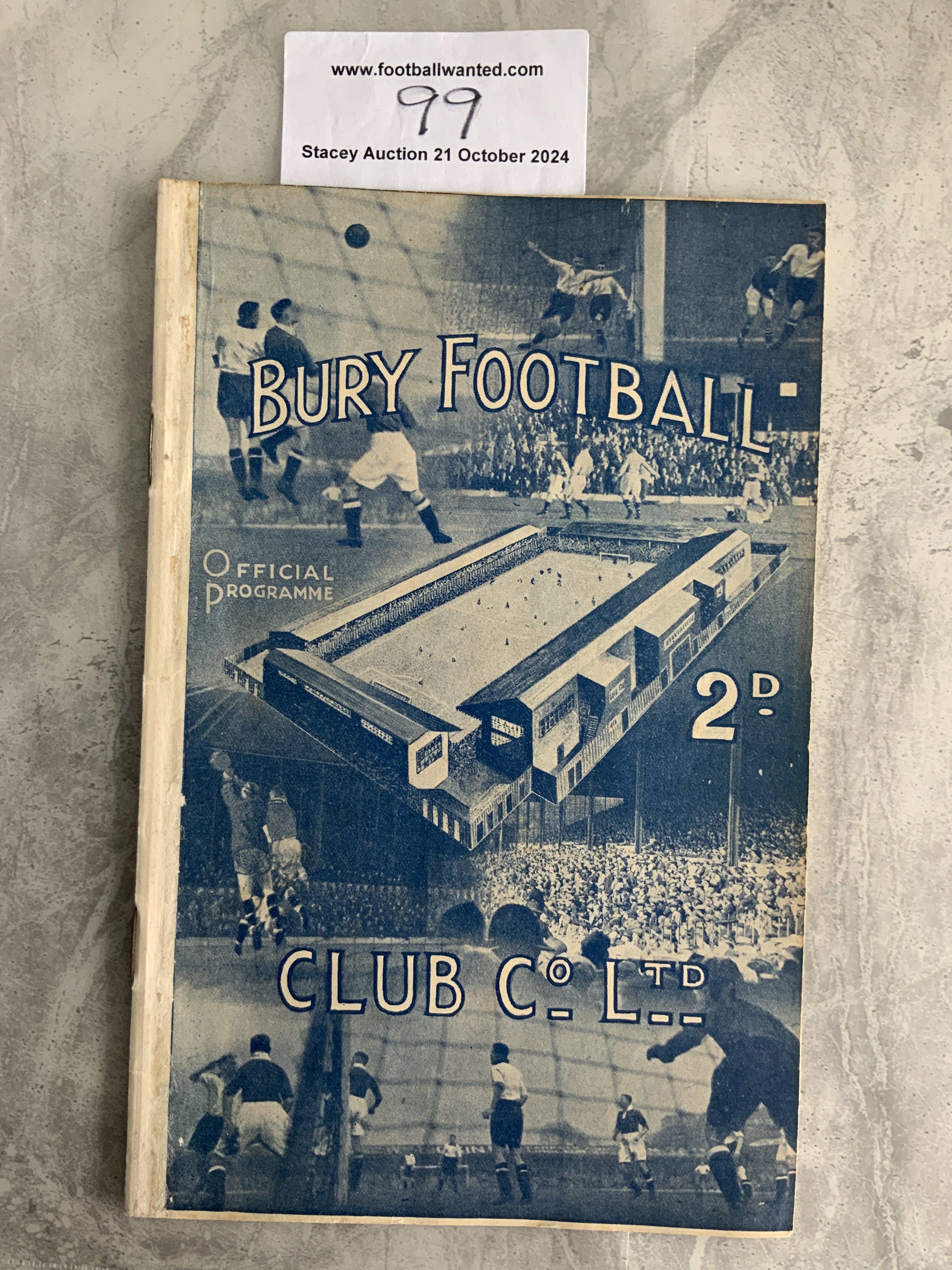 38/39 Bury v Tottenham Football Programme: Very good condition possible ex bound with covers. League match with team changes.