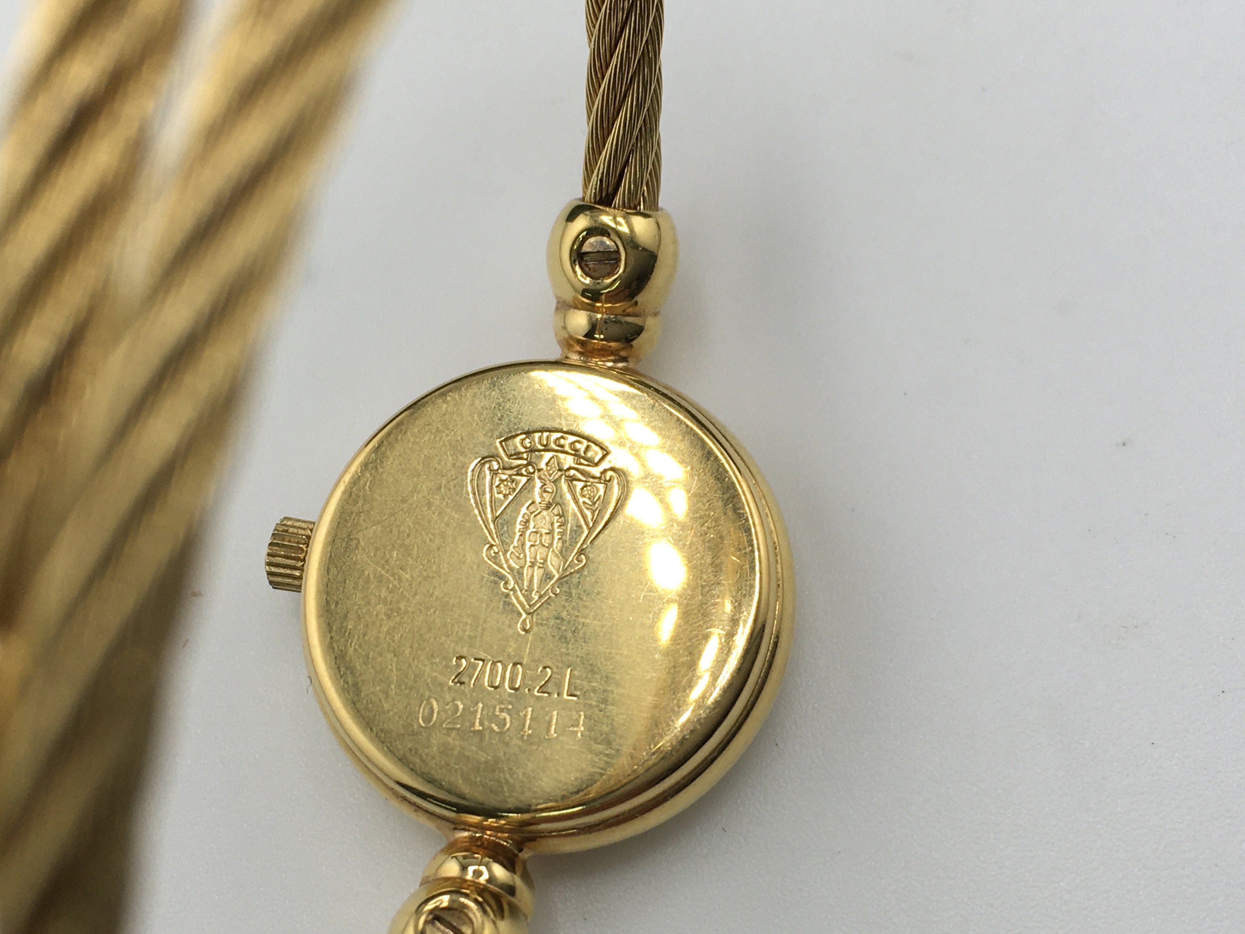 A Ladies Gucci watch model number 2700.2.L with box and papers. In ver good condition. Postage B