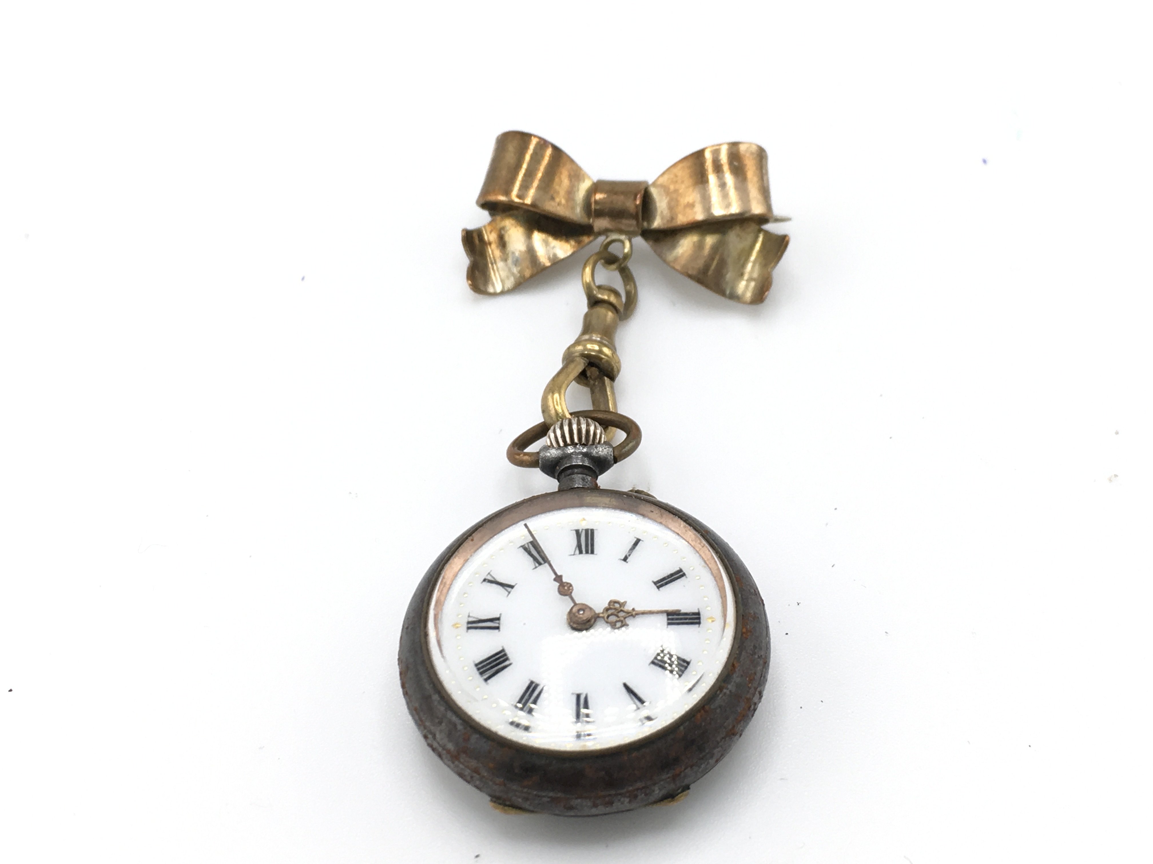 A vintage fob watch with enamel face not seen running. Approximately 26mm case. Postage B