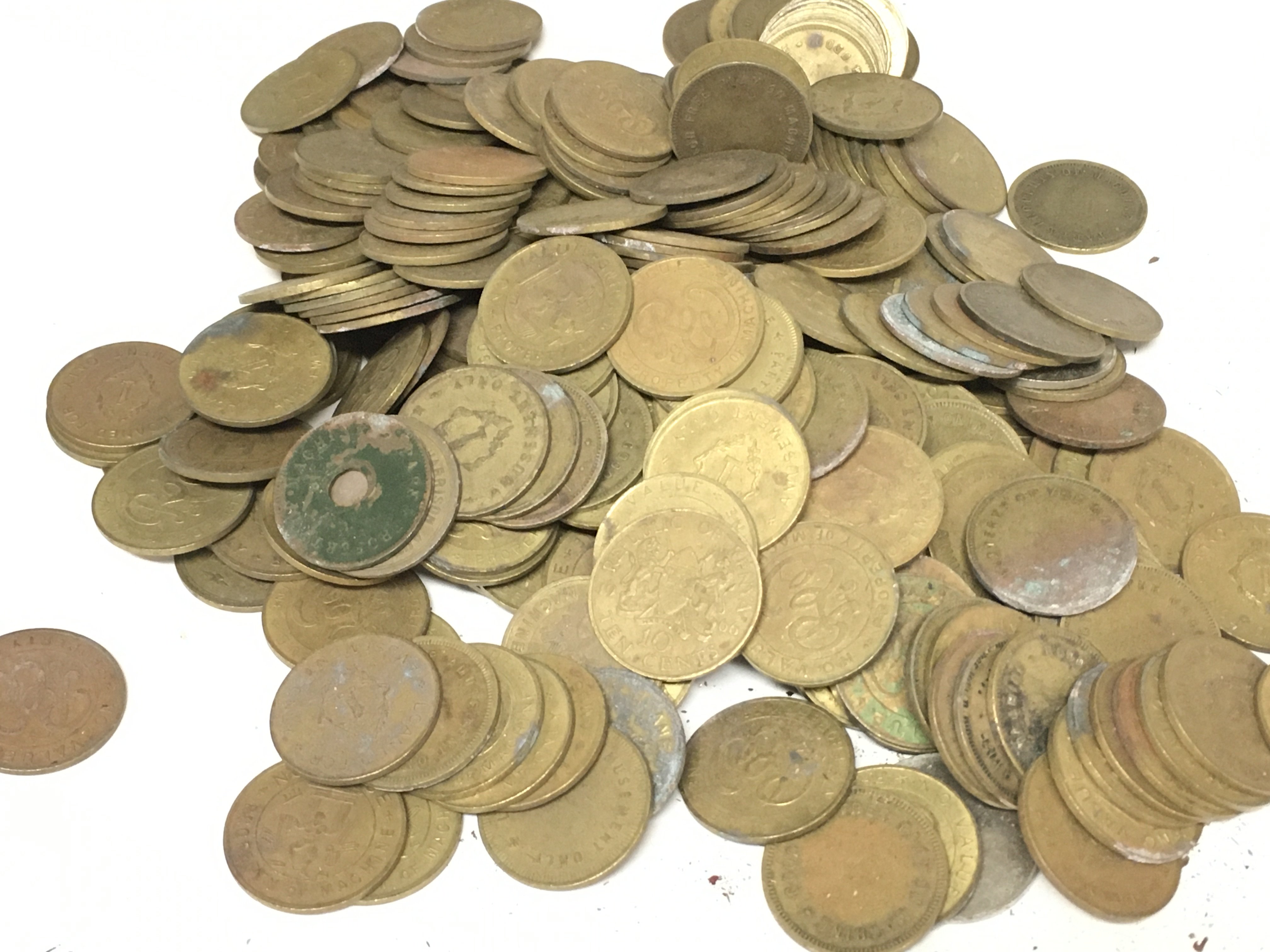 A Collection of various vintage amusement tokens. Postage category B