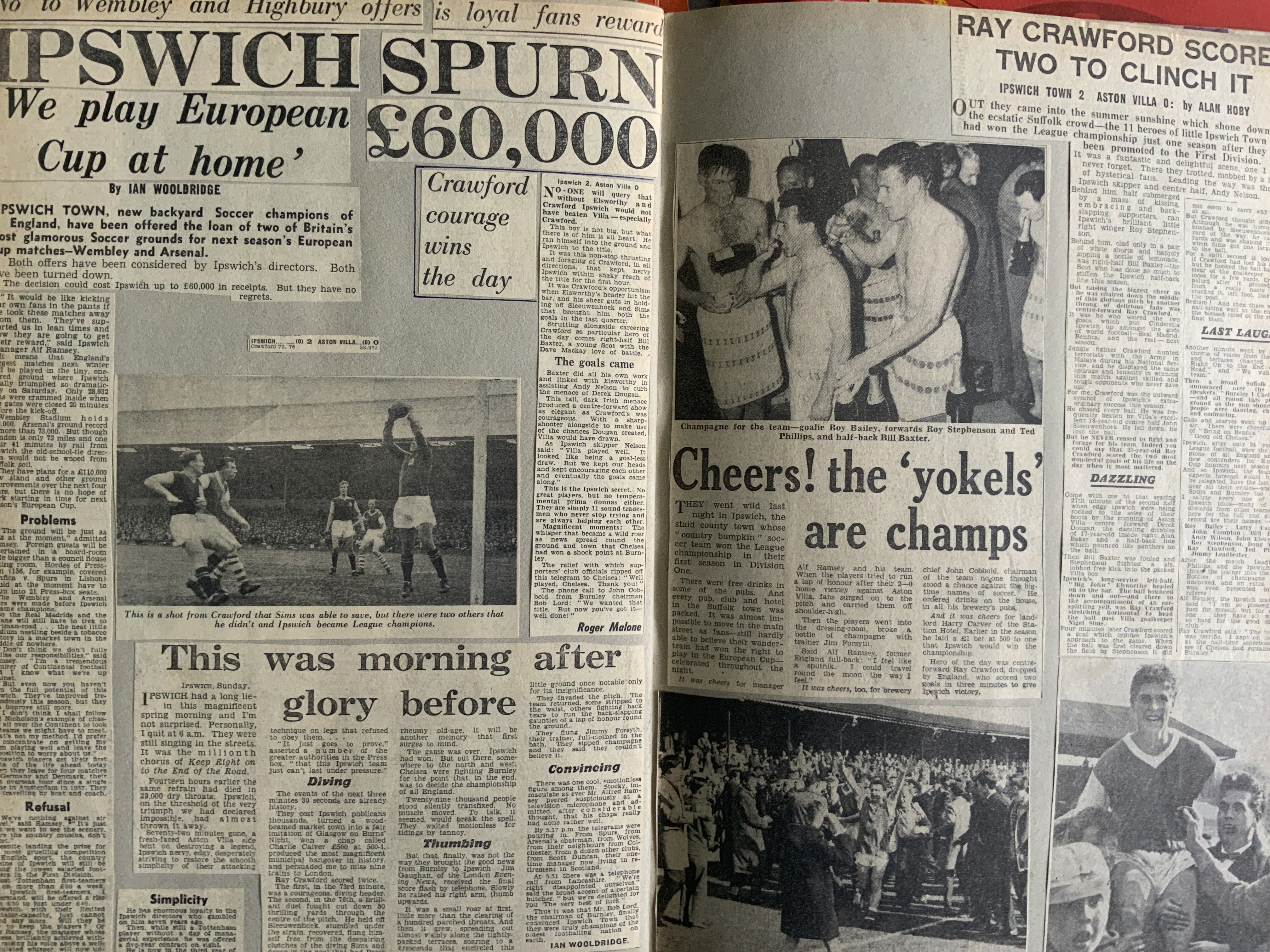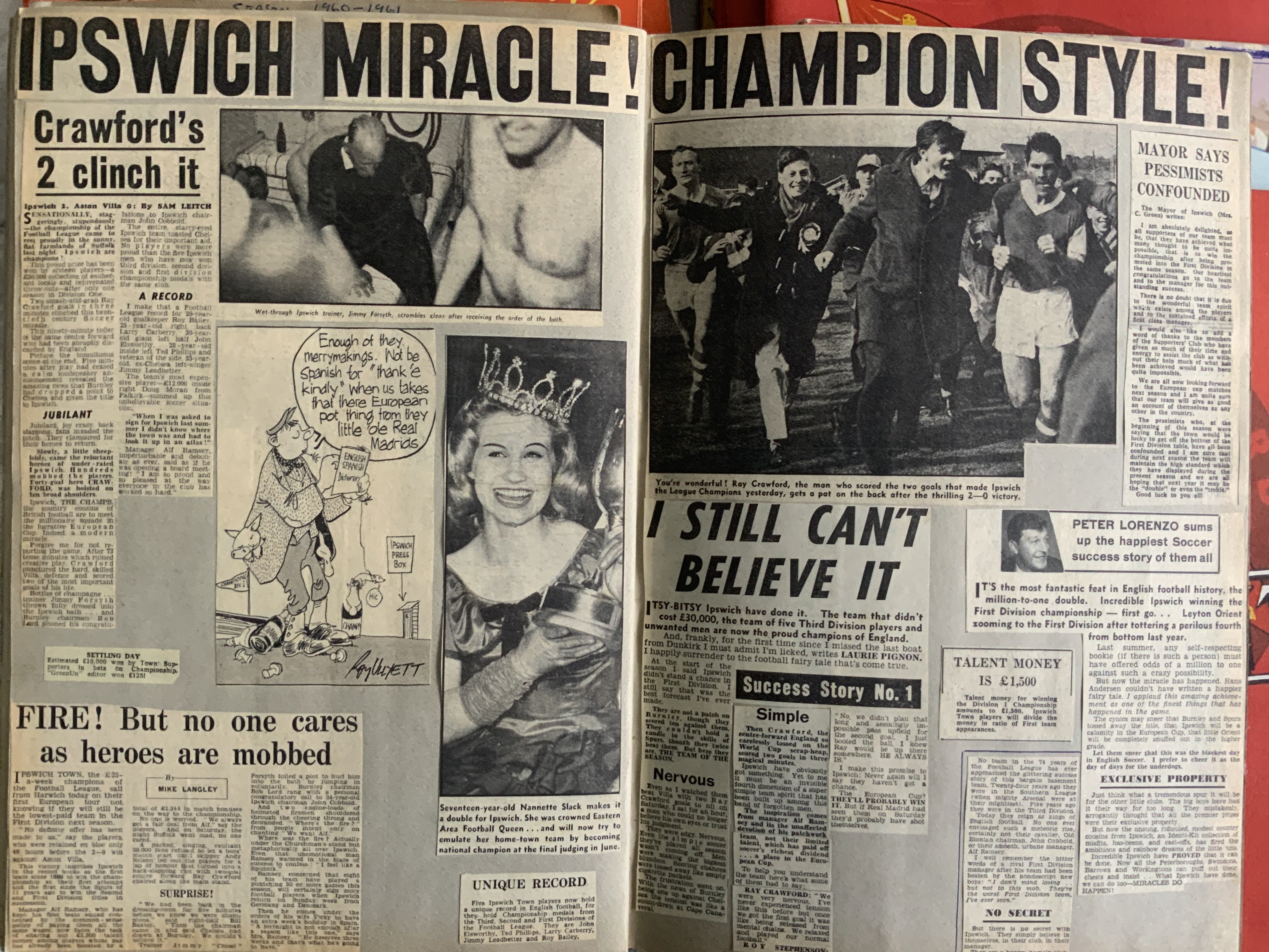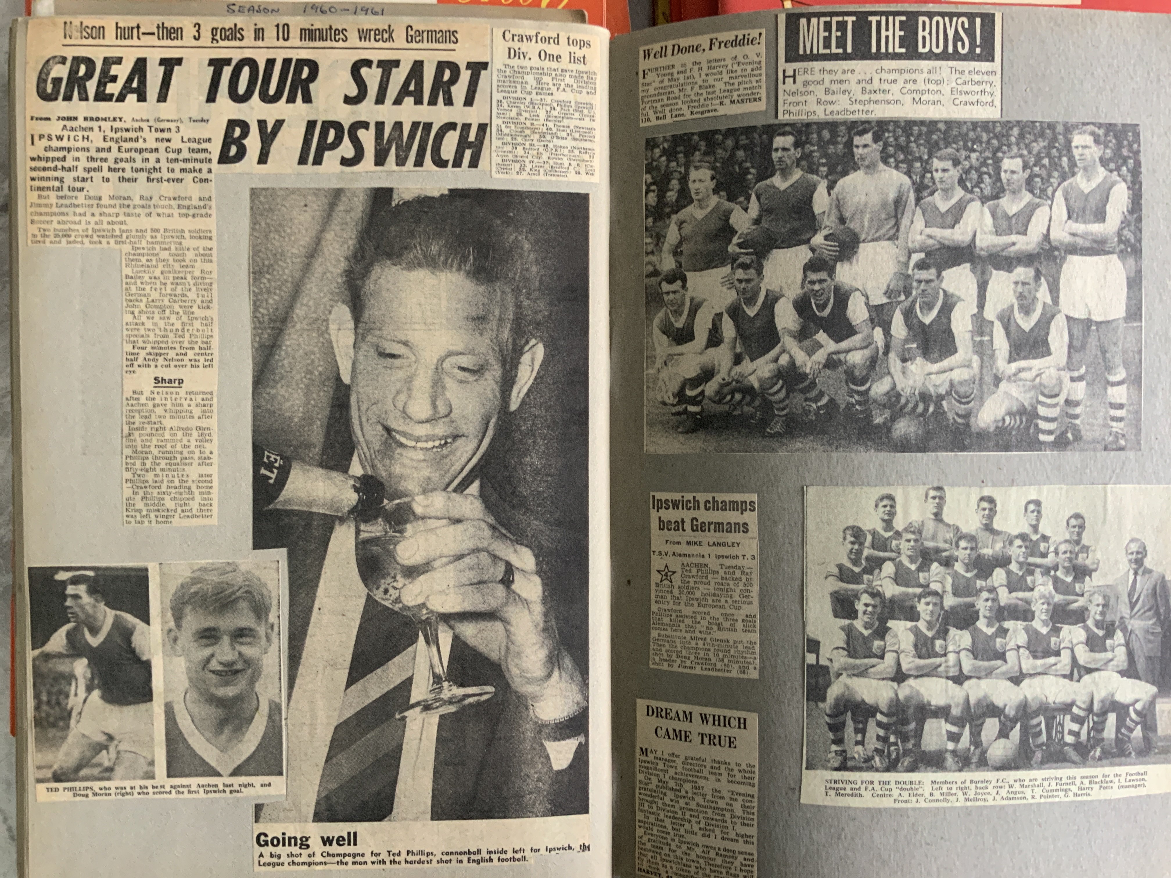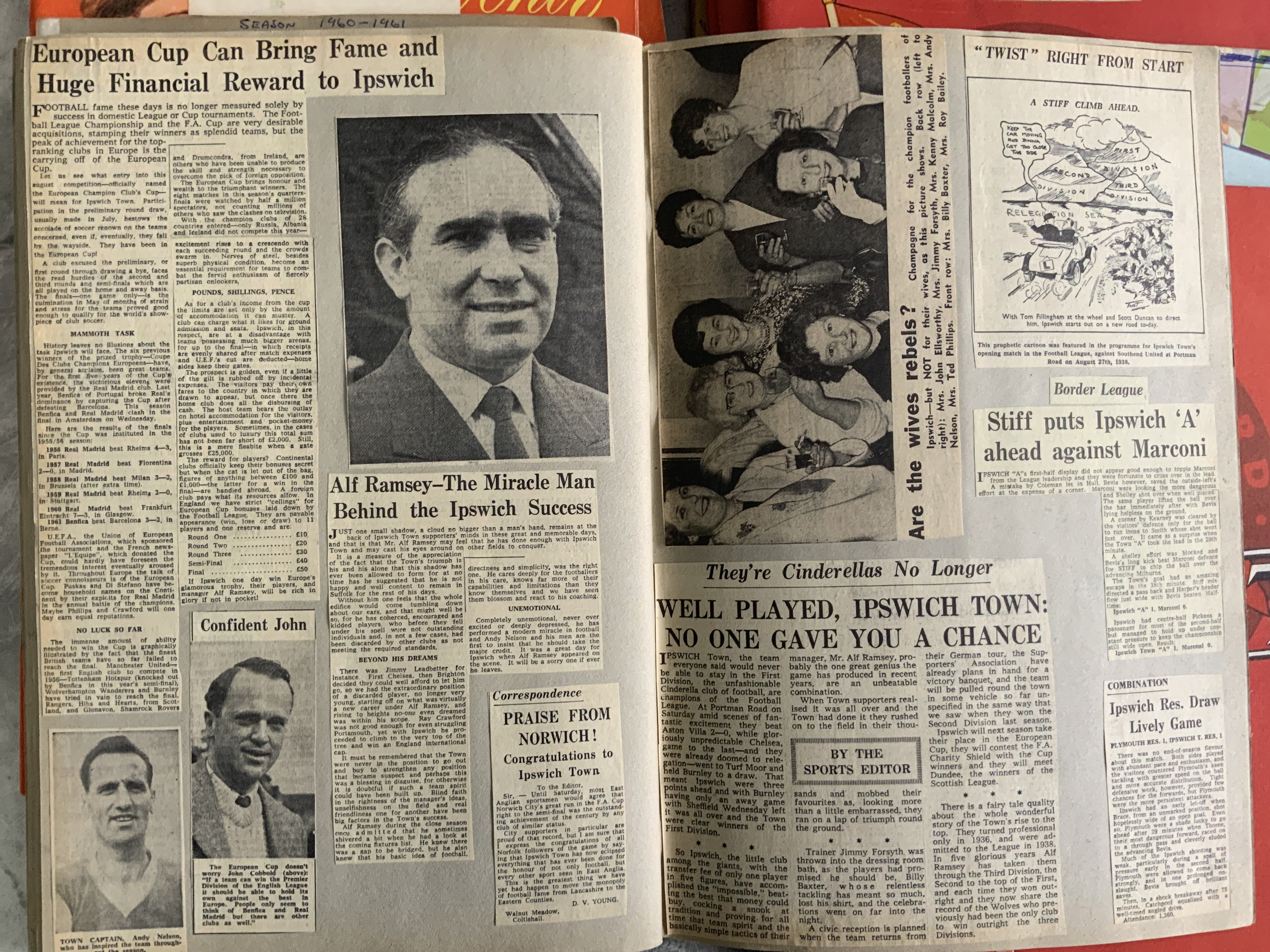 Ipswich Town Football Scrapbooks: Comprehensive large scrapbooks from 59/60 to 62/63. The best period in their history was the 1st division championship season of 61/62 and this is covered by 7 scrapbooks.