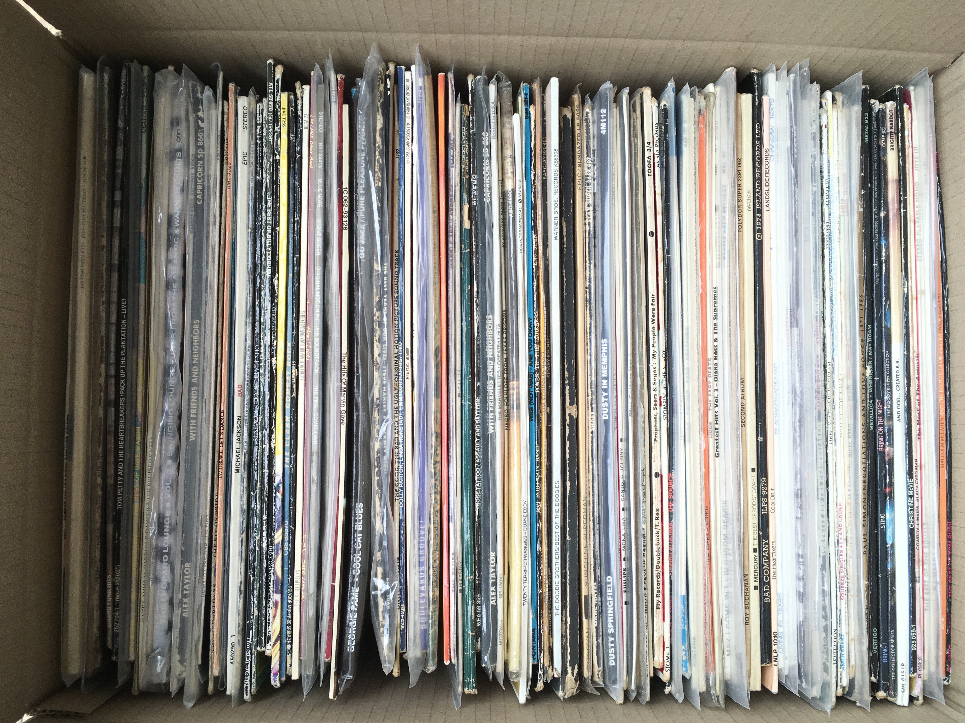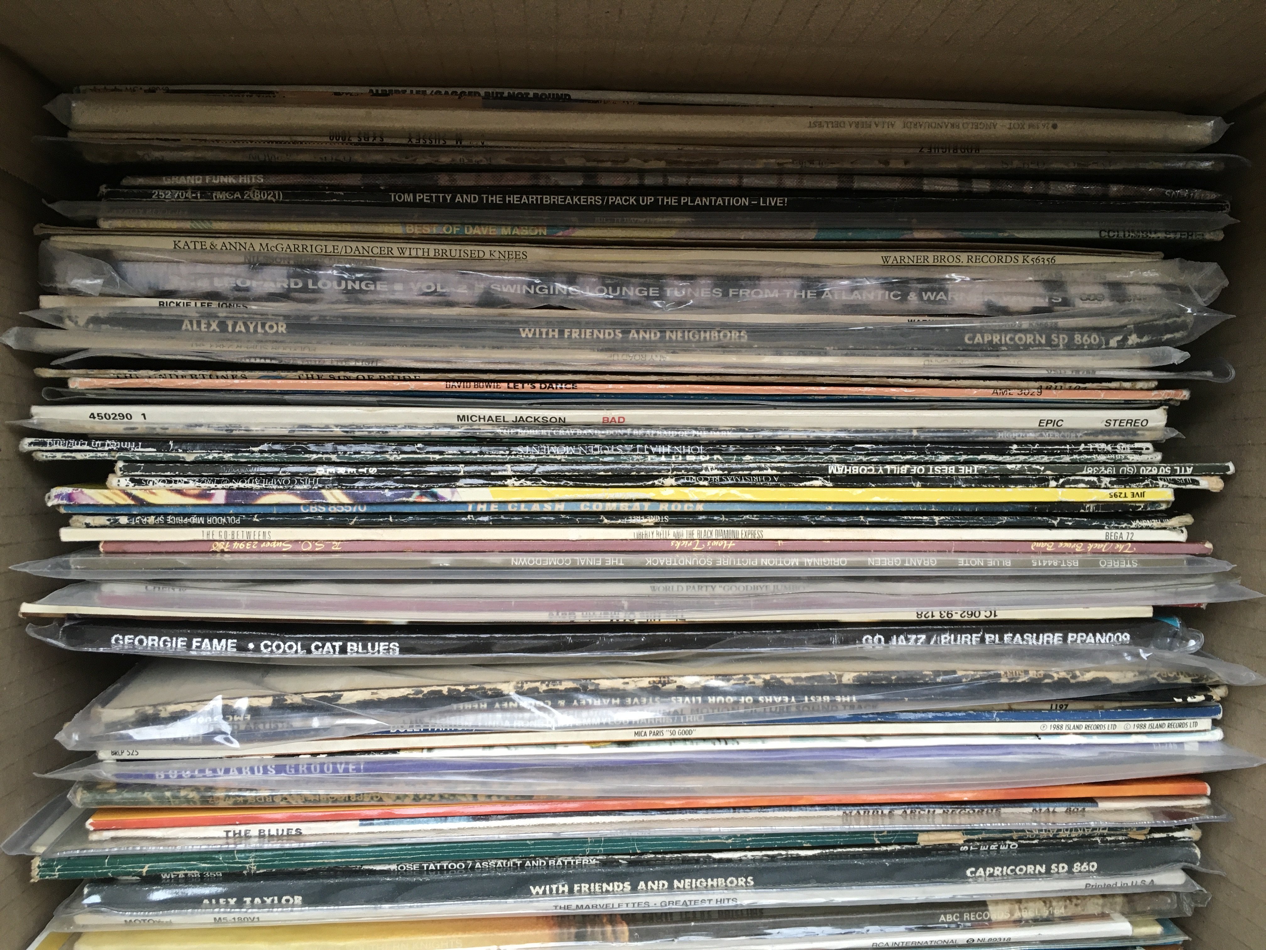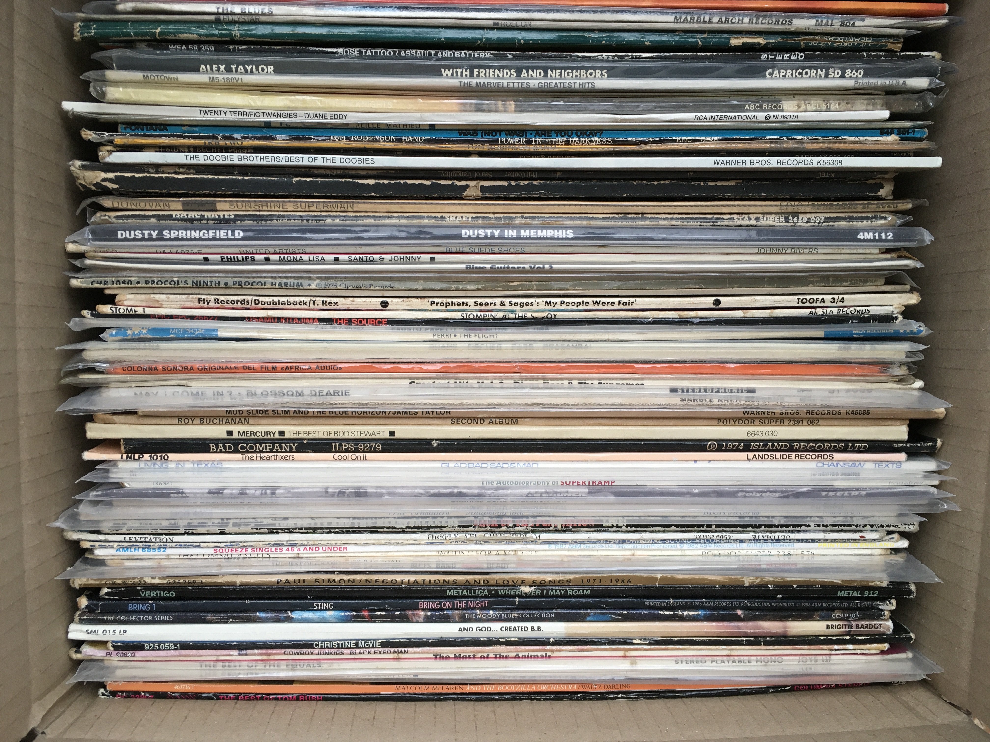 A box of LPs by various artists including Tom Petty, Albert Lee, BB King and many more.