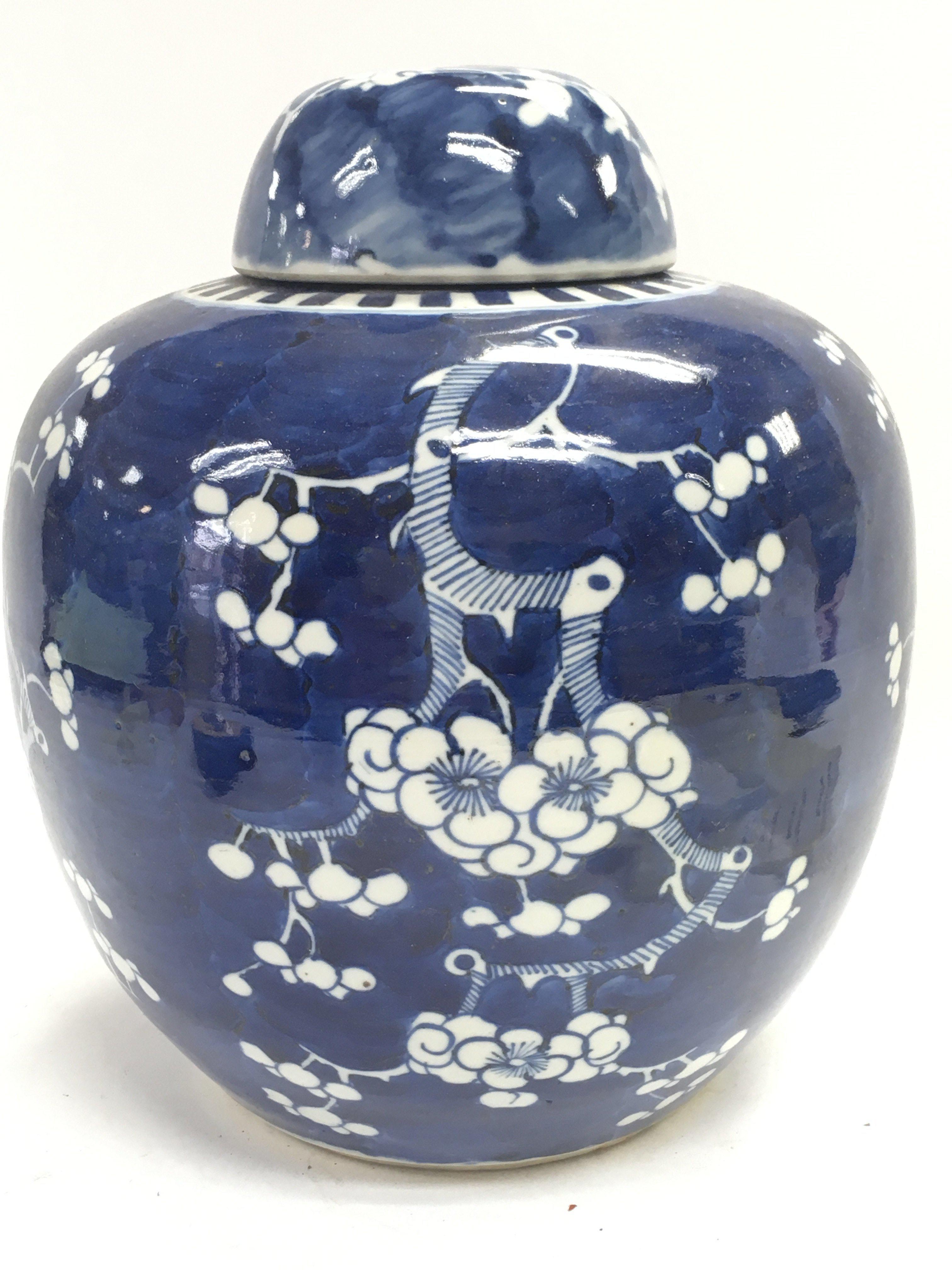 A late 19th Century Chinese blue and white ginger jar. 24cm tall. No obvious large damage or restoration This lot cannot be posted
