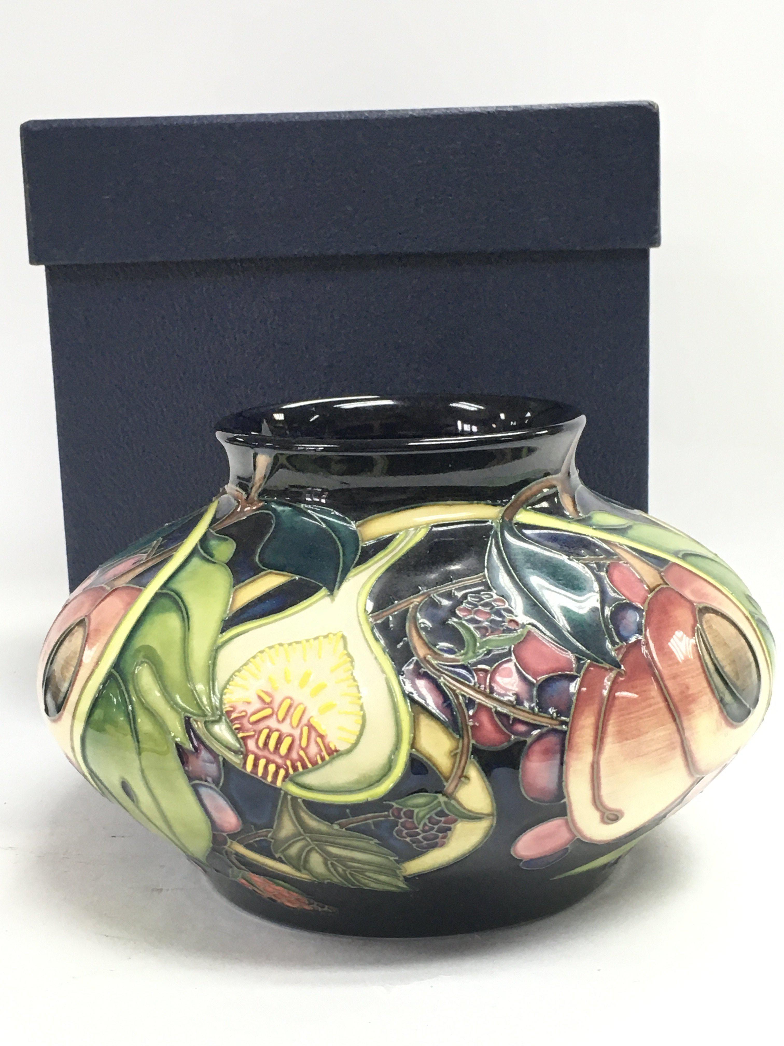 A Boxed Moorcroft Queens Choice vase , 11cm tall. No obvious damage or restoration. This lot cannot be posted