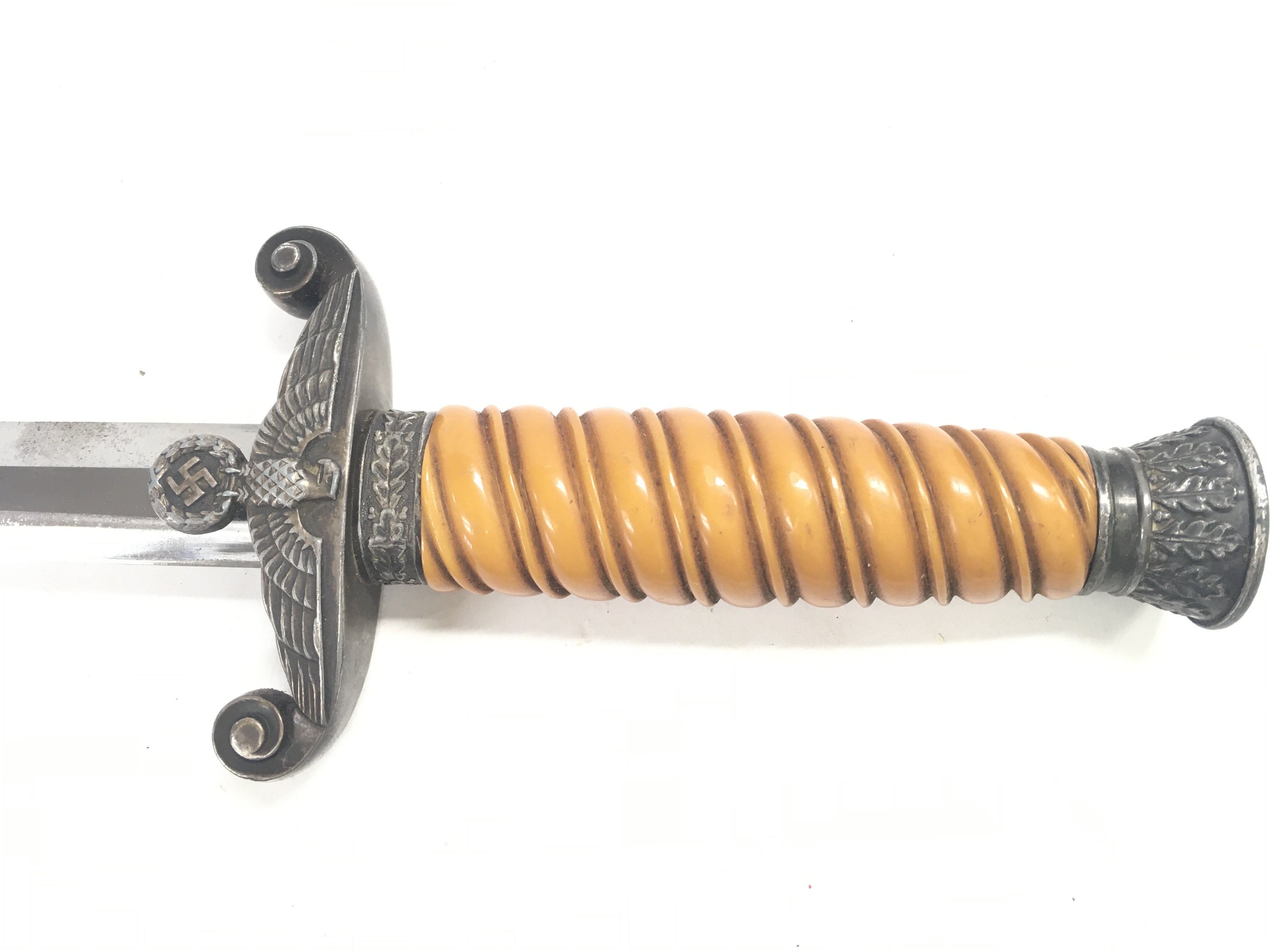 A Nazi German Officers dagger with Eickhorn Solingen makers mark. 37cm total length, blade 26cm long. This lot cannot be posted