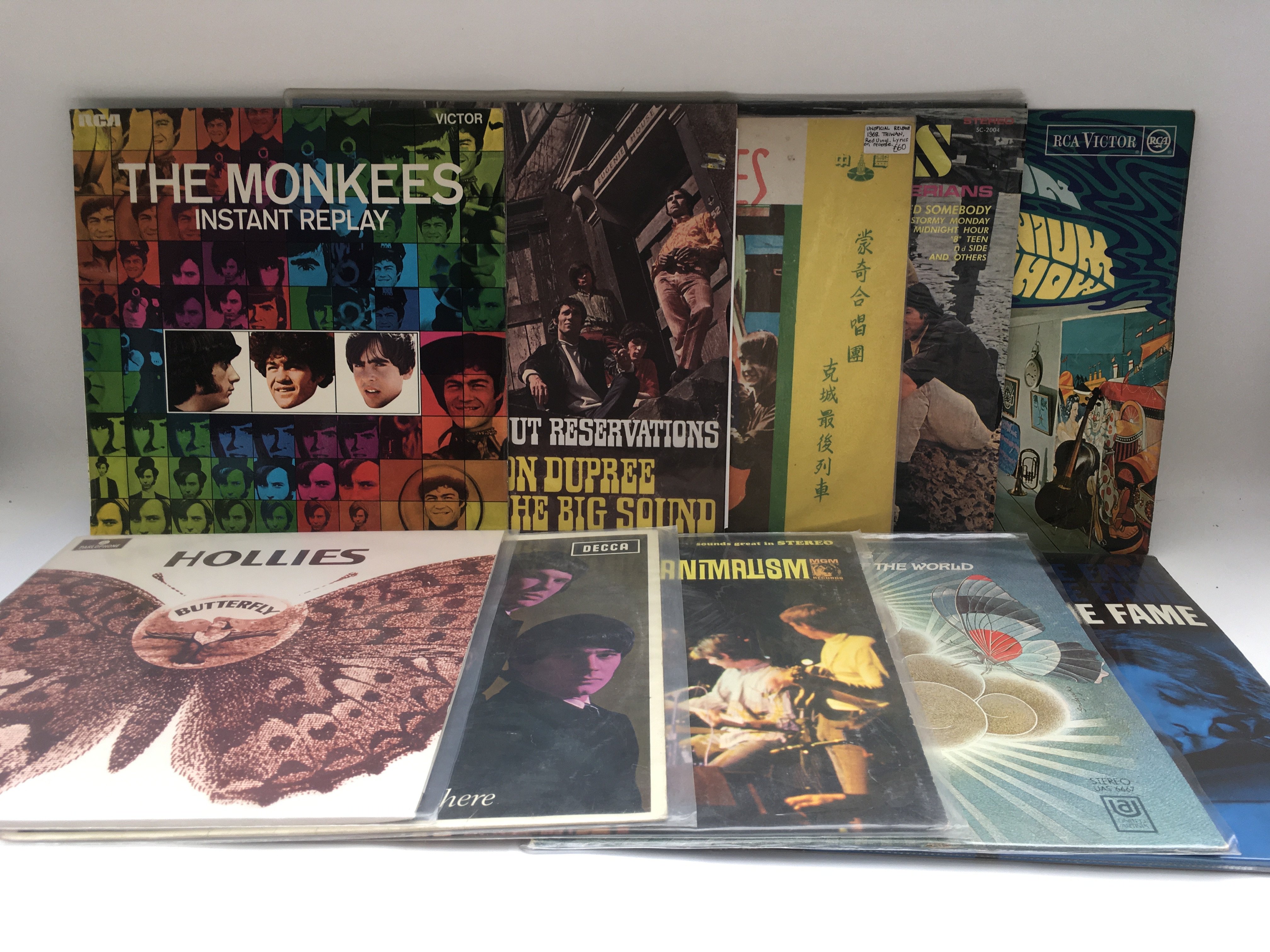 Two bags containing 21 1960s rock and pop LPs by various artists including The Zombies, The Hollies, The Monkees and others. Includes original and 180g pressings.
