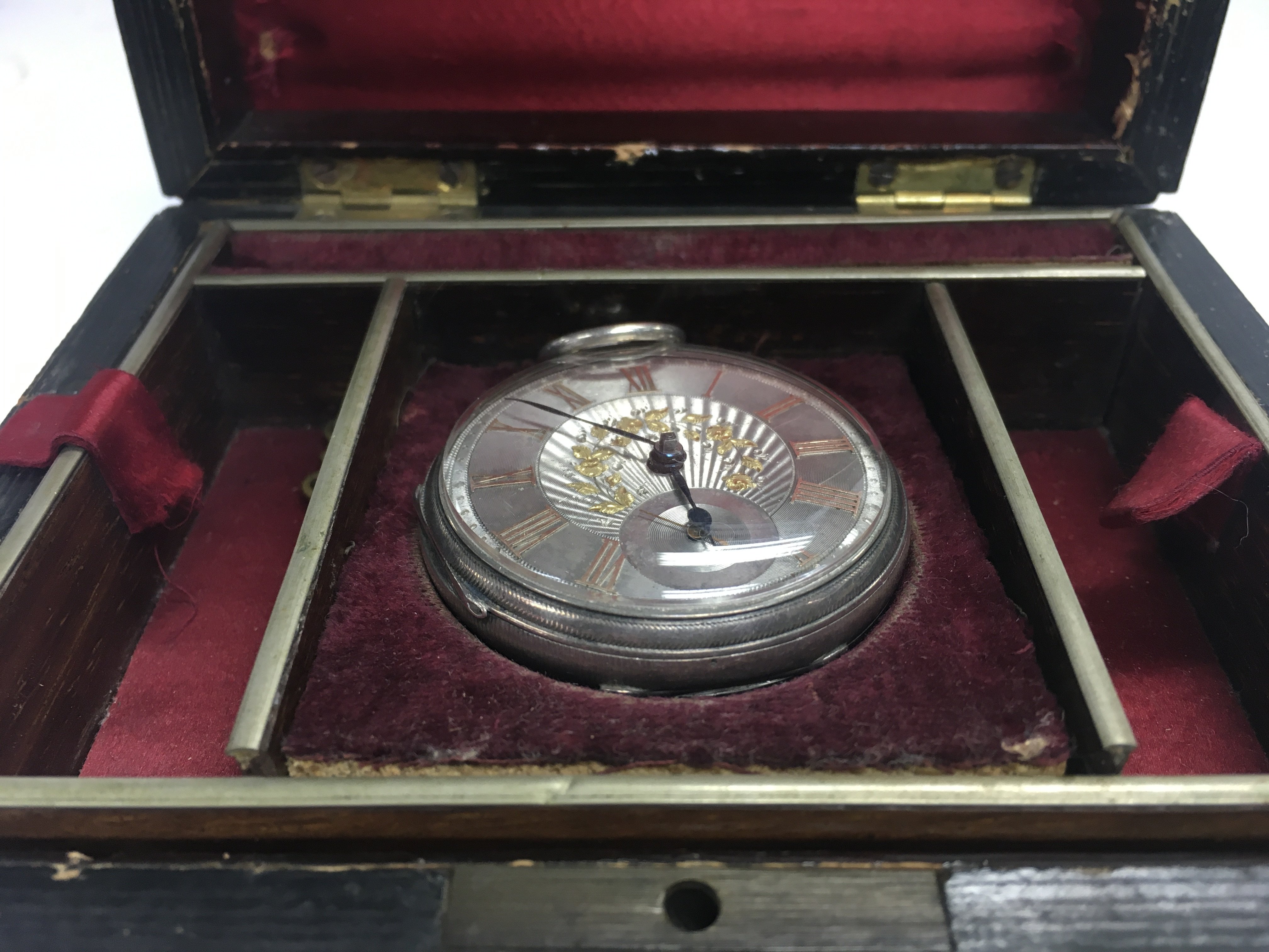 A silver hallmarked pocket watch in a presentation case. Postage category B