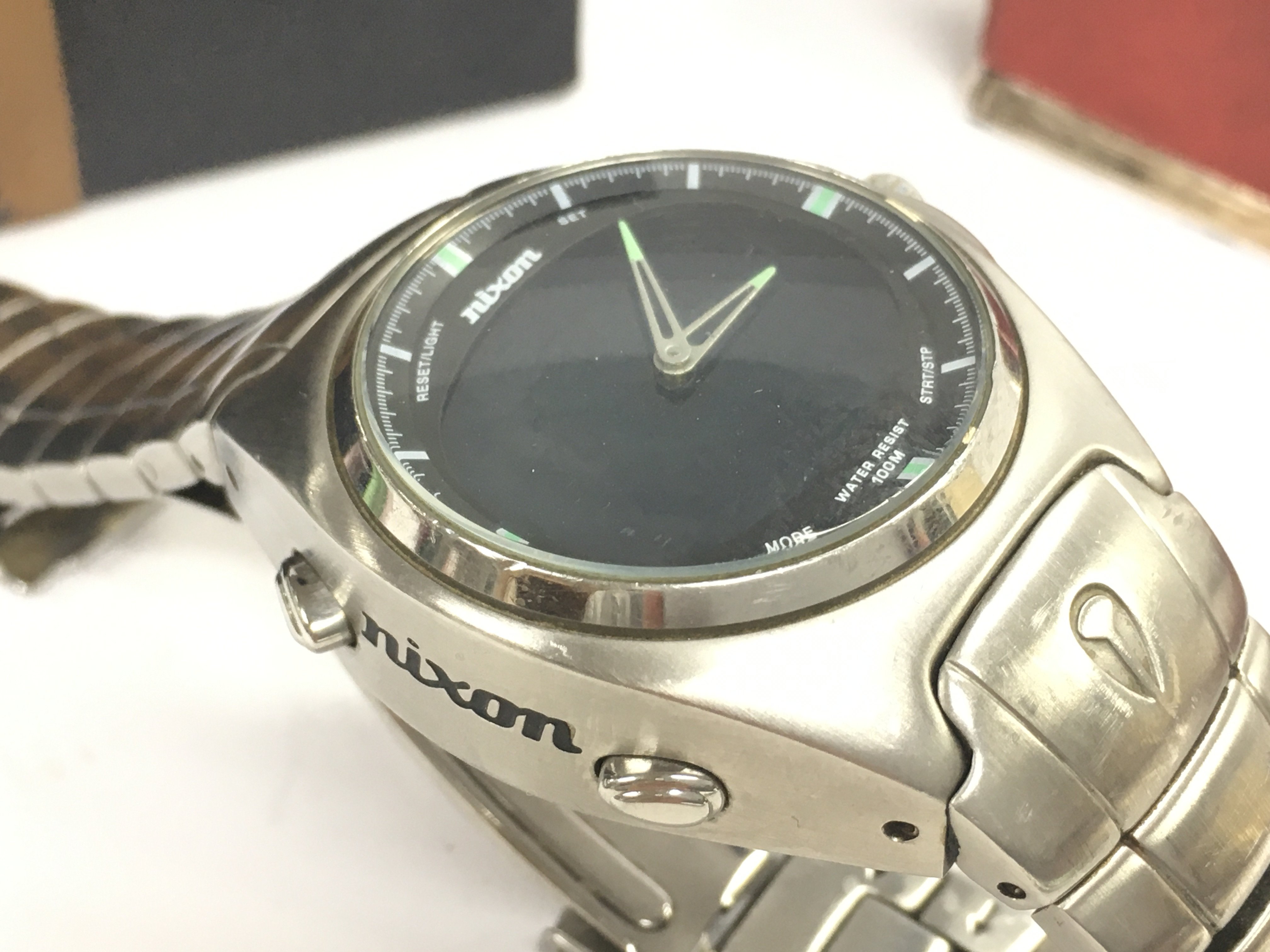 Two gents watches including a boxed Rodania watch and a Nixon watch. Postage category B