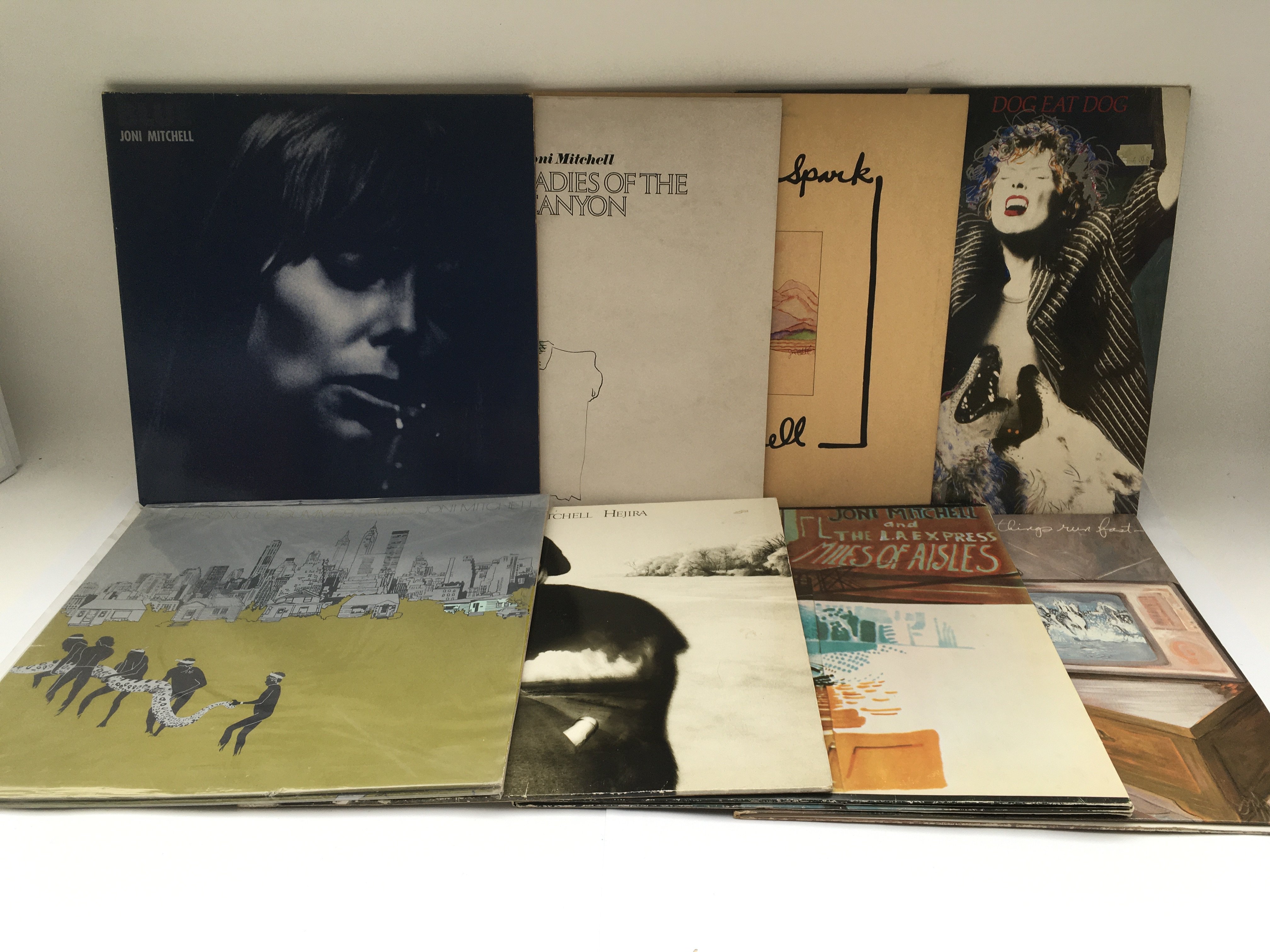 Eight Joni Mitchell LPs comprising 'Ladies Of The Canyon', 'Blue' and others.